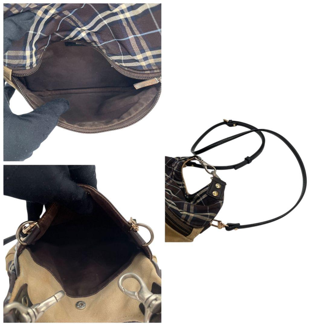 バーバリーブラックレーベル BURBERRY BLACK LABEL ショルダーバッグ 斜め掛け可 ベージュ ブラウン ブラック キャンバス レザー 本革 ロゴプレート メンズ