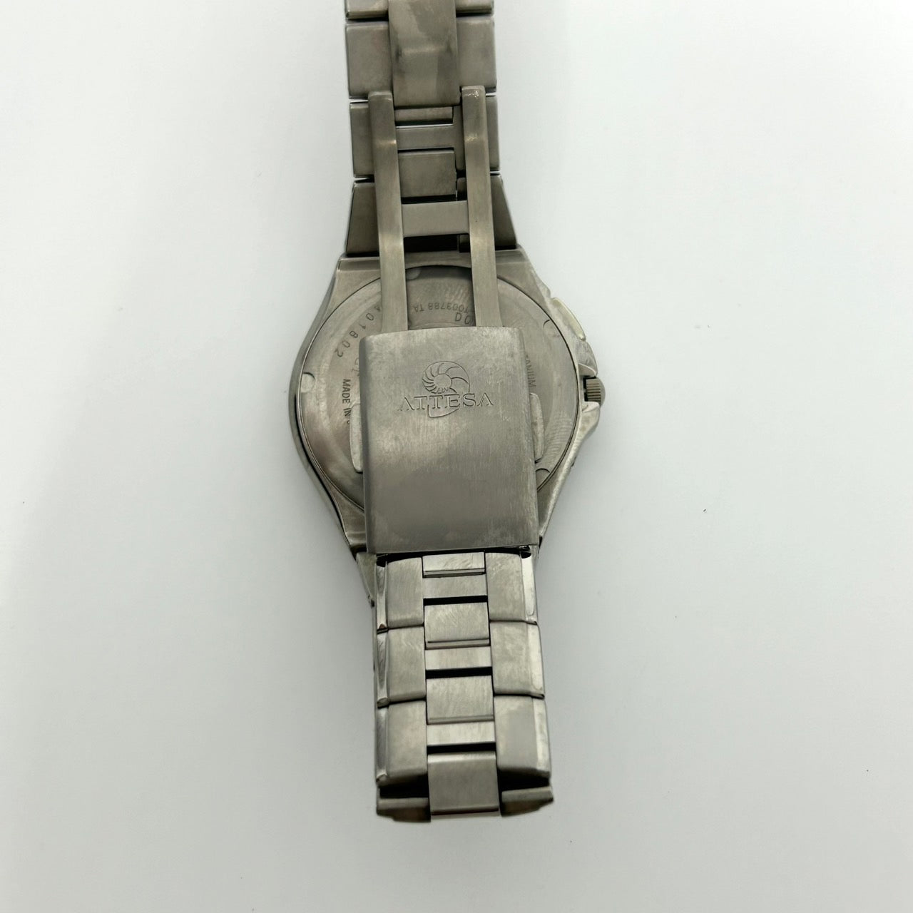 AB 風防:良 文字盤:良 針:良 リューズ:良 ケース:小傷 裏盤:小傷 ブレス:小傷 ベルト:小傷 全体的に小傷がございますが、ご使用には問題ない状態です。 |