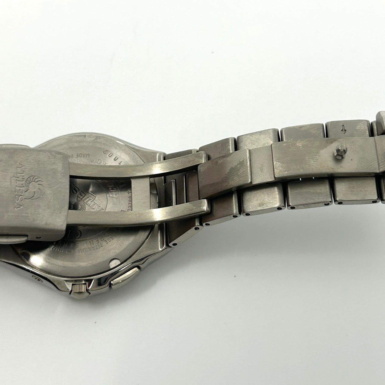 【稼働品】CITIZEN ATTESA シチズン アテッサ メンズ腕時計 エコドライブ H410 電波ソーラー チタン ブラック文字盤 デイト アナログ ビジネスウォッチ スタイリッシュ クラシックデザイン DURATECT クリーニング済み G6