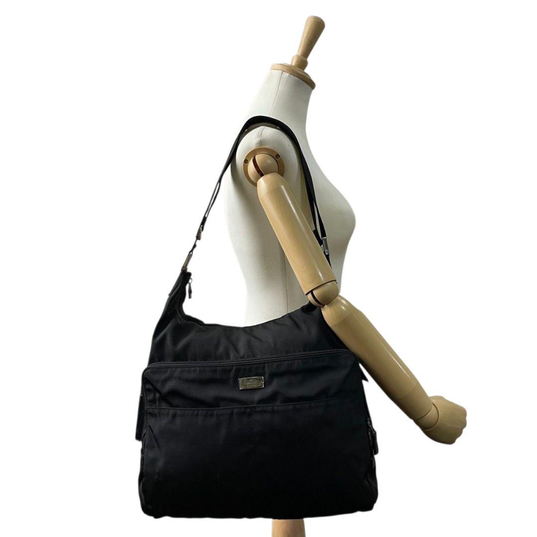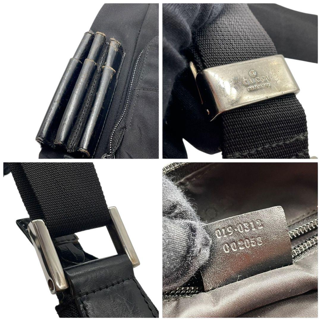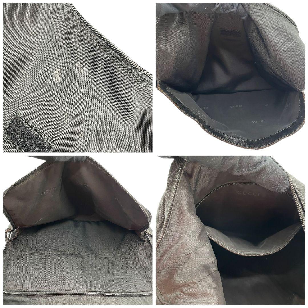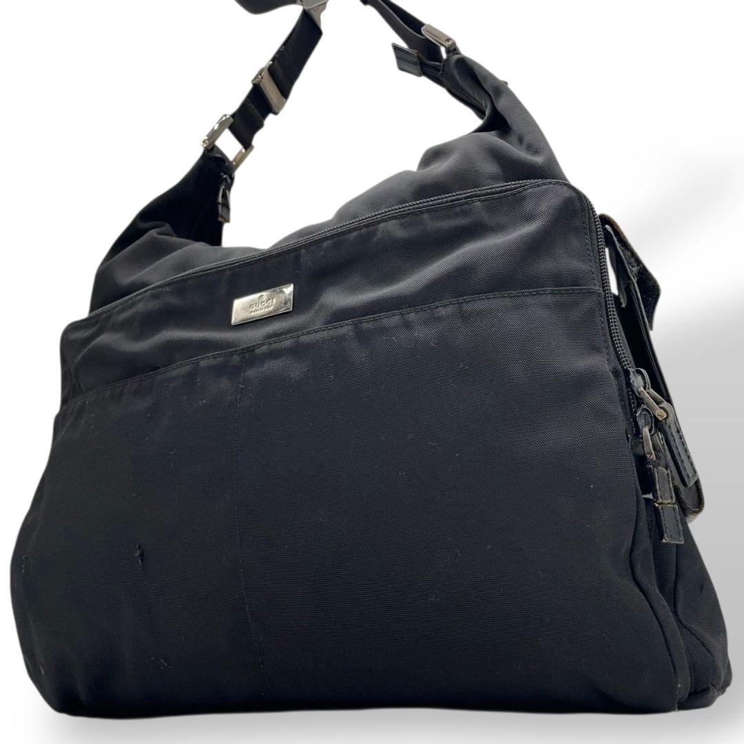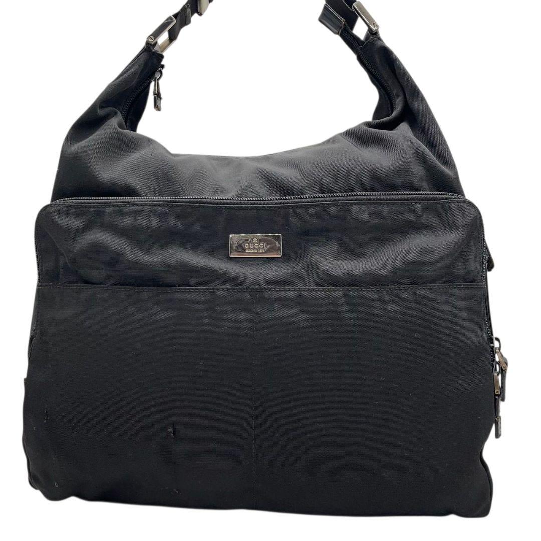GUCCI グッチ ショルダーバッグ ブラック 黒 ホーボー ロゴプレート A4収納 ワンショル トートバッグ ハンドバッグ ナイロン レザー シルバー金具 s57 上品 高級感