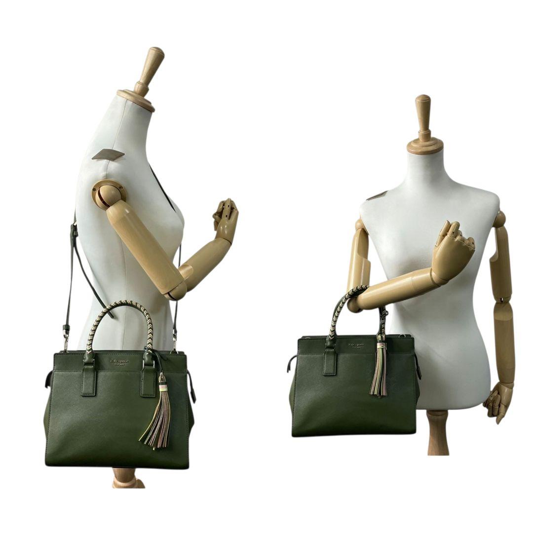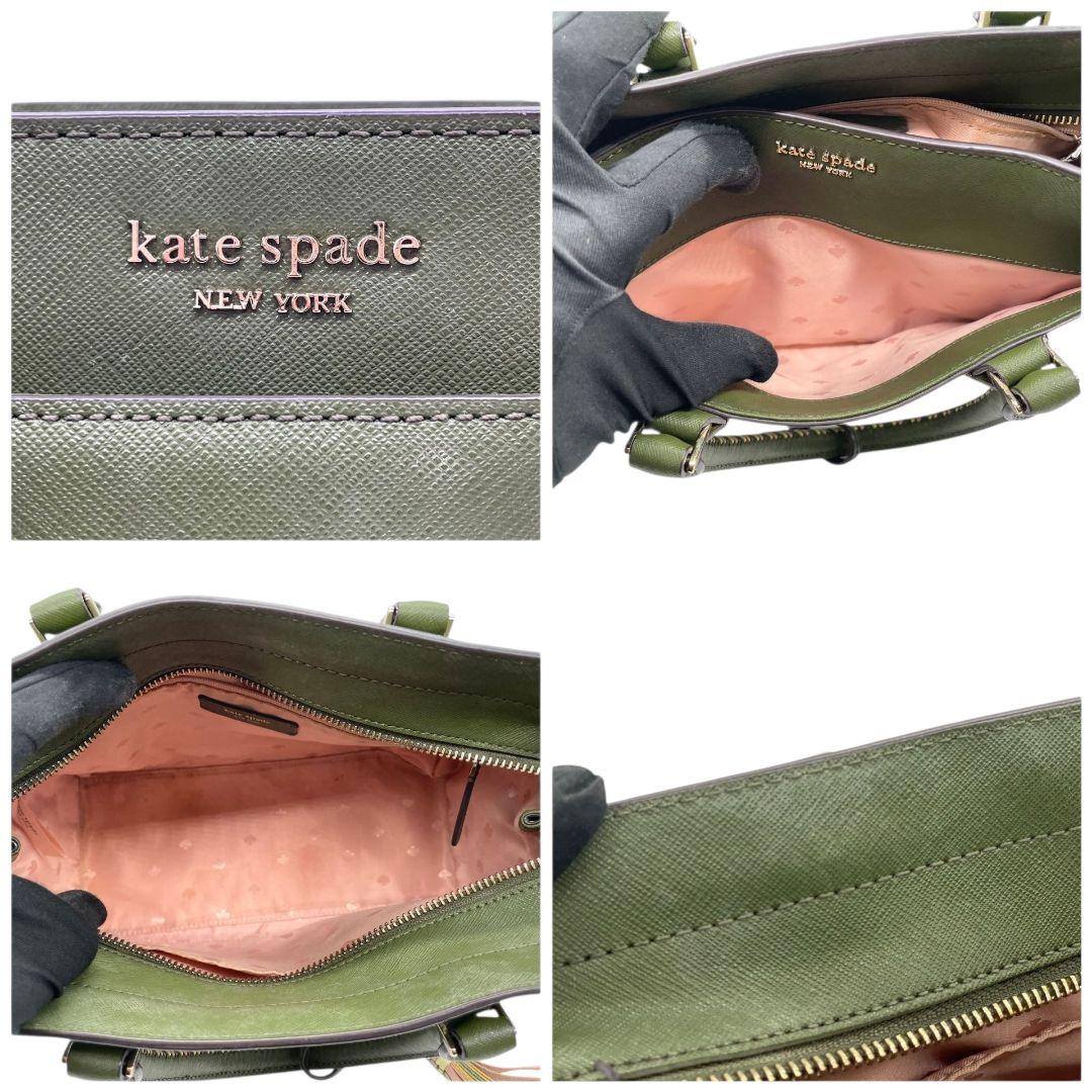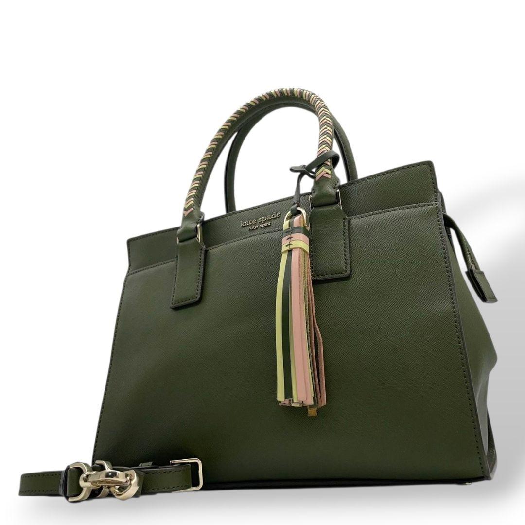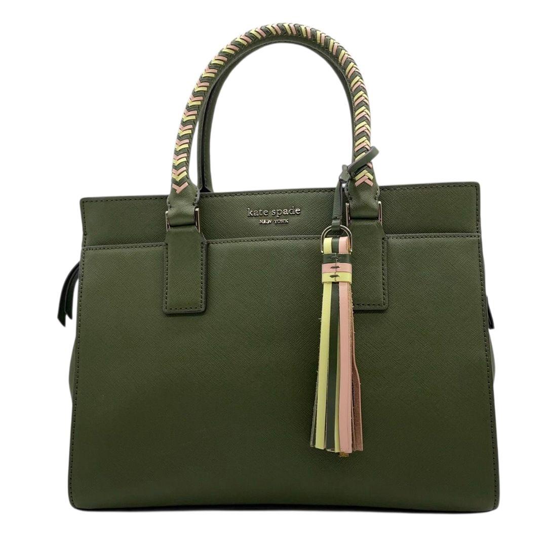 ケイトスペード ハンドバッグ 緑 タッセル 2way ショルダーバッグ レザー u12 トートバッグ 本革 グリーン イエロー ピンク 自立可 斜め掛け可 ゴールド金具 kate spade 上品 可愛い