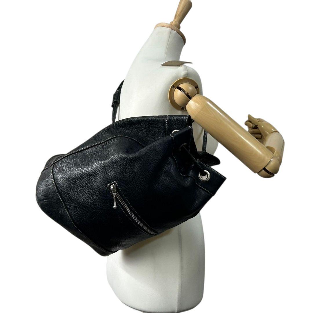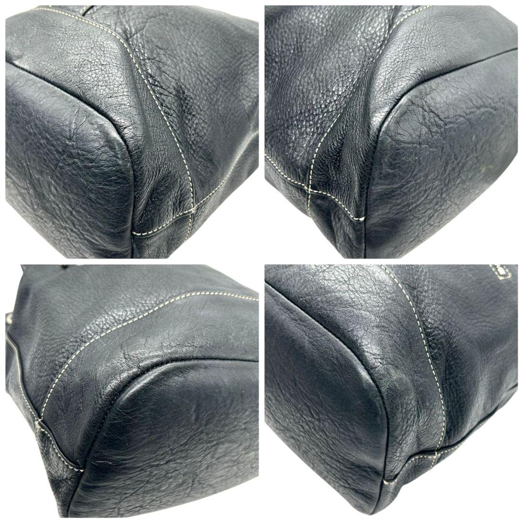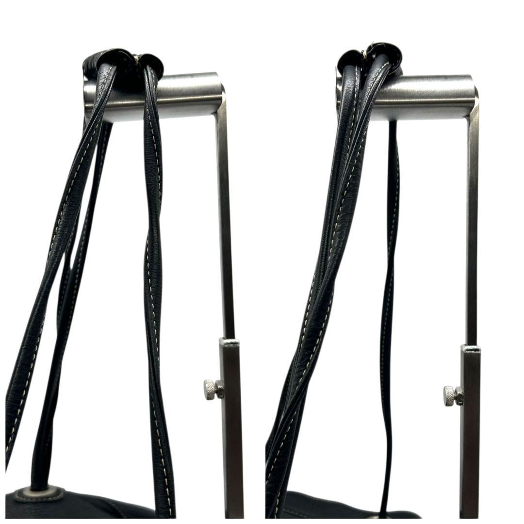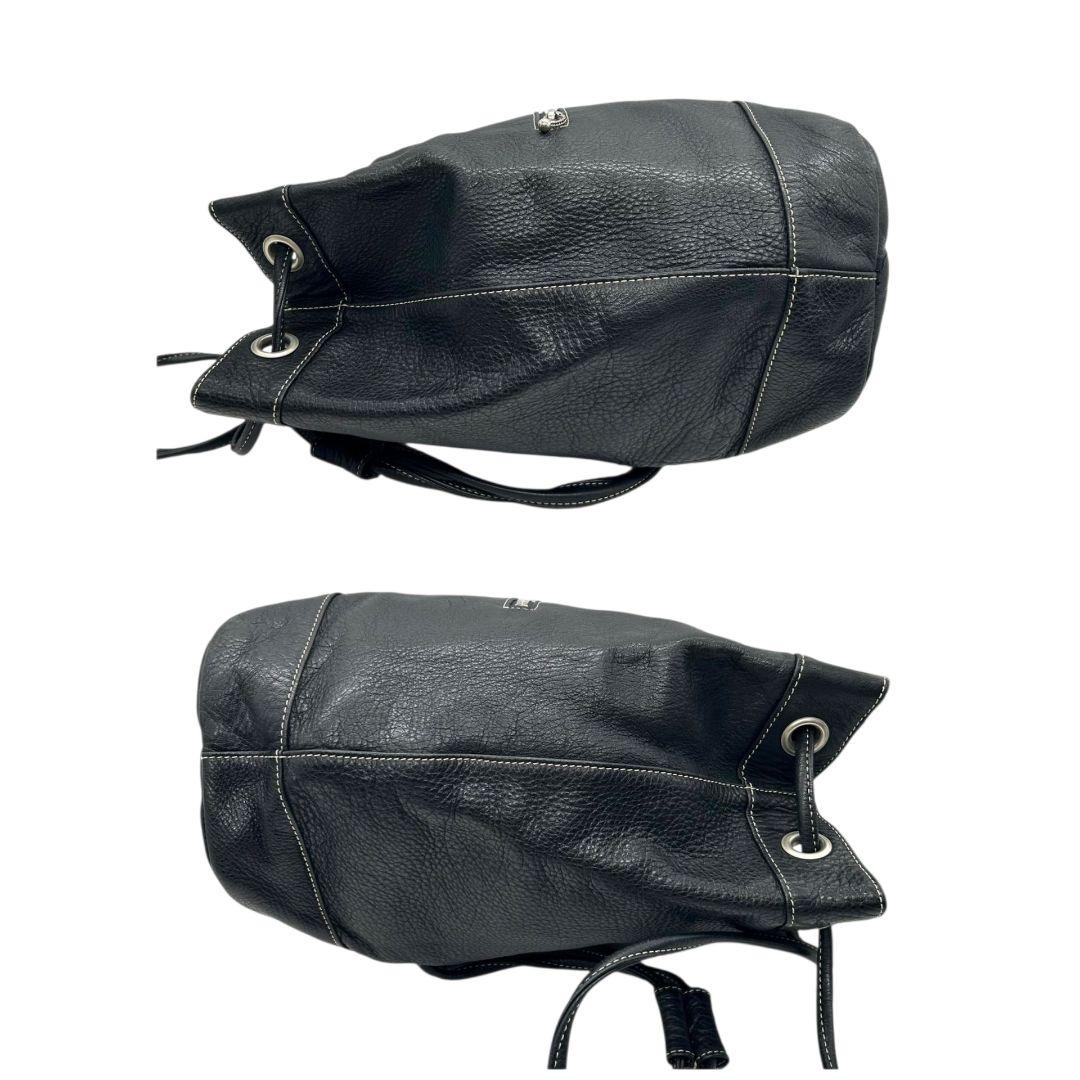 agnes b アニエスベー VOYAGE ショルダーバッグ 巾着 レザー 本革 黒 ブラック ロゴ ステッチ 巾着バッグ 斜め掛け可 ボディバッグ風 シルバー金具 s57