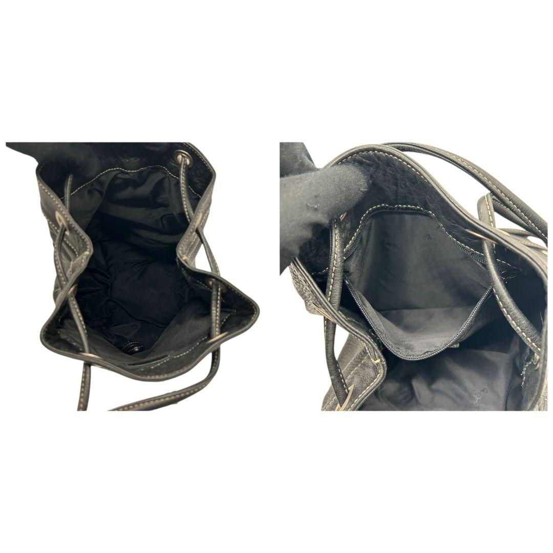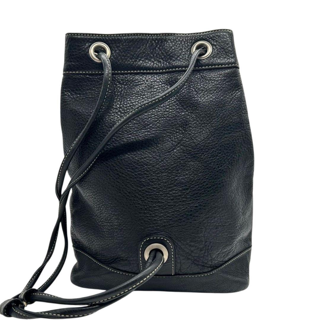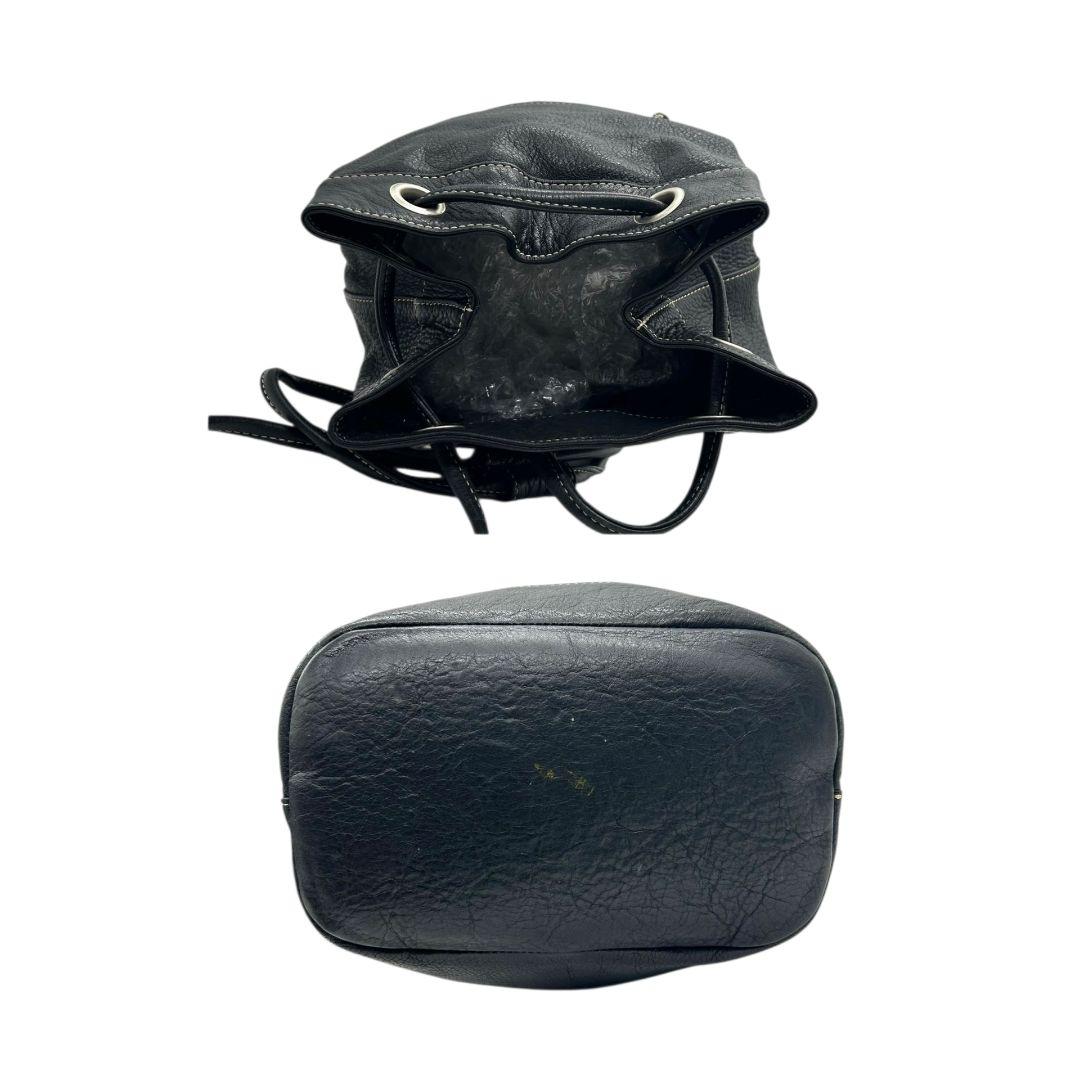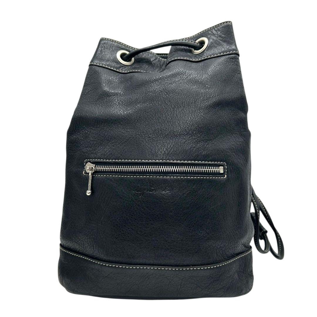 agnes b アニエスベー VOYAGE ショルダーバッグ 巾着 レザー 本革 黒 ブラック ロゴ ステッチ 巾着バッグ 斜め掛け可 ボディバッグ風 シルバー金具 s57