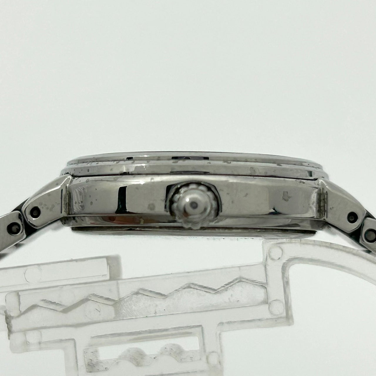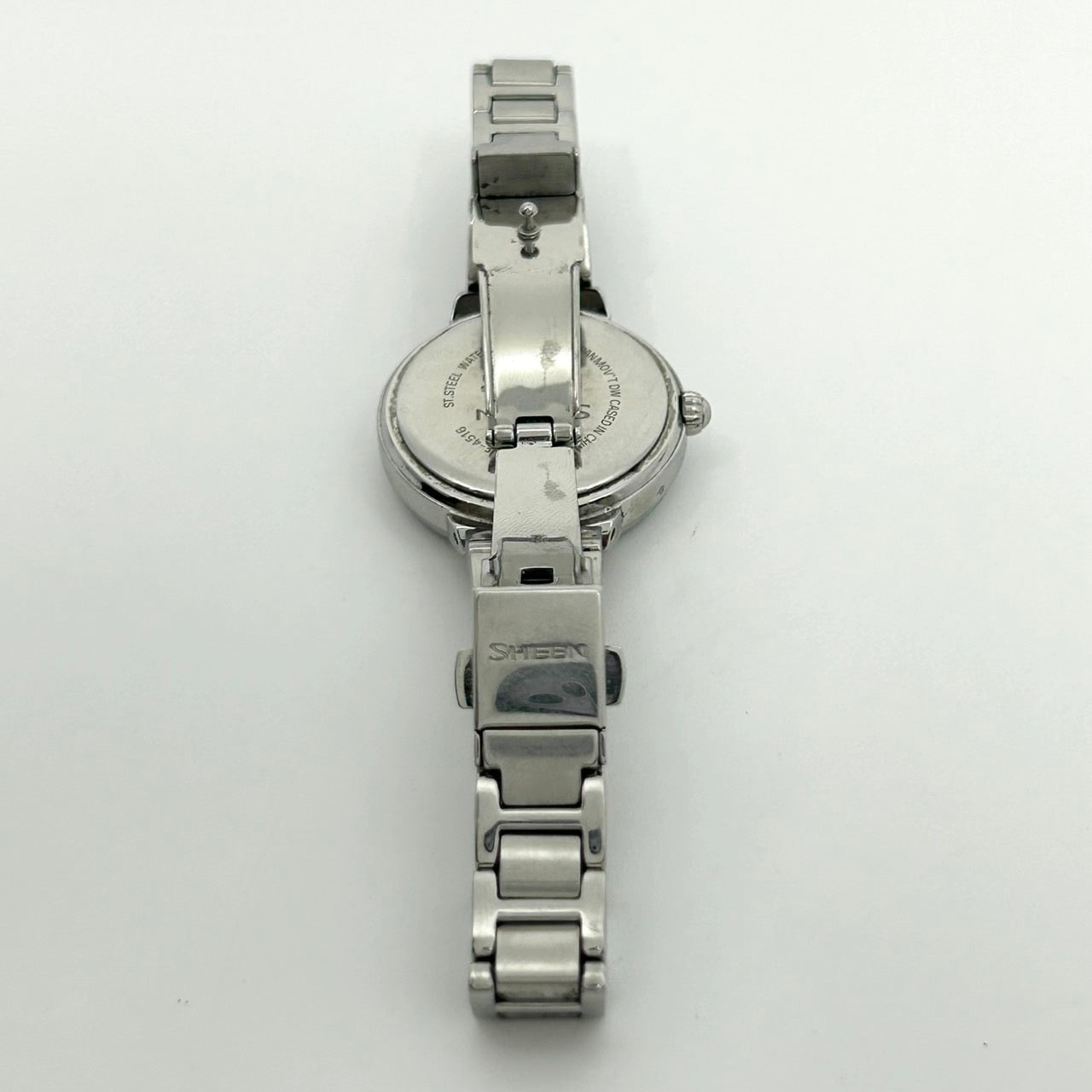 | 商品説明 | 【稼働品】本商品はCASIO(カシオ)のレディースウォッチ、SHEEN(シーン)です。 爽やかなホワイトの文字盤にメタリックブルーの針とインデックスが映える、エレガントなデザイン。 ソーラー充電機能と傷つきにくいサファイアガラスを搭載し、実用性にも優れています。 特徴 ブランド:CASIO(カシオ) モデル:SHEEN(シーン) 型番:SHE-4516 ムーブメント:ソーラー 風防:サファイアガラス ケース形状:ラウンド ケースカラー:シルバー 文字盤カラー:ホワイト 素材:ステンレススティール 仕様:アナログ表示 / デイト / ダイヤモンド / 5気圧防水 状態:稼働品 / クリーニング済み 9時位置には一粒のダイヤモンドがさりげなく輝き、手元を上品に演出します。 クリーニング済みですので、すぐにお使いいただけます。 |
