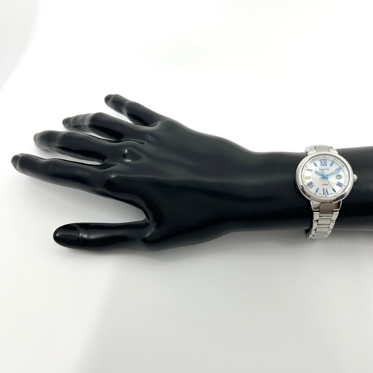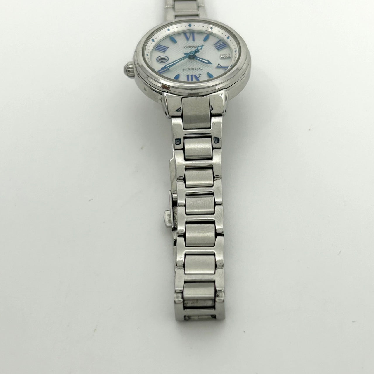 【稼働品】CASIO SHEEN カシオ シーン レディース腕時計 SHE-4516 ソーラー サファイアガラス ホワイト文字盤 ブルーインデックス デイト ダイヤモンド ラウンド アナログ エレガント クラシックデザイン クリーニング済み G6