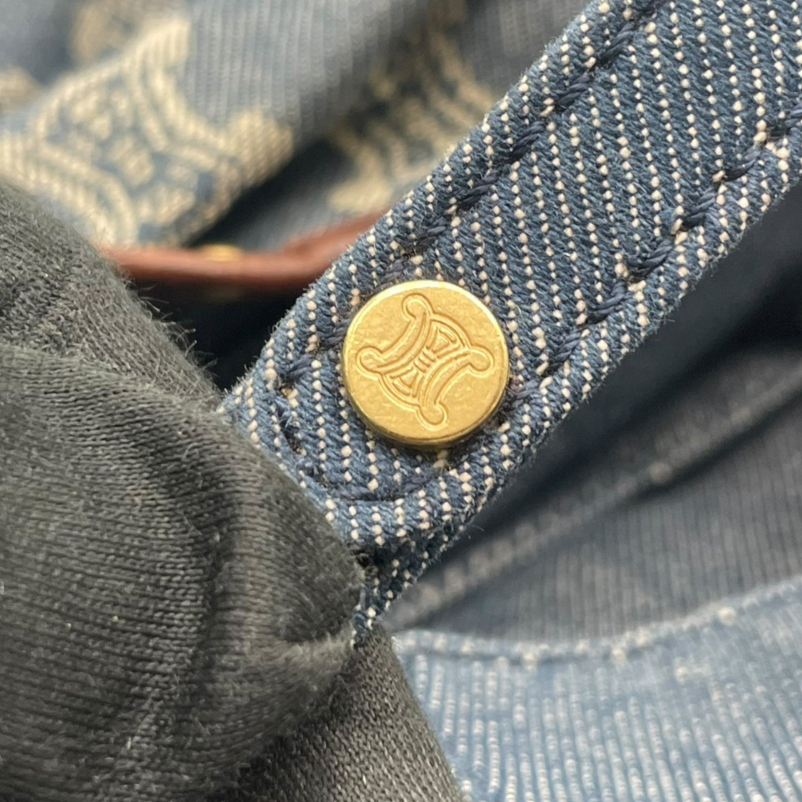 | Production features | This is a CELINE Paris Macadam Pattern denim and leather handbag. The iconic Triomphe motif is printed all over the blue denim fabric, while the brown leather handles and gold metal accents add a touch of luxury. The sturdy gusset and wide opening provide ample storage. Its size makes it convenient for everyday use, travel, and outings. Its charming vintage feel complements a wide range of outfits, from casual to elegant. This authentic item is in excellent condition. It combines the elegance and practicality of CELINE, ensuring a long-lasting cherished piece. [Product Features] - Brand: CELINE - Model: Paris Macadam Triomphe - Material: Denim, leather - Color: - - Metal: Brown - Design: Tote Bag, Handbag - Target: Women - Condition: Good condition - Accessories: Genuine This bag has a design that combines casualness and elegance, making it a recommended bag that can be easily matched with a wide range of outfits. |