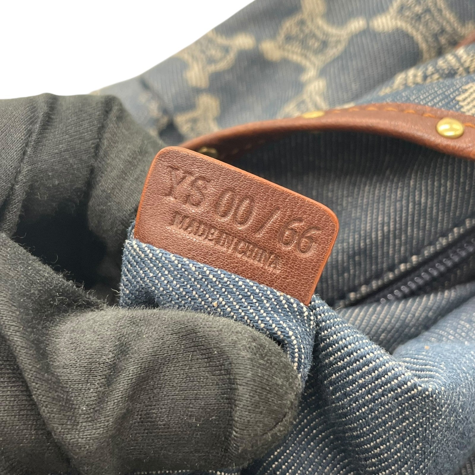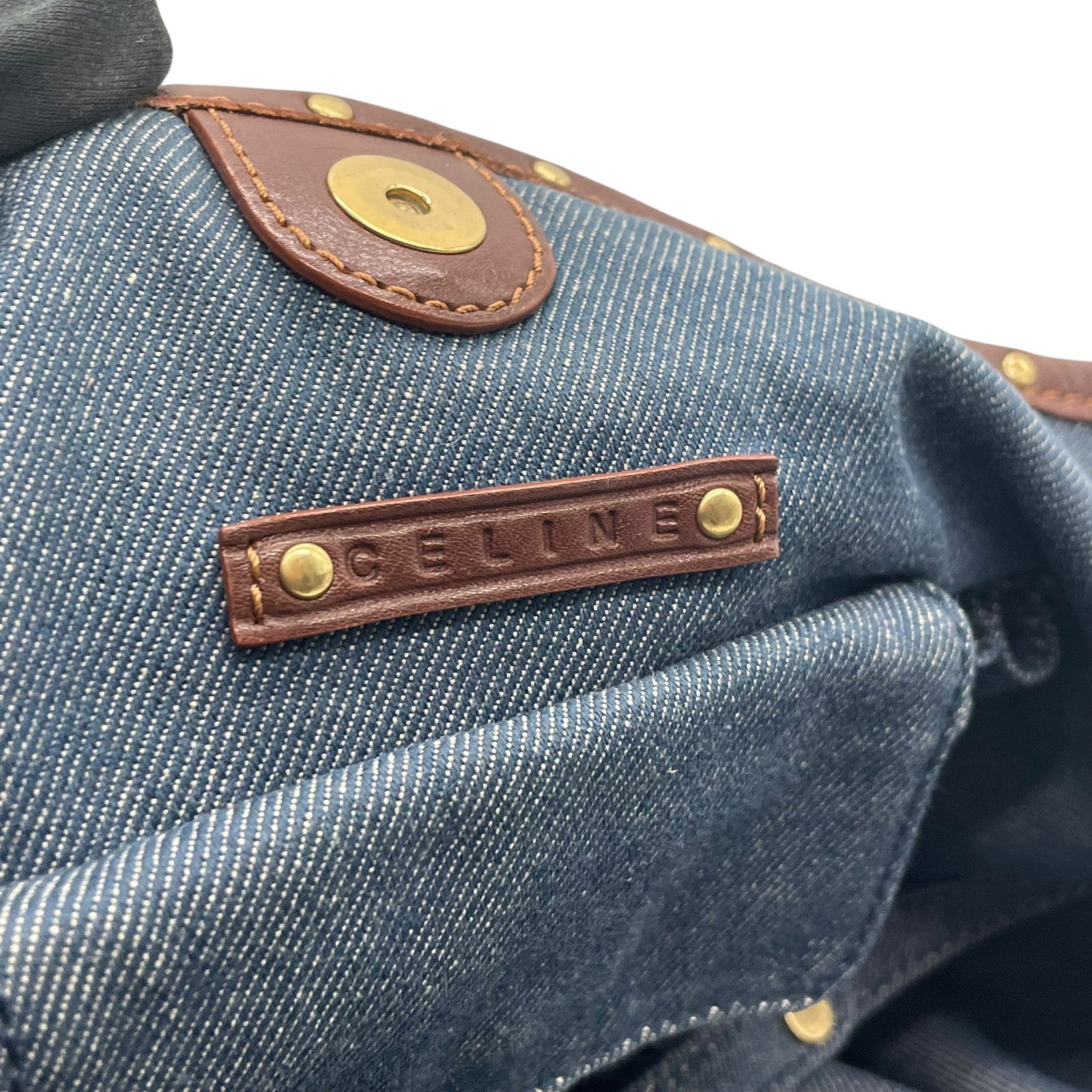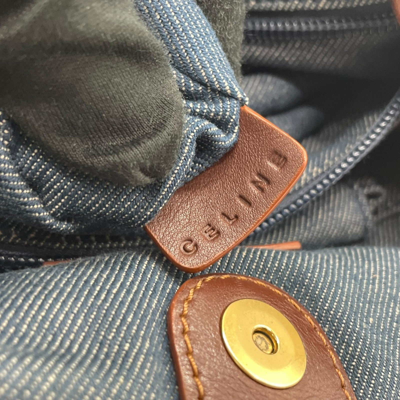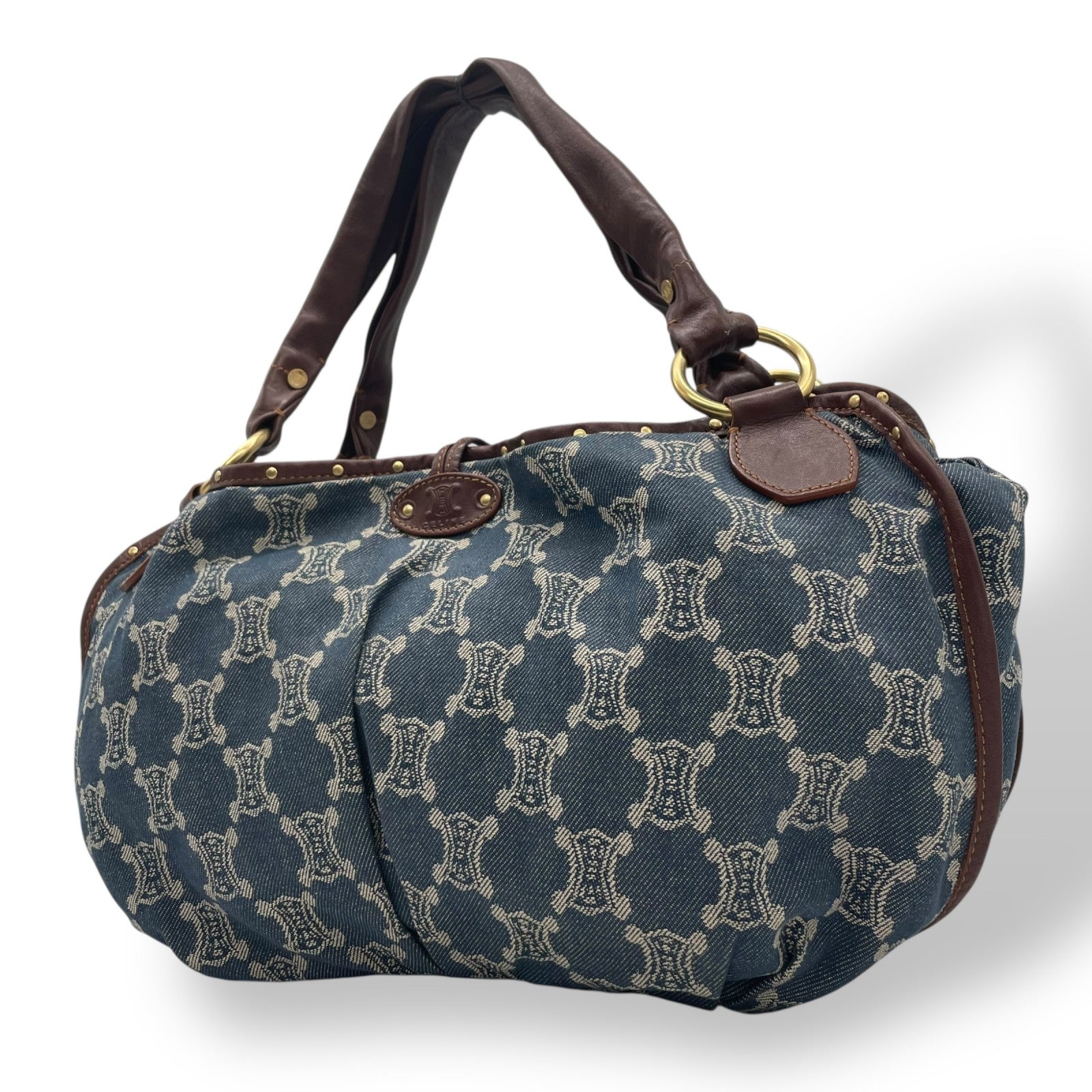 Excellent condition Celine Paris Macadam Triomphe denim and leather handbag in brown metal. Vintage tote bag for women. Authentic. Z4.