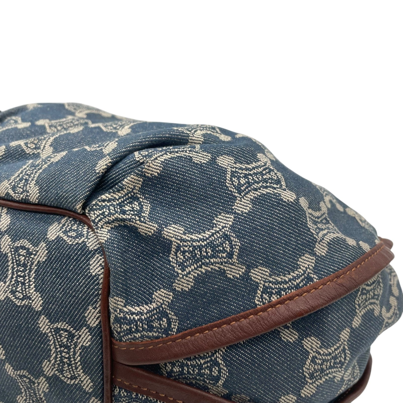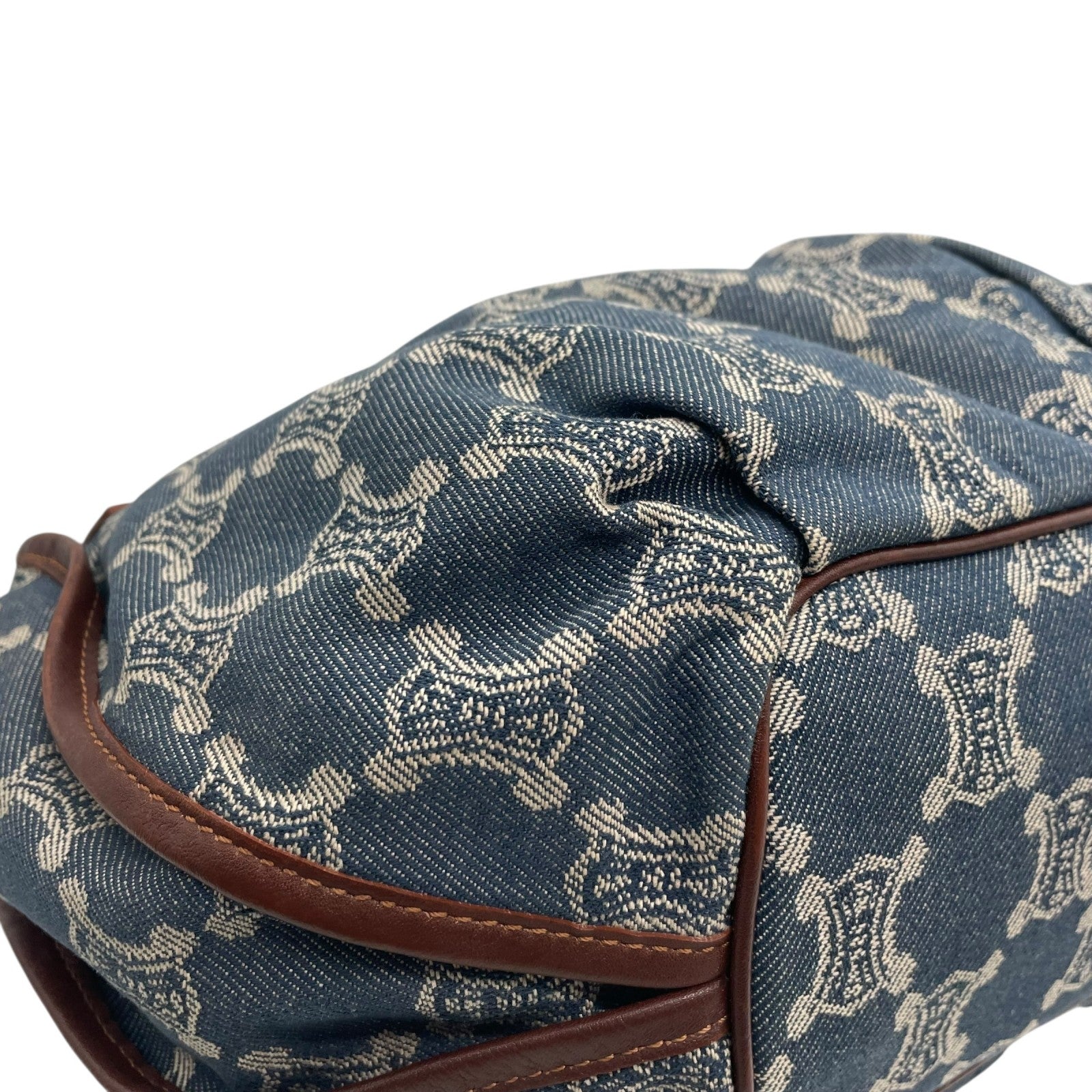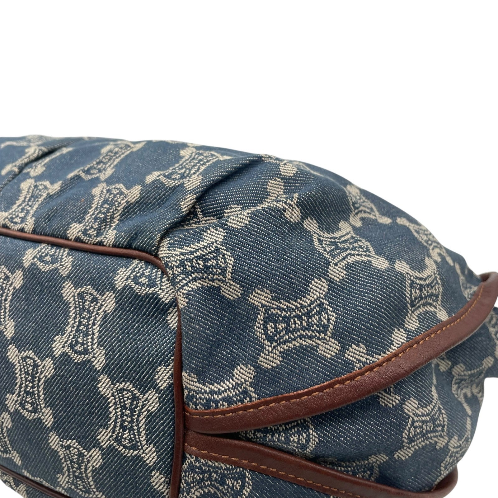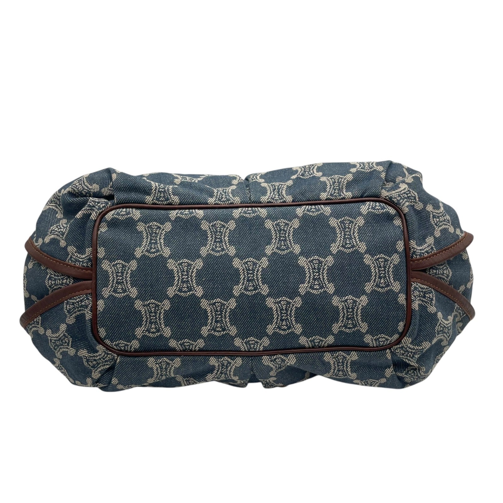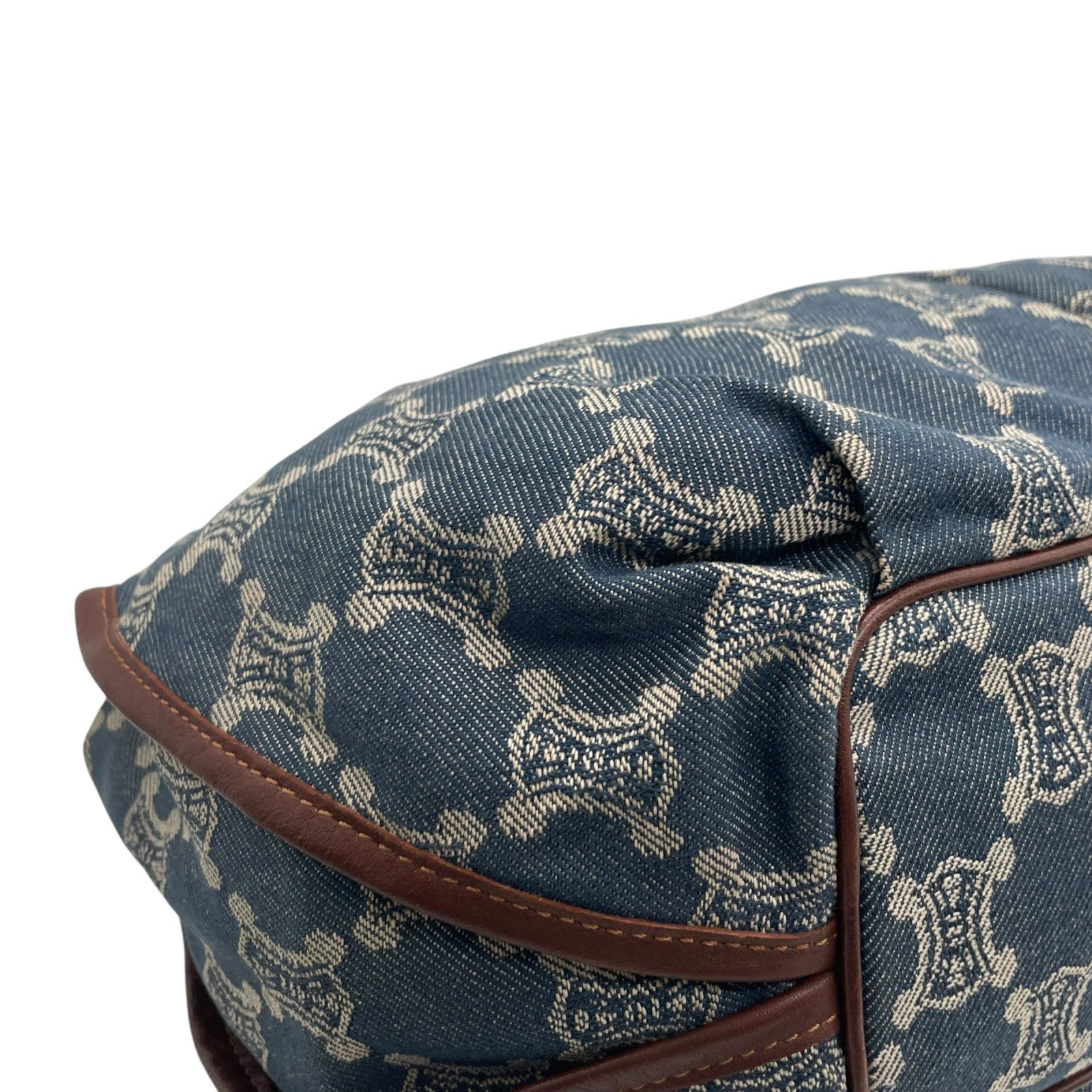 Authentic CELINE Pari Macadam Triomphe Denim Leather Handbag Brown Hardware