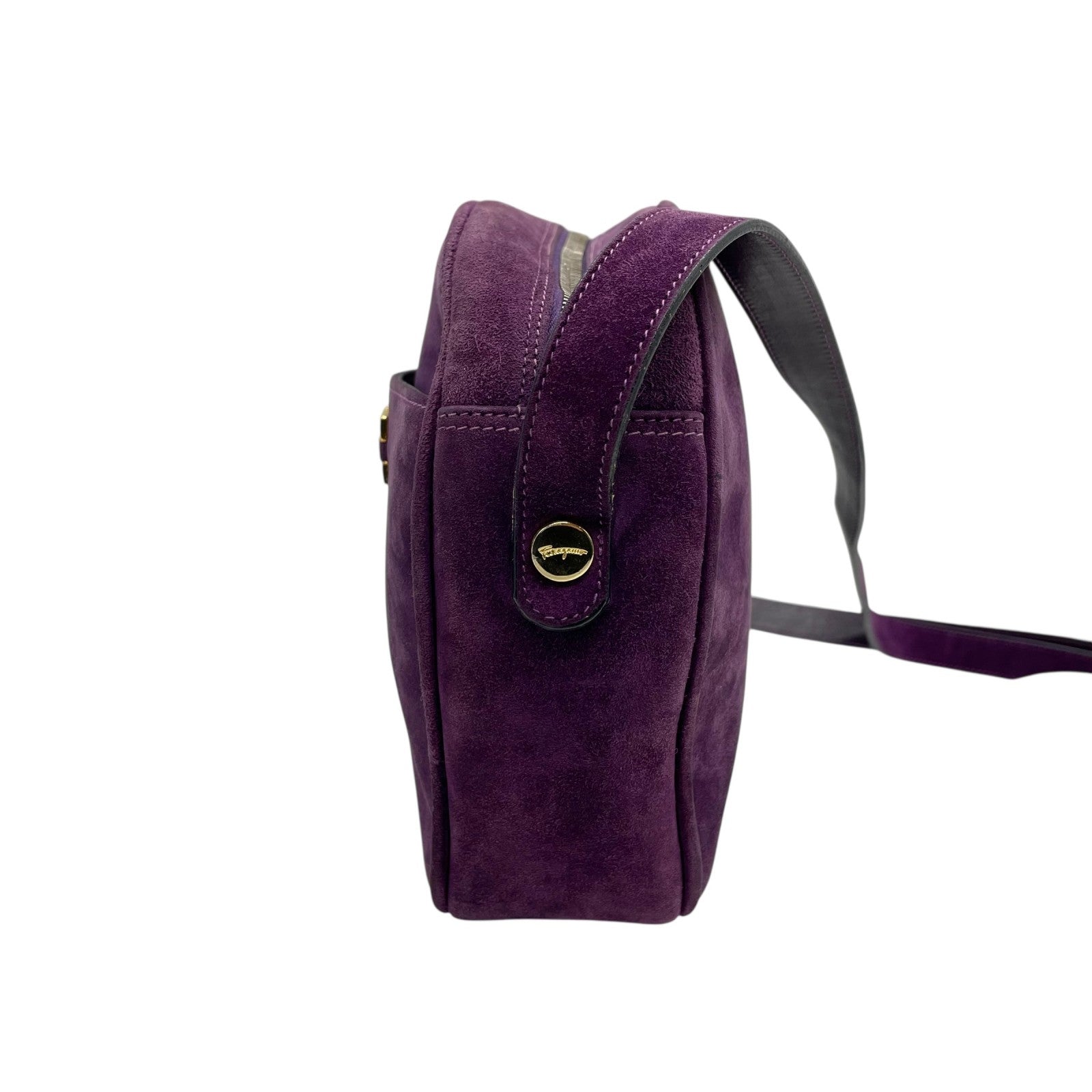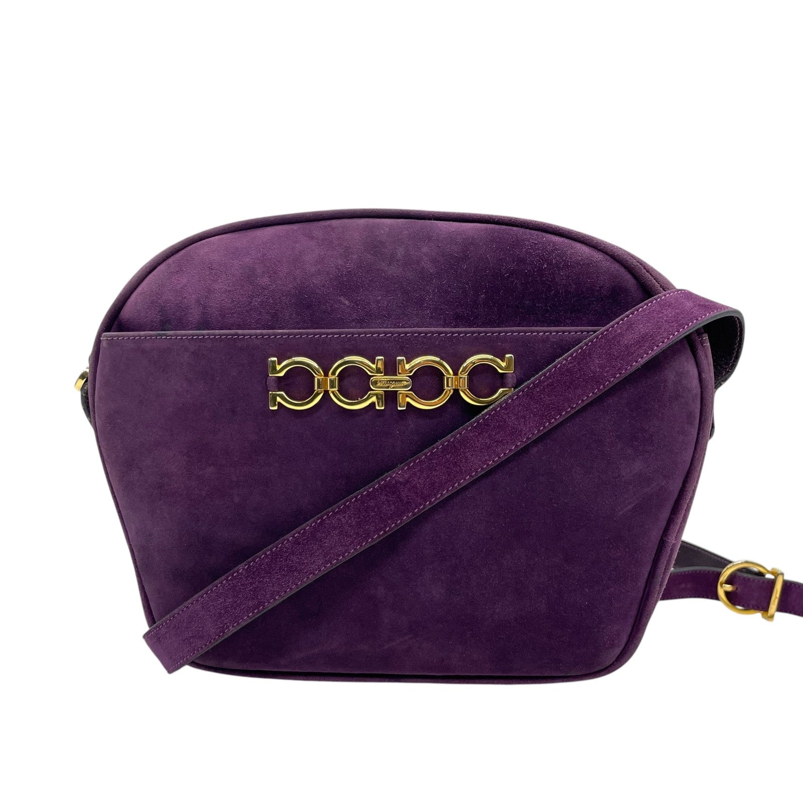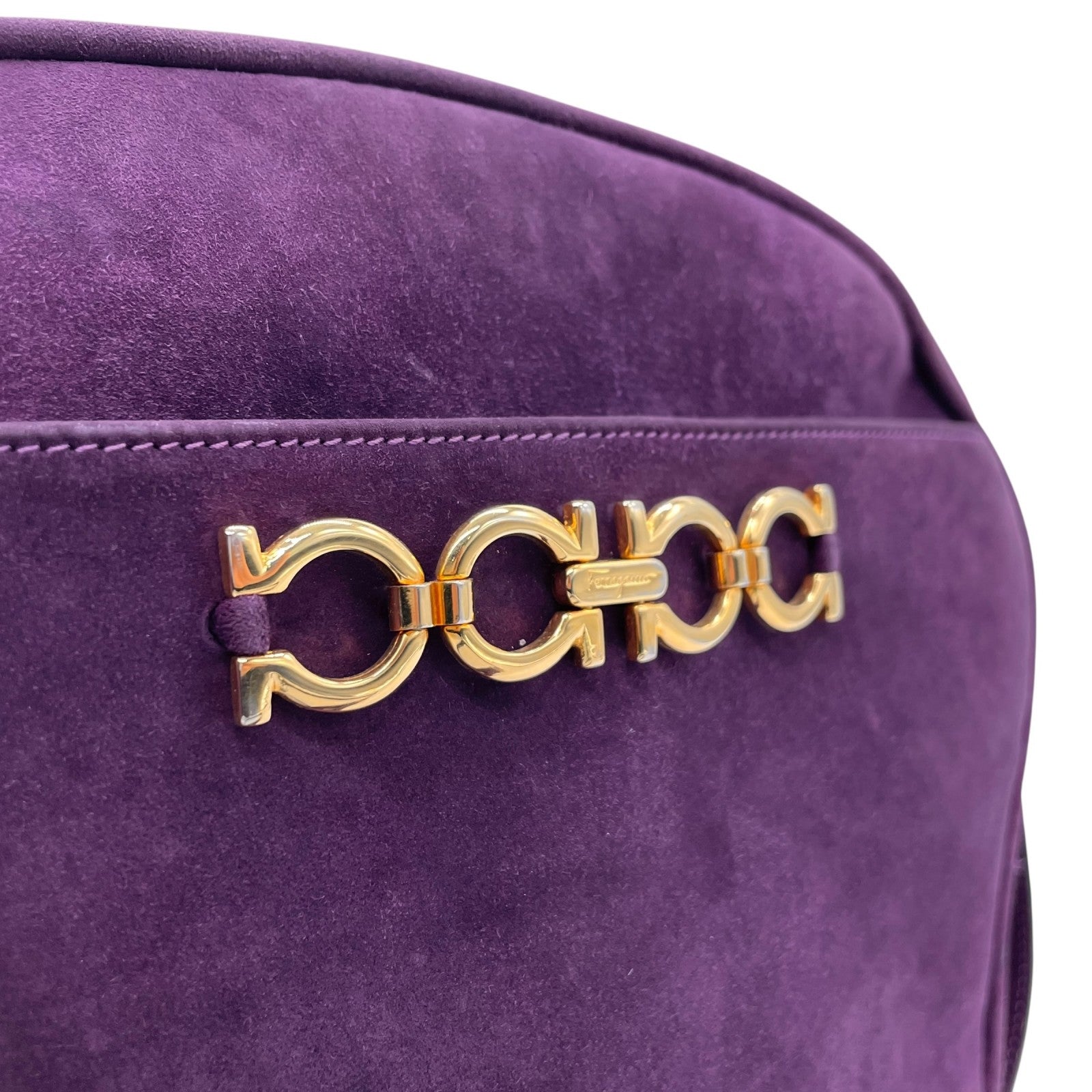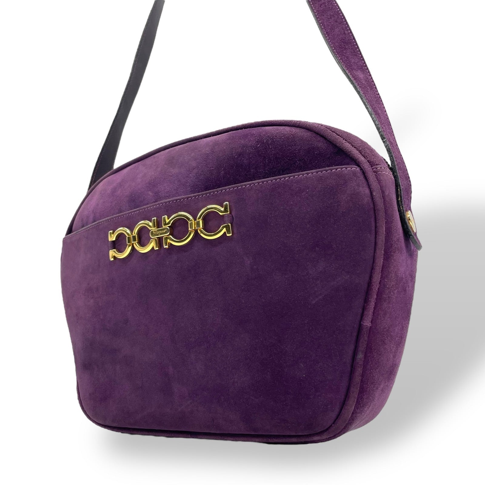 美品 Salvatore Ferragamo フェラガモ ガンチーニ ダブルガンチーニ ショルダーバッグ 紫 パープル スエード ゴールド金具 斜め掛け可 ポシェット ヴィンテージ レディース D7
