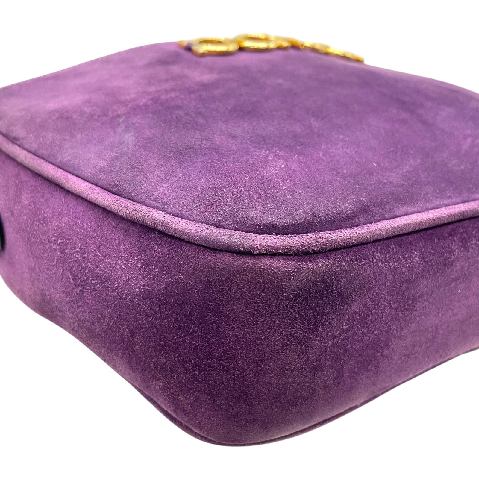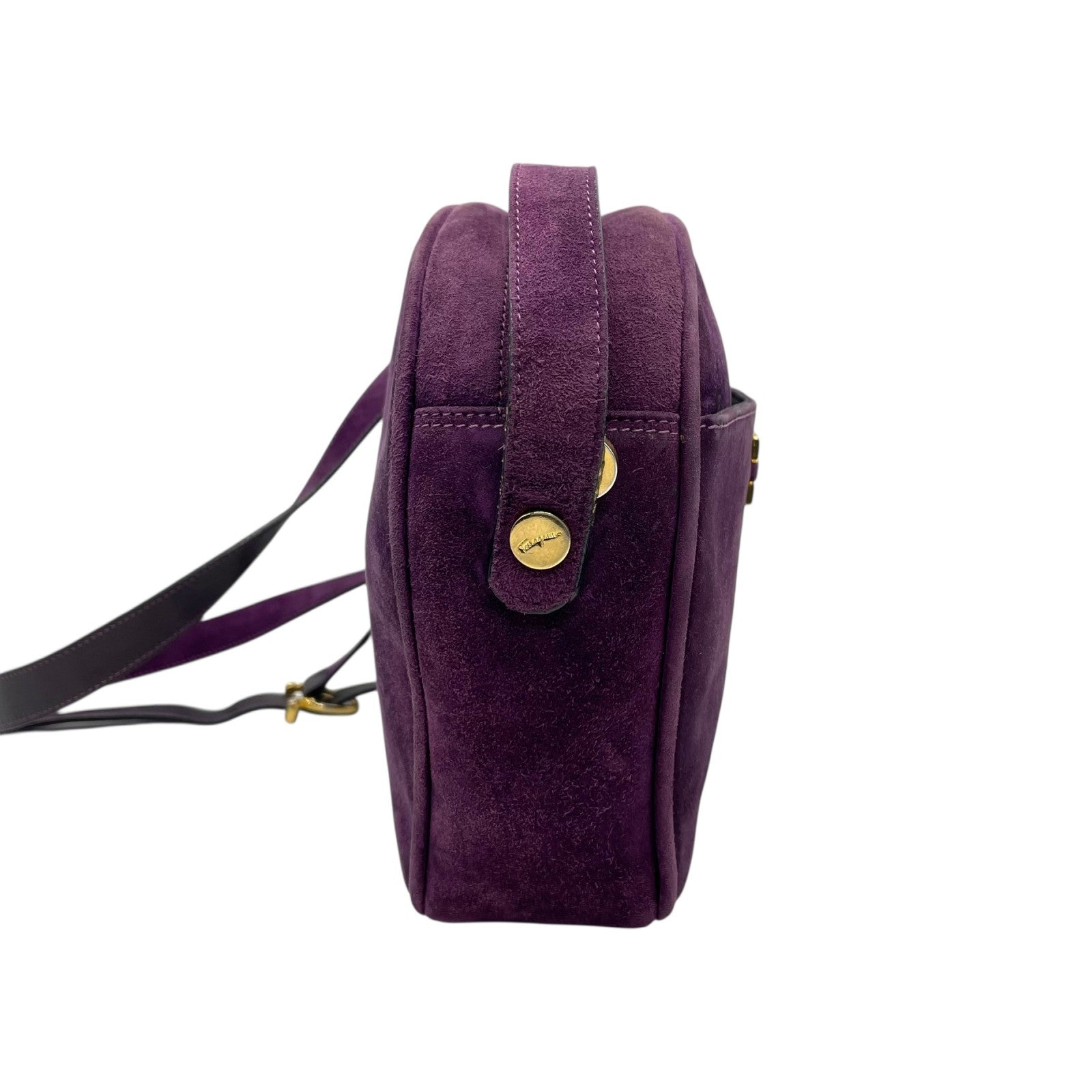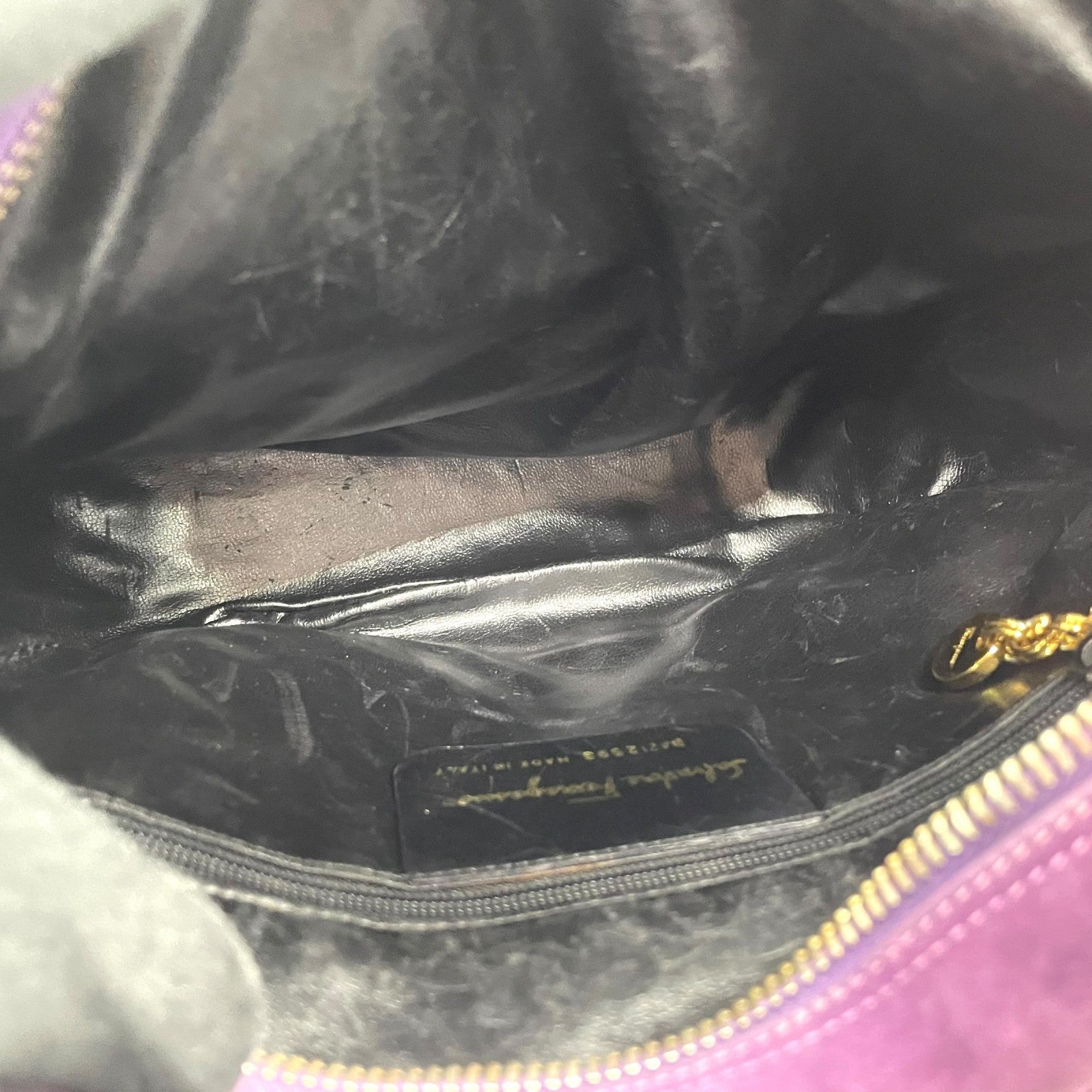 美品 Salvatore Ferragamo フェラガモ ガンチーニ ダブルガンチーニ ショルダーバッグ 紫 パープル スエード ゴールド金具 斜め掛け可 ポシェット ヴィンテージ レディース D7