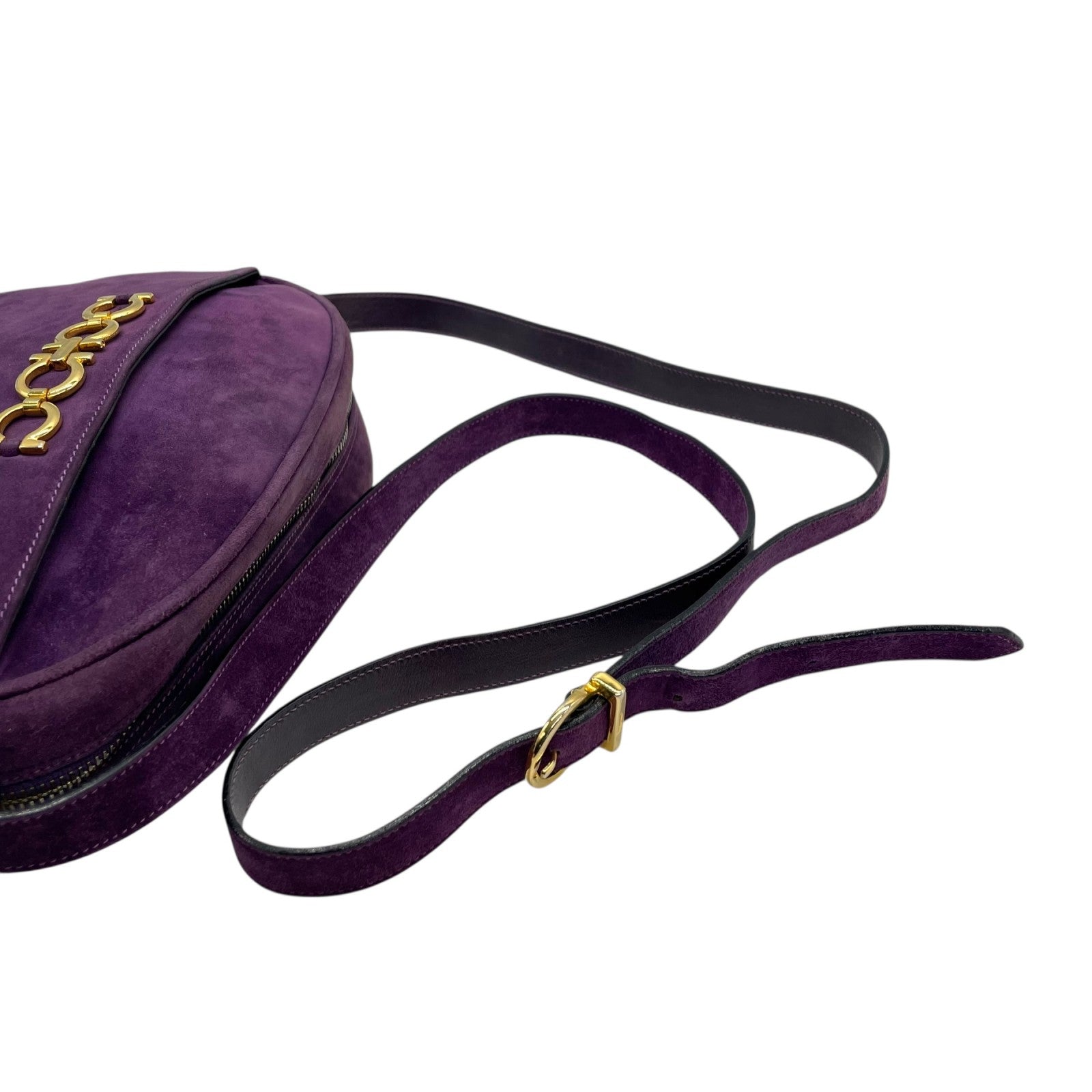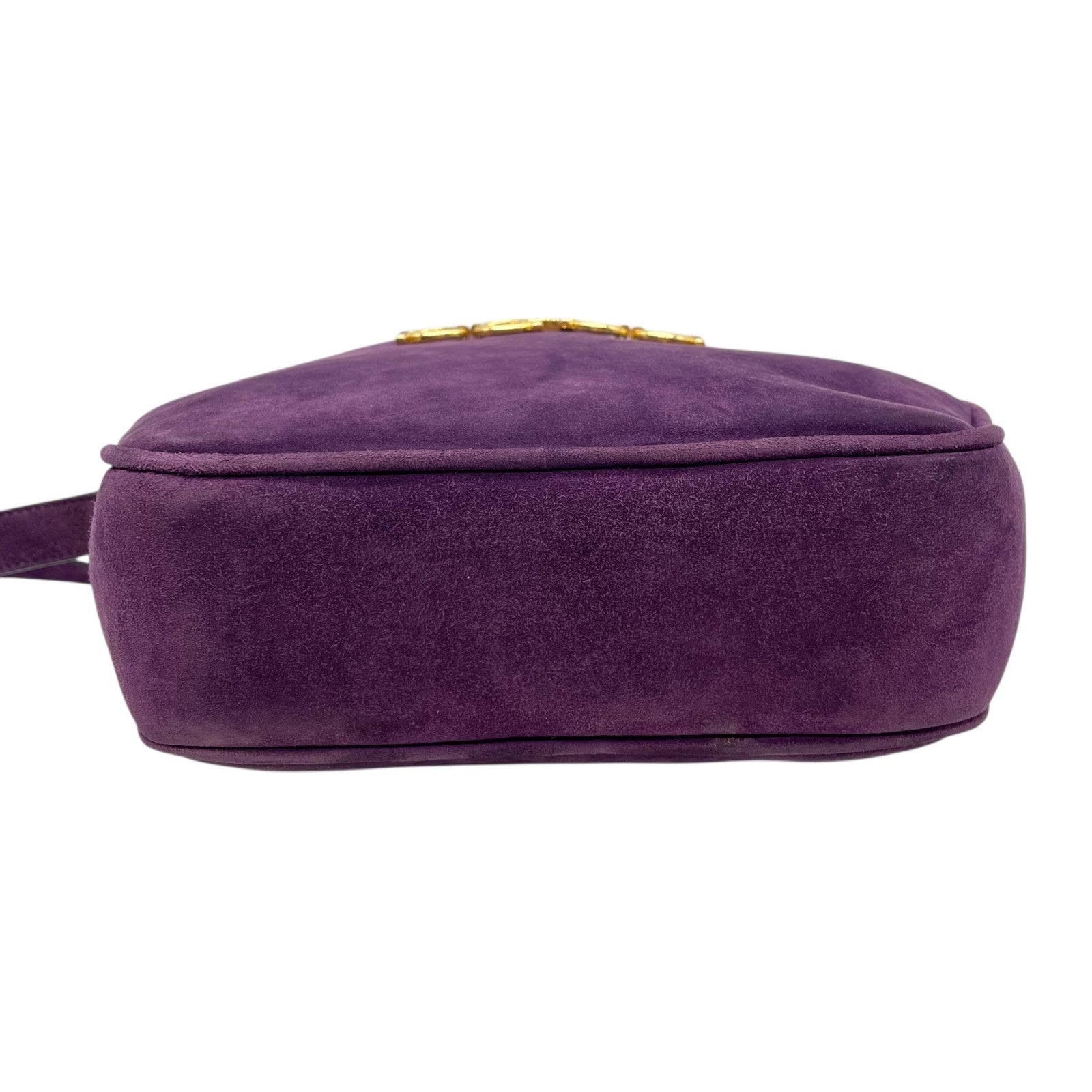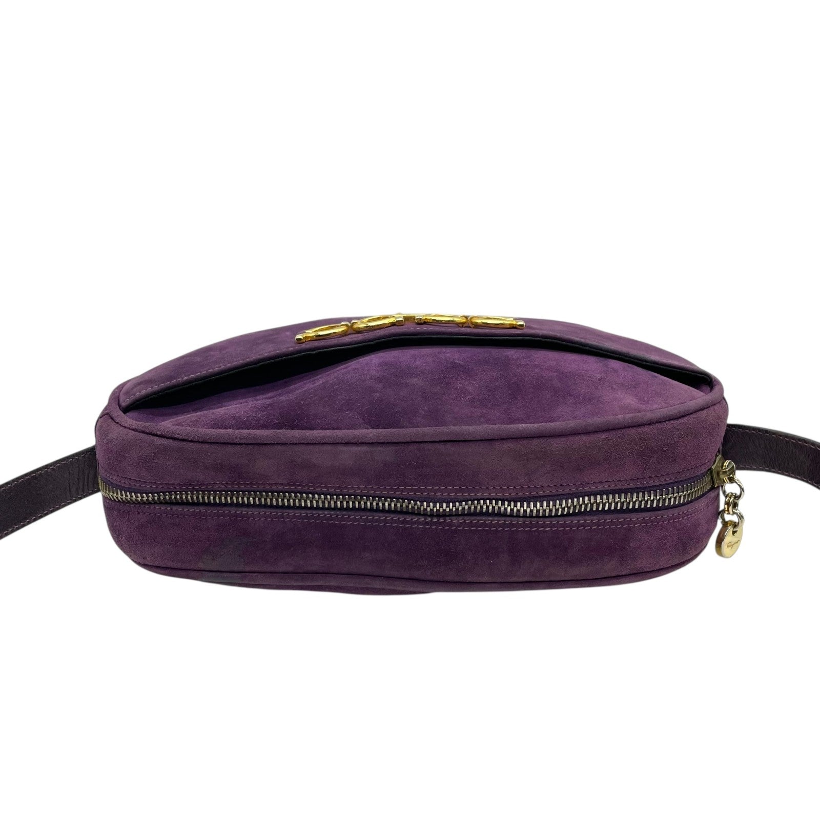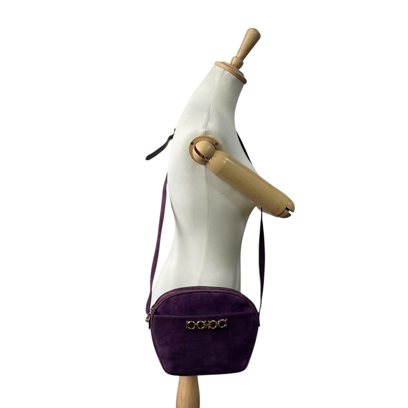美品 Salvatore Ferragamo フェラガモ ガンチーニ ダブルガンチーニ ショルダーバッグ 紫 パープル スエード ゴールド金具 斜め掛け可 ポシェット ヴィンテージ レディース D7