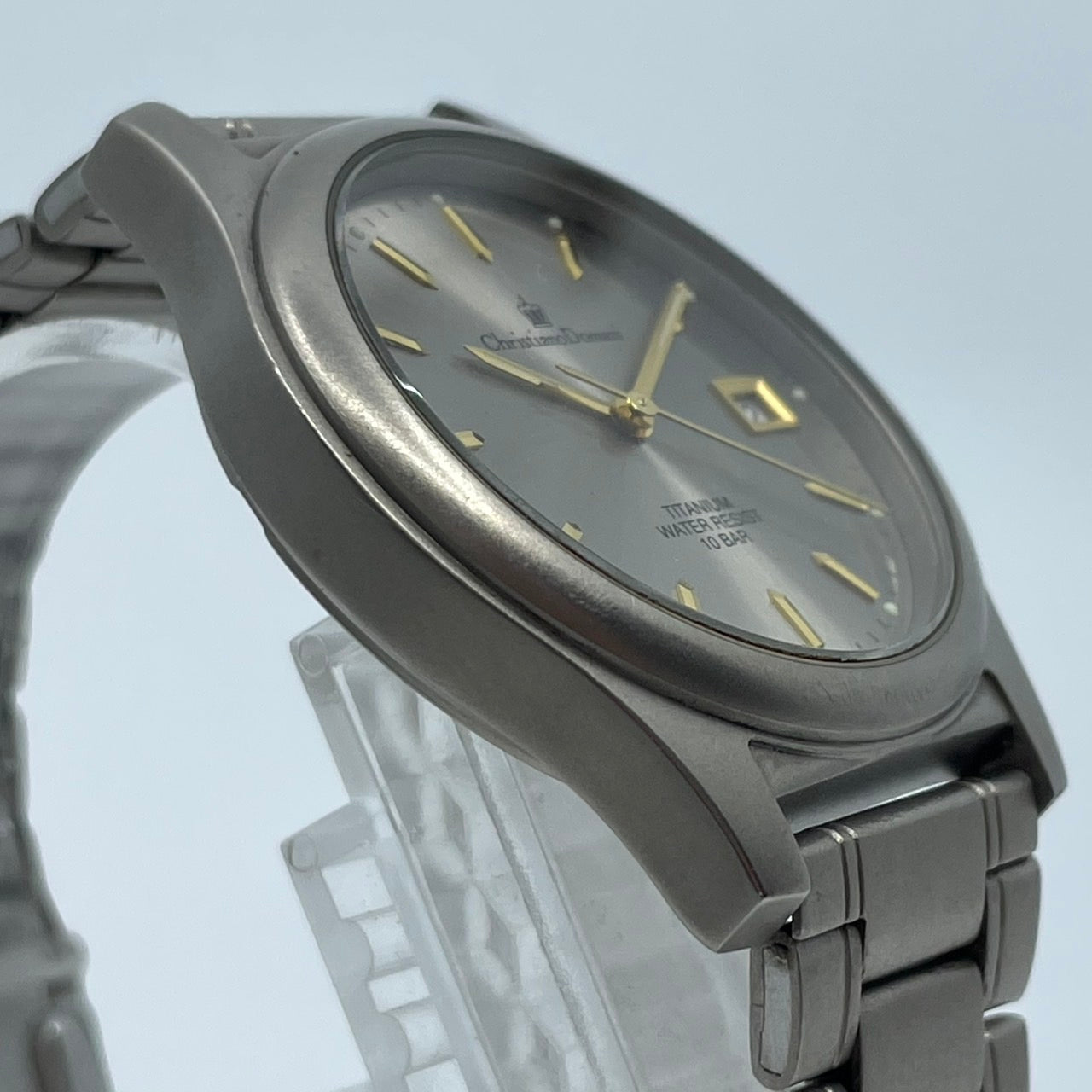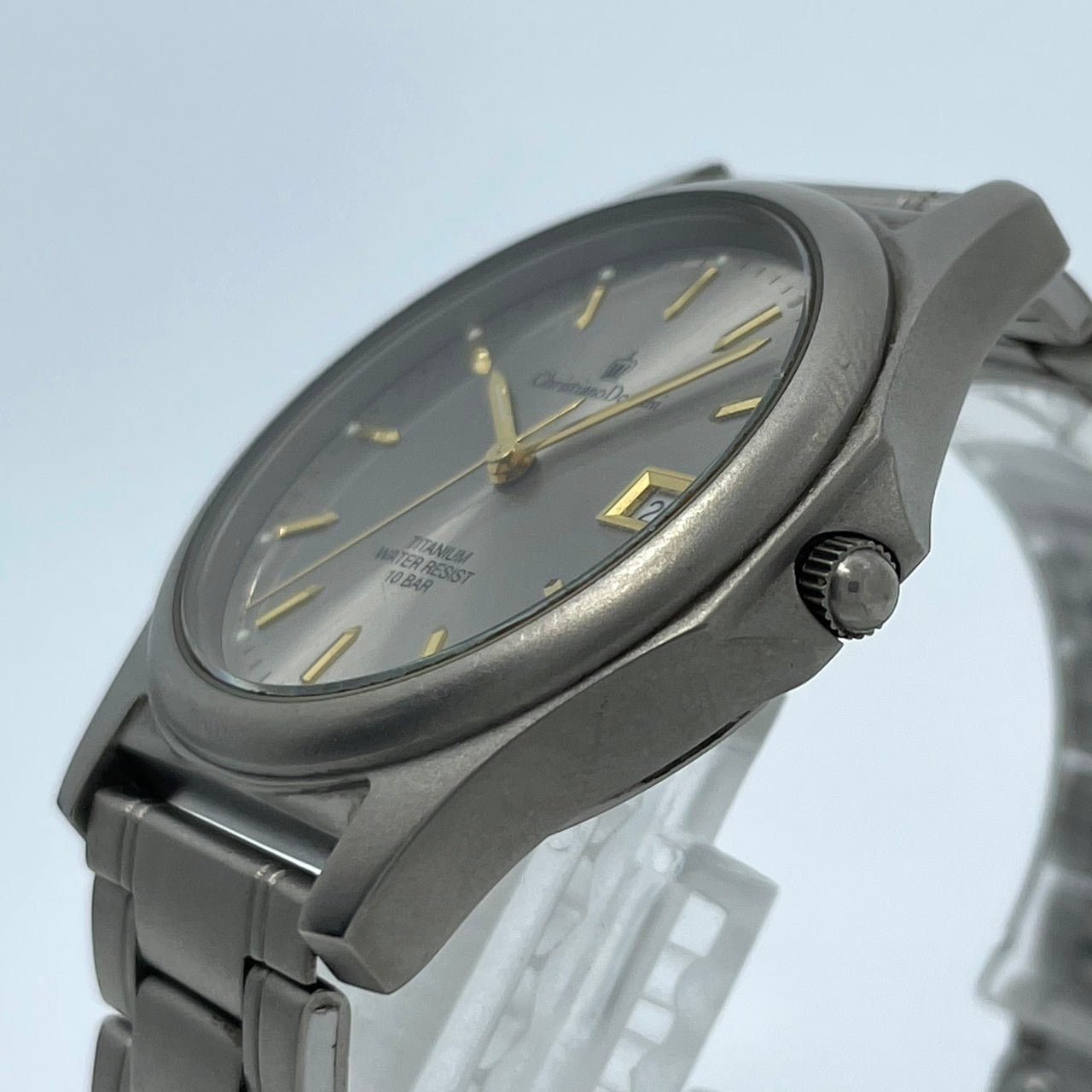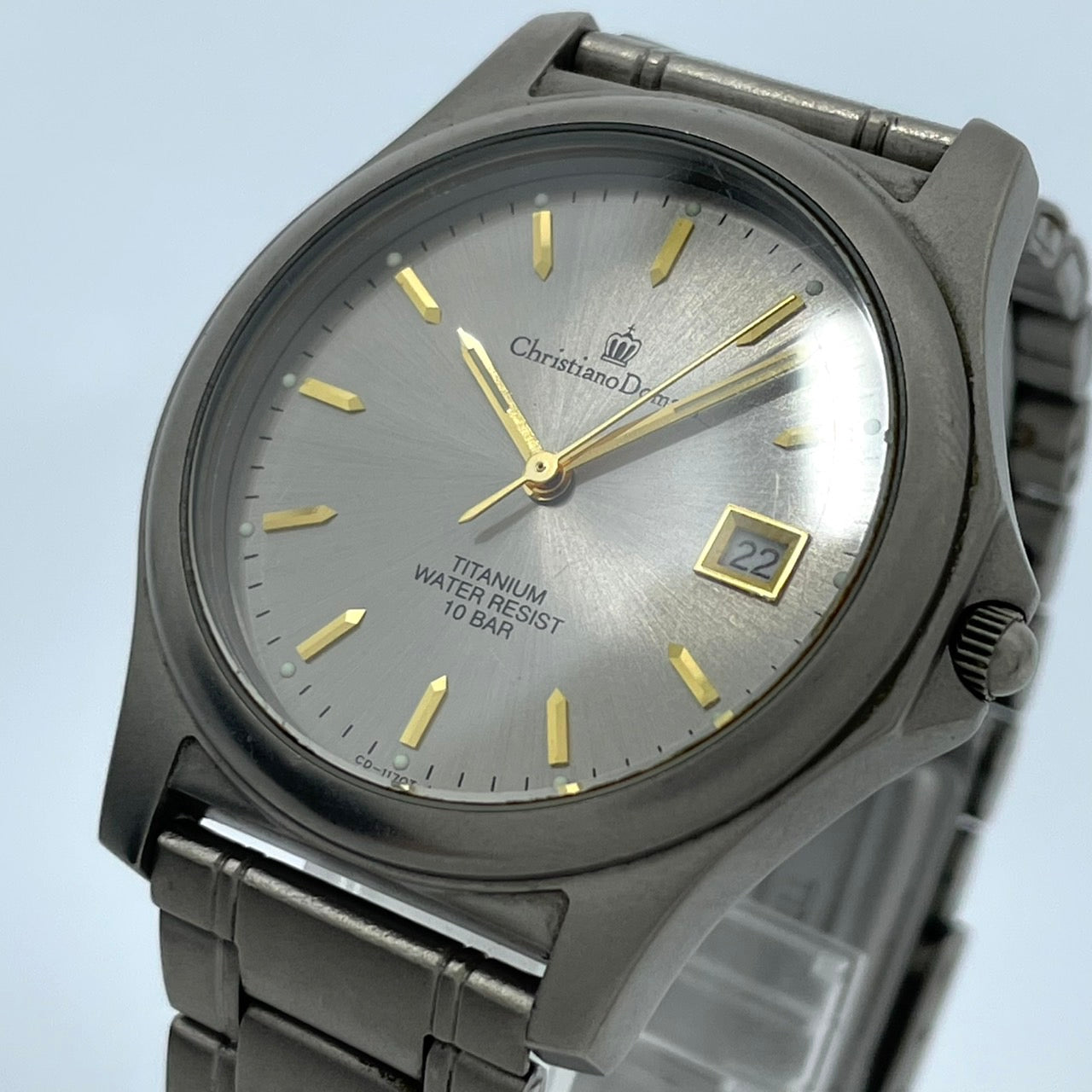【電池交換済】クリスチャンドマーニ 腕時計 CD-1170T メンズ チタンモデル クオーツ グレー文字盤 ゴールド針 デイト アナログ 軽量 ビジネスウォッチ ドレスウォッチ エレガント 10気圧防水 人気モデル クリーニング済み G2