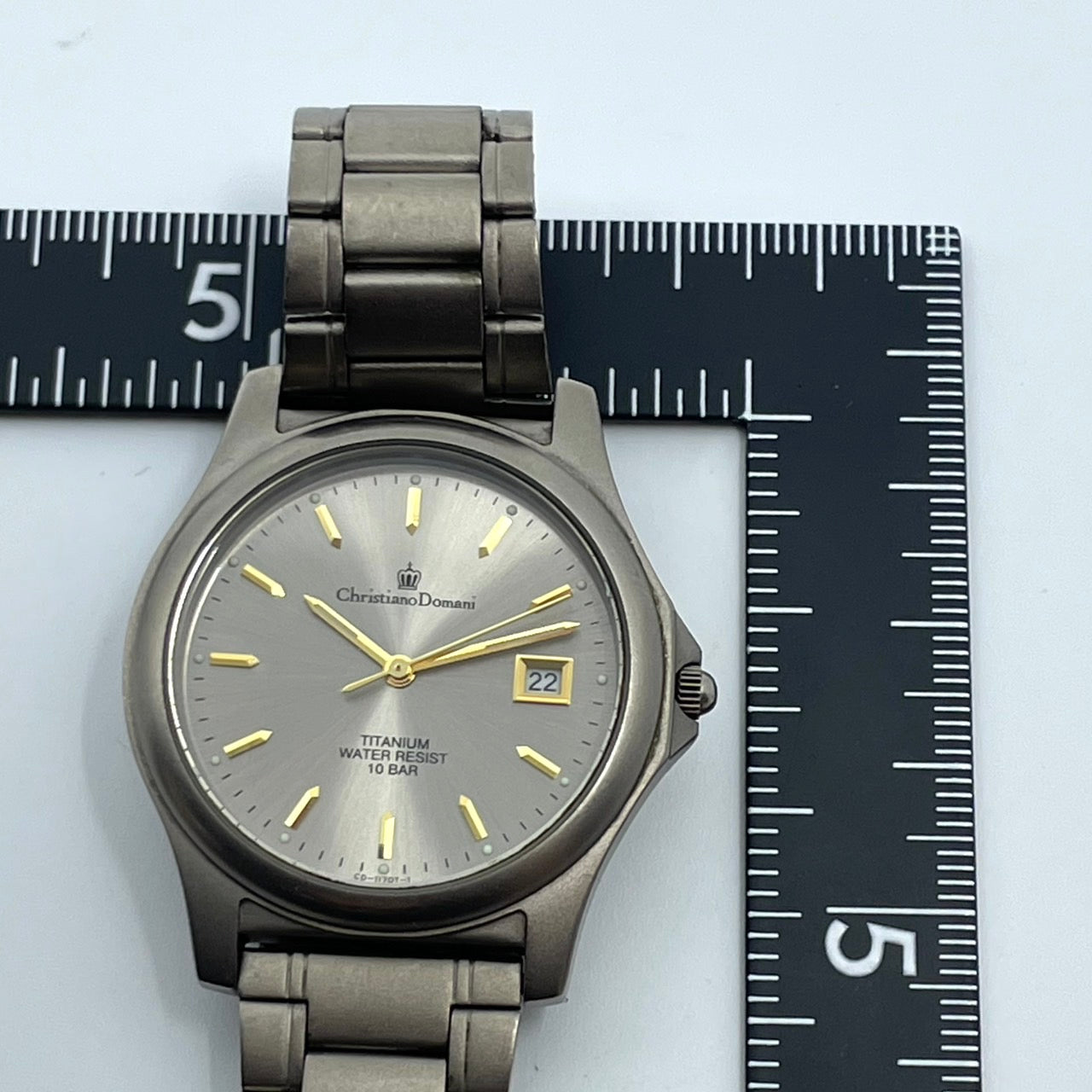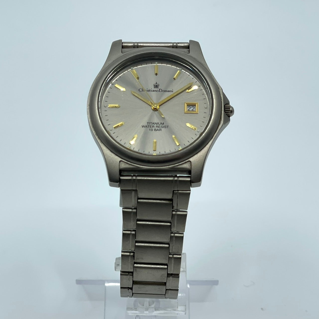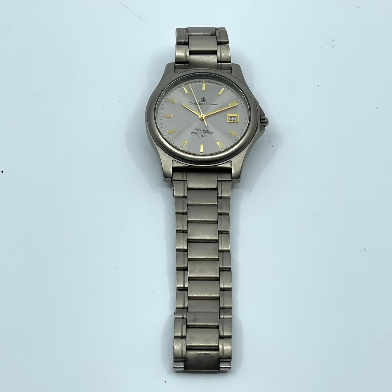 【電池交換済】クリスチャンドマーニ 腕時計 CD-1170T メンズ チタンモデル クオーツ グレー文字盤 ゴールド針 デイト アナログ 軽量 ビジネスウォッチ ドレスウォッチ エレガント 10気圧防水 人気モデル クリーニング済み G2