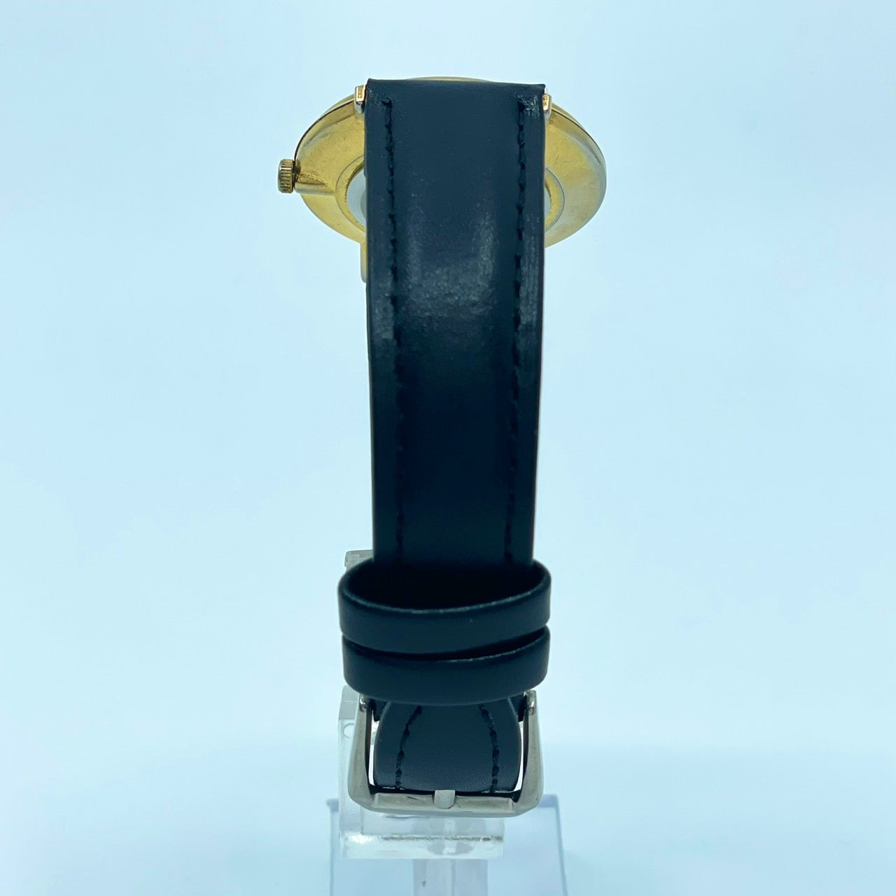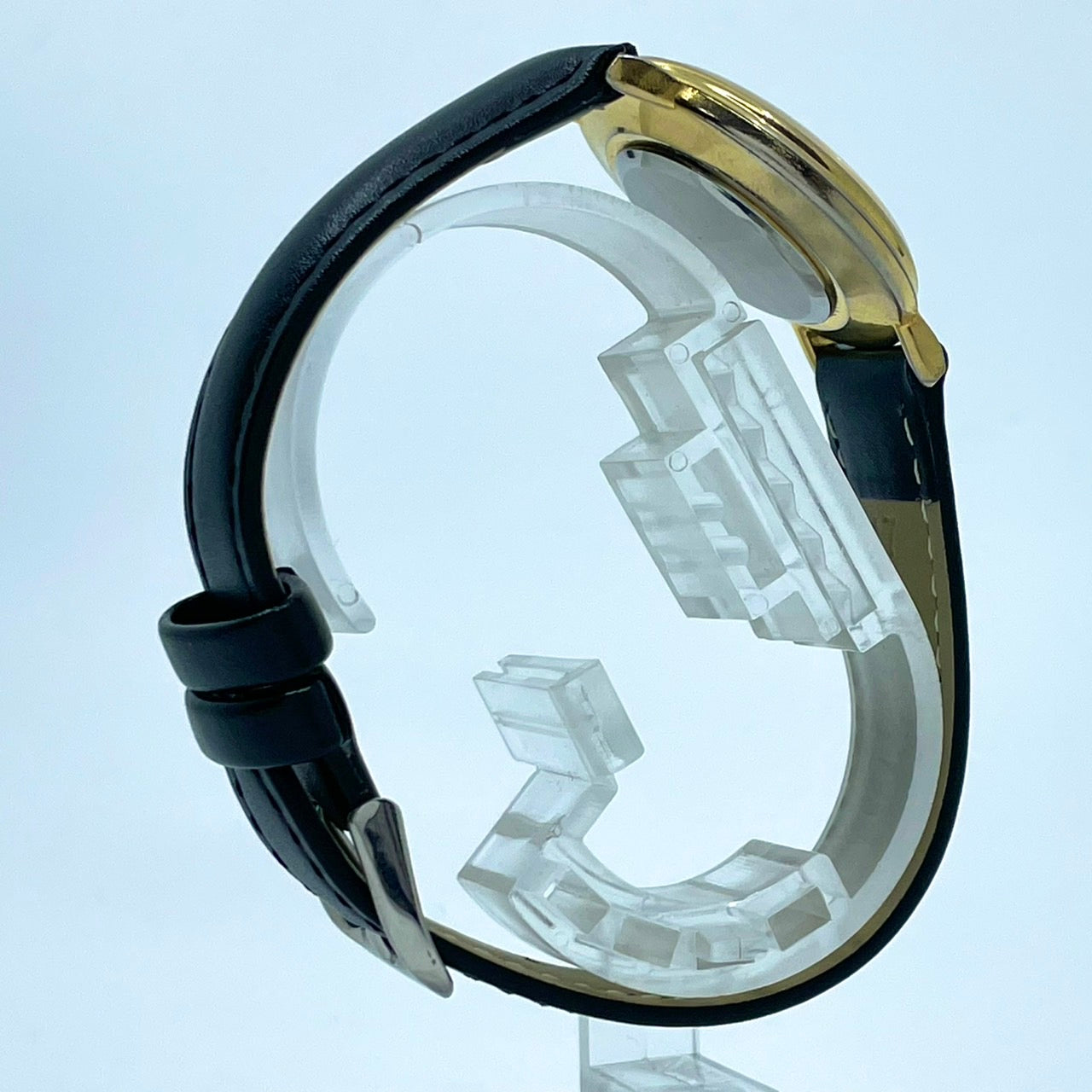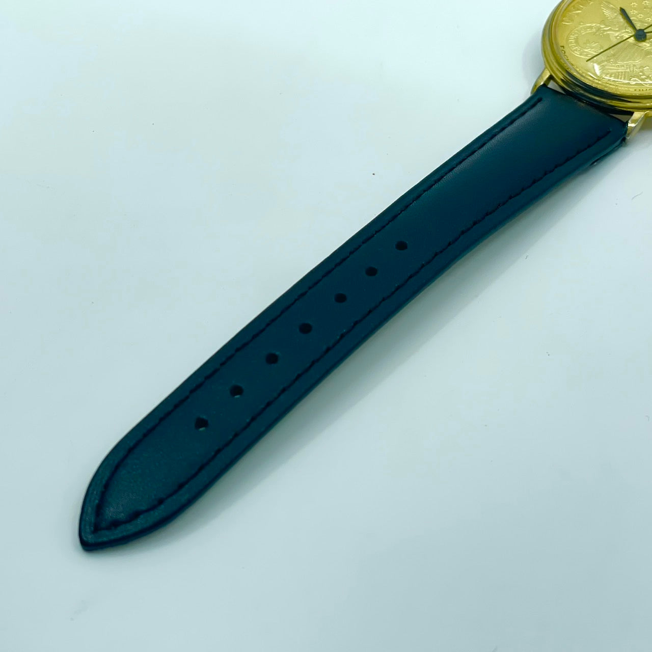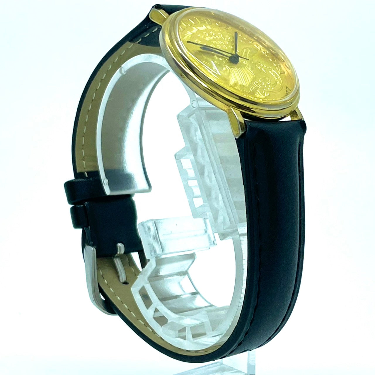 腕時計 メンズ クオーツ コインウォッチ ゴールド文字盤 ブラックレザーベルト アナログ ラウンド アメリカンイーグルデザイン ビンテージ風 ファッションウォッチ 電池交換済 新品ベルト(社外品) クリーニング済 G2