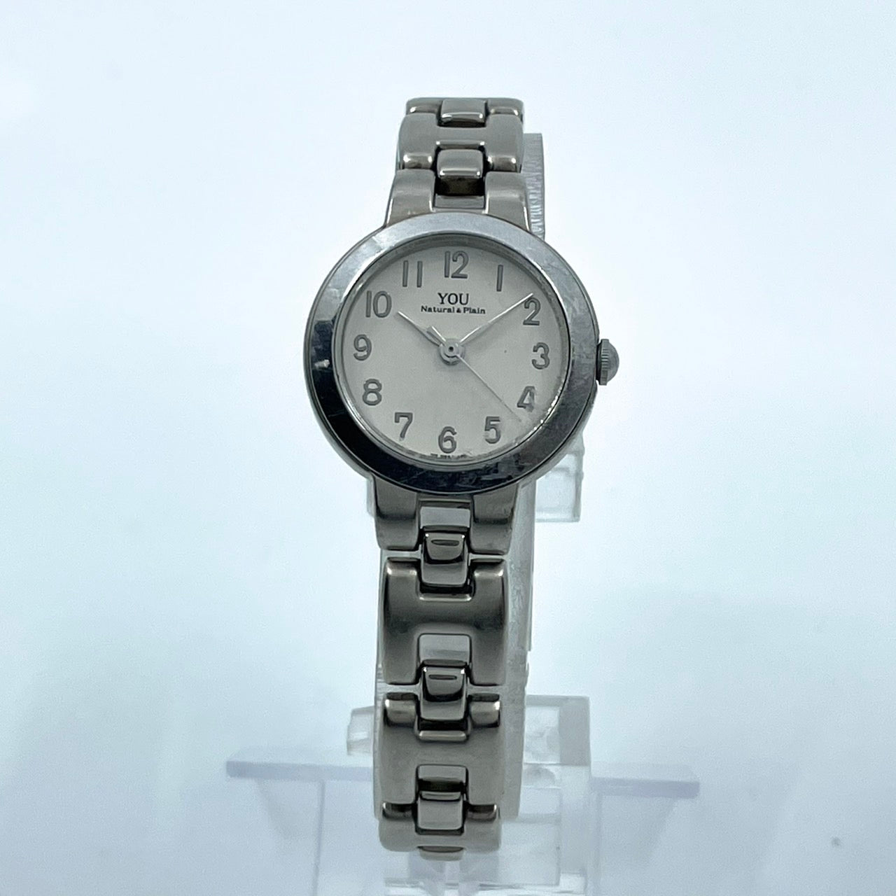 【電池交換済/美品】オリエント YOU Natural&Plain 腕時計 UB3J-00 レディース クオーツ アナログ シルバー アイボリー文字盤 シンプル ナチュラルデザイン ラウンド ビジネス オフィス 高視認性 人気モデル クリーニング済み G2