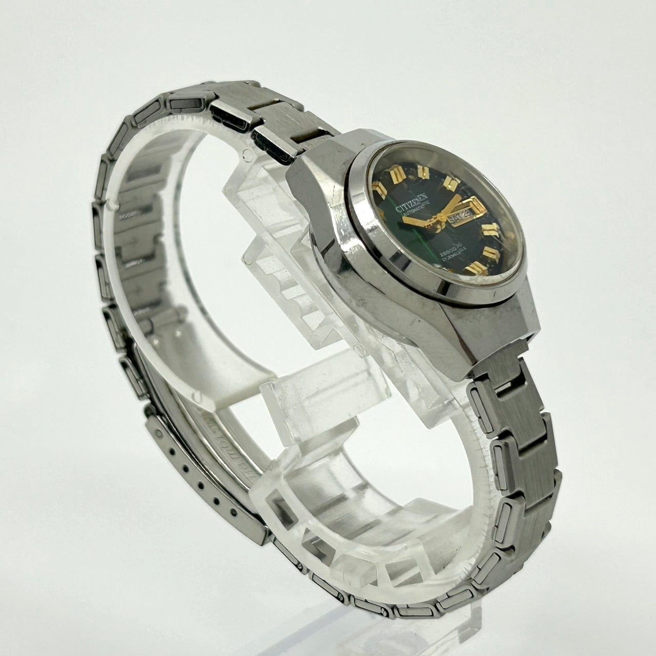 【稼働品】希少 citizen シチズン オートマチック 腕時計 レディース 4-661125 Y 自動巻き 21石 デイデイト グリーン文字盤 ビンテージ クラシック レトロ アナログ ドレスウォッチ シルバー カットガラス G5