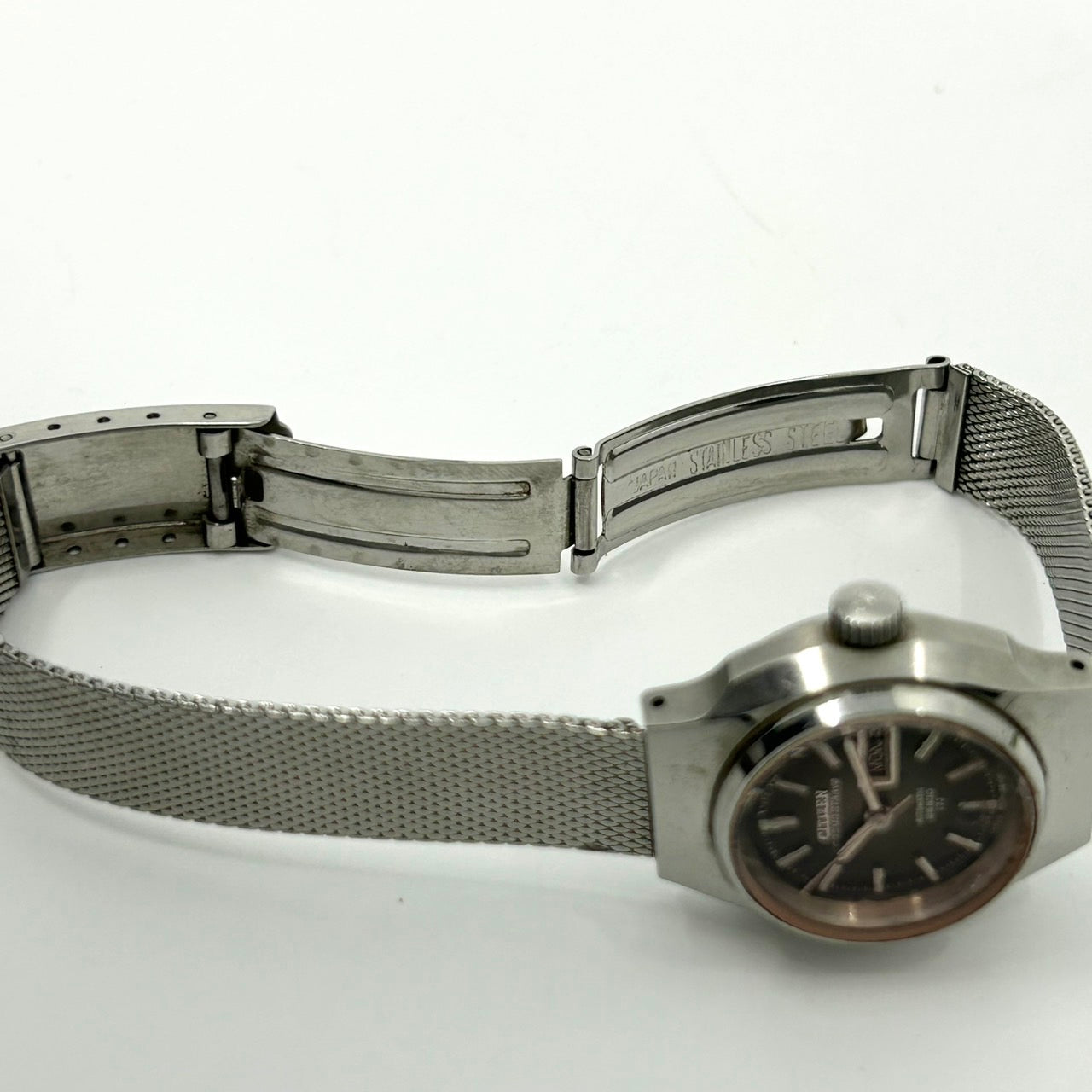 AB 風防:小傷 文字盤:良好 針:良好 リューズ:良好 ケース:極小傷 裏盤:極小傷 ブレス:極小傷 小傷がございますが、ヴィンテージの風合いとしてお楽しみいただけるお品物です。 |
