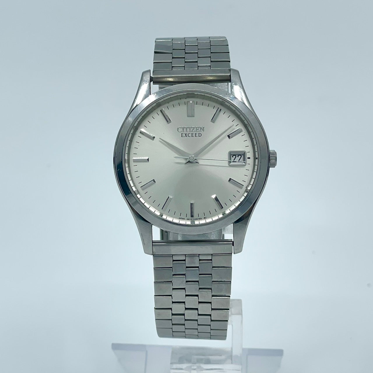 【電池交換済/美品】シチズン エクシード citizen 腕時計 A670-H20487 メンズ クオーツ デイト シルバー文字盤 アナログ 高級 ドレスウォッチ ビジネス オフィス エレガント 高精度 シンプルデザイン 耐磁 人気モデル クリーニング済み G2
