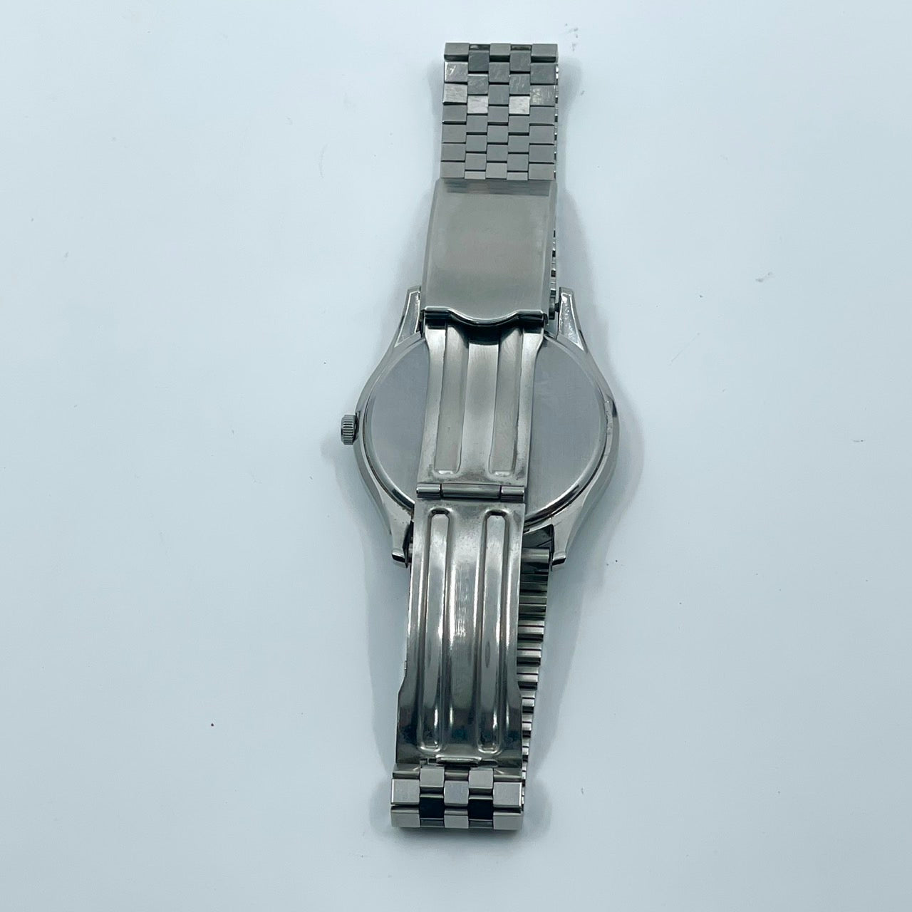 | 商品説明 | 【電池交換済/美品】本商品はCITIZEN EXCEED(シチズン エクシード)のメンズ腕時計です。 シチズンの高級ライン「エクシード」ならではの、シンプルながらも洗練されたデザイン。高精度なクオーツムーブメントを搭載し、ビジネスシーンに最適な一本です。 特徴 ブランド:CITIZEN (シチズン) モデル:EXCEED (エクシード) 型番:A670-H20487 ムーブメント:クオーツ(電池式) ディスプレイタイプ:アナログ表示 ケース形状:ラウンド ケースカラー:シルバー 文字盤カラー:シルバー 素材:ステンレススチール 仕様:デイト表示 / カレンダー / 耐磁性能(ANTIMAG 4800) / ドレスウォッチ 状態:電池交換済み(2025年7月) / クリーニング済み 無駄を削ぎ落としたミニマルなデザインは、どんなスーツスタイルにもマッチし、知的な印象を与えます。 クリーニング済みですので、すぐにお使いいただけます。 |