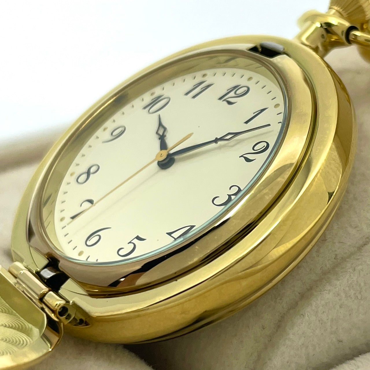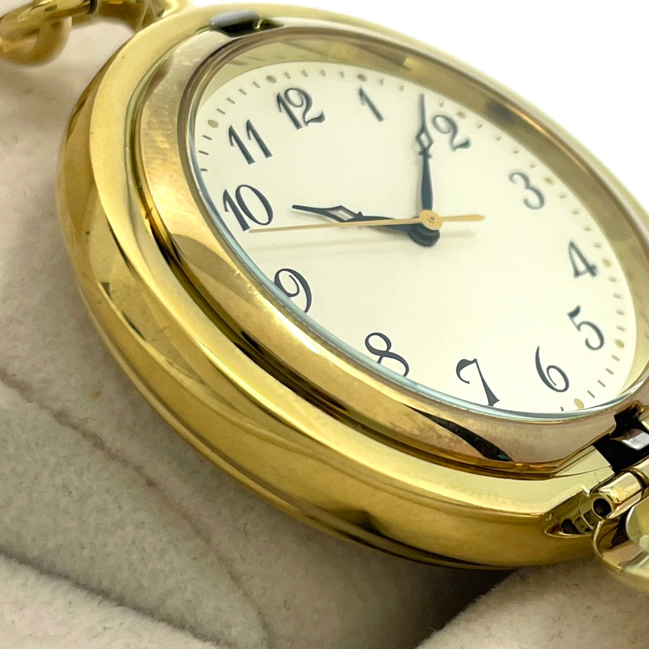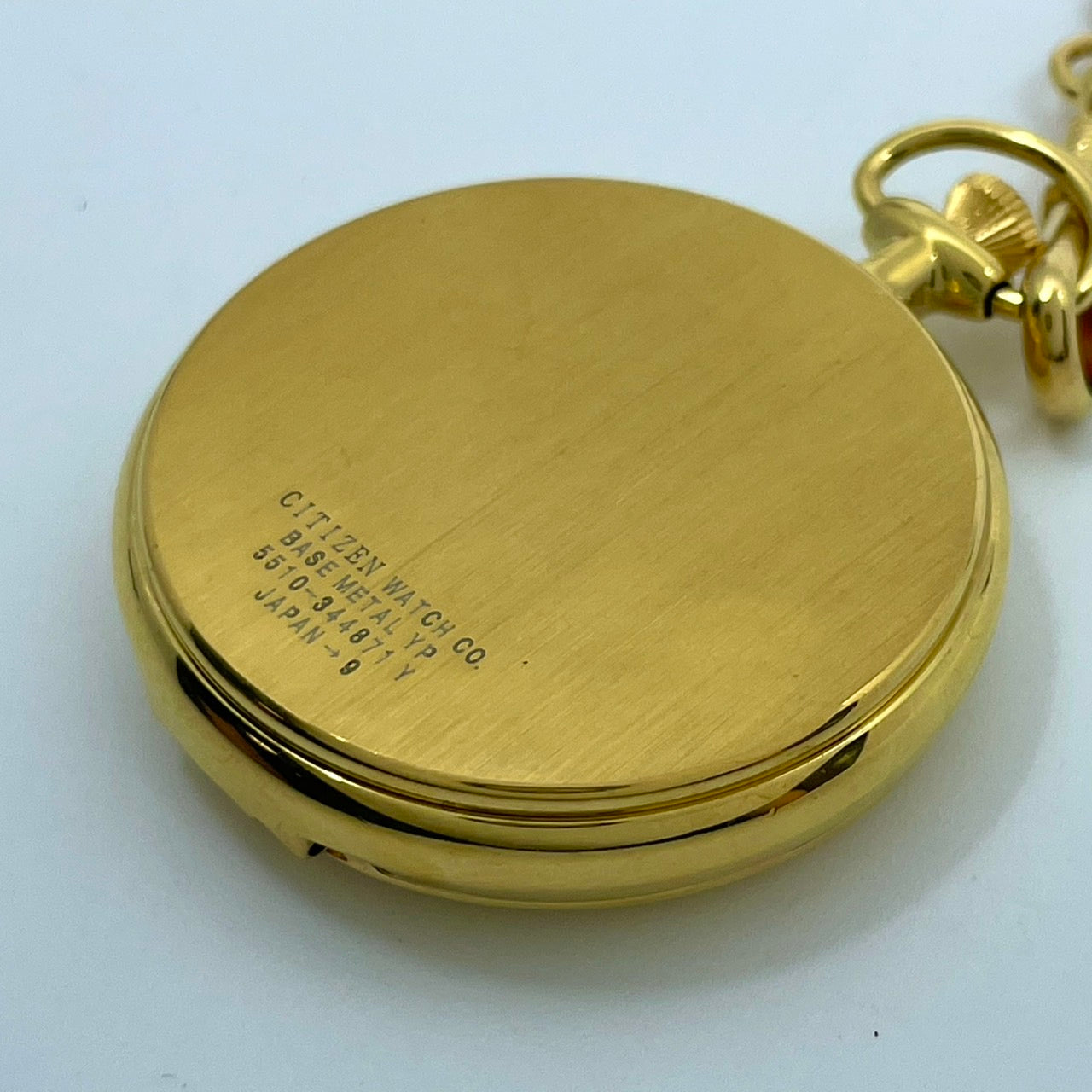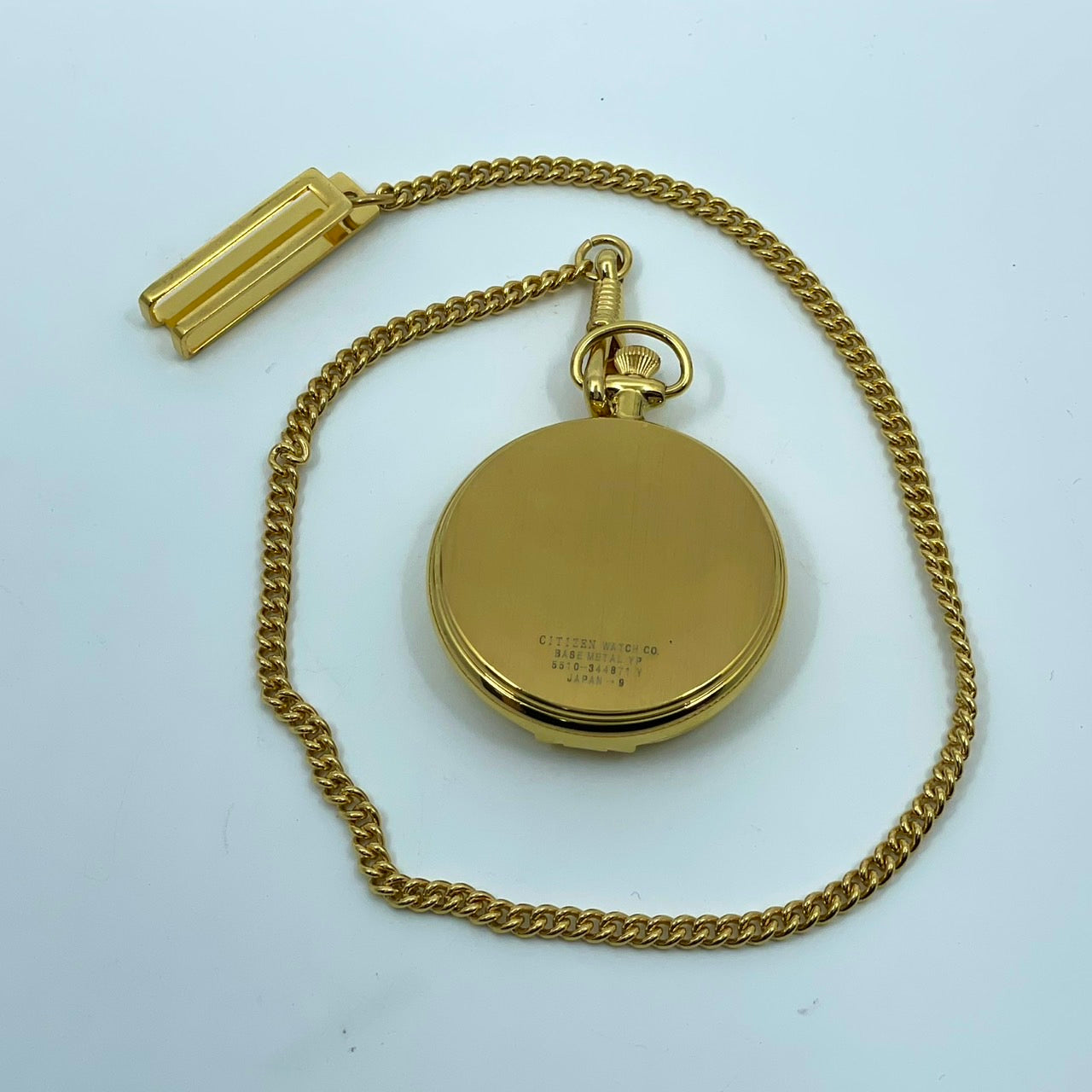 【電池交換済/美品】シチズン 懐中時計 5510-344871 クオーツ ゴールド アナログ アイボリー文字盤 アラビア数字 クラシック レトロ ビンテージ アンティーク ポケットウォッチ チェーン付き ファッション小物 コレクション クリーニング済み G2