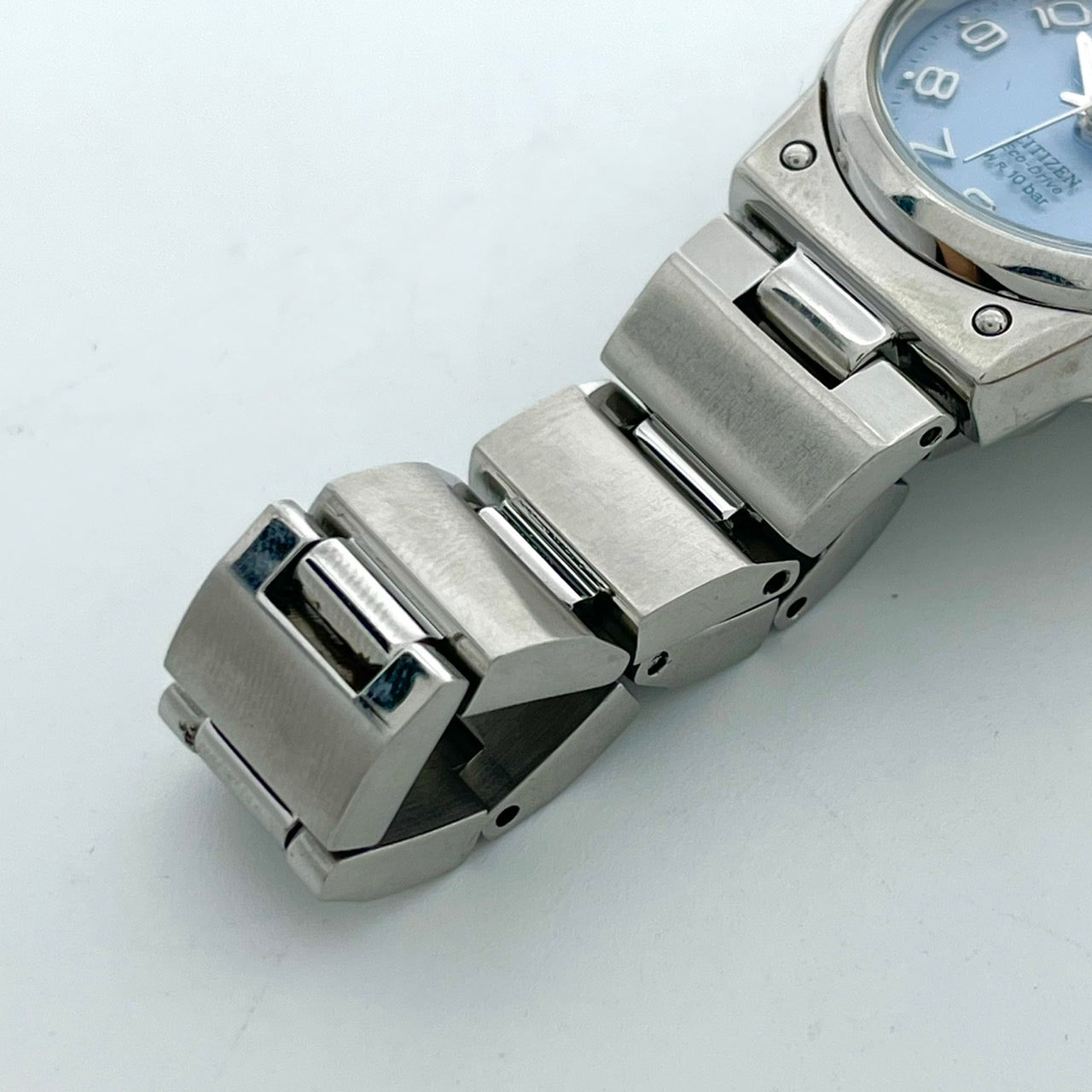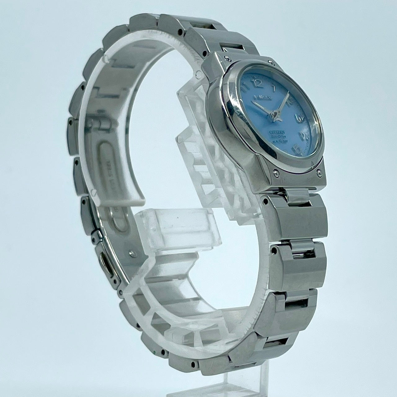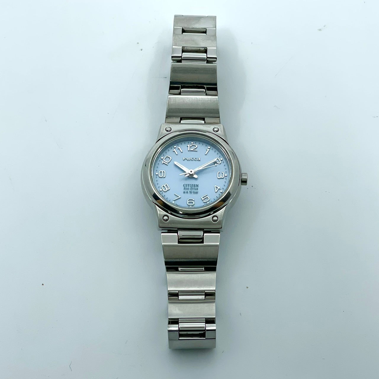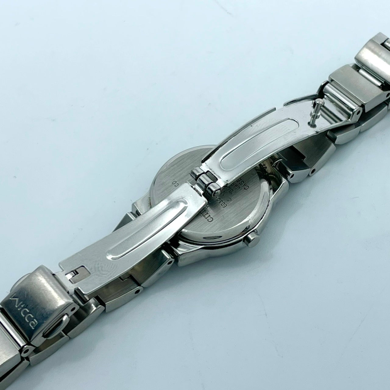 【稼働品】シチズン ウィッカ 腕時計 E030-S001935 エコドライブ レディース ソーラー ブルー文字盤 アナログ かわいい フェミニン カジュアル ビジネス オフィス 人気モデル 10気圧防水 シルバー 洗練デザイン クリーニング済み G4