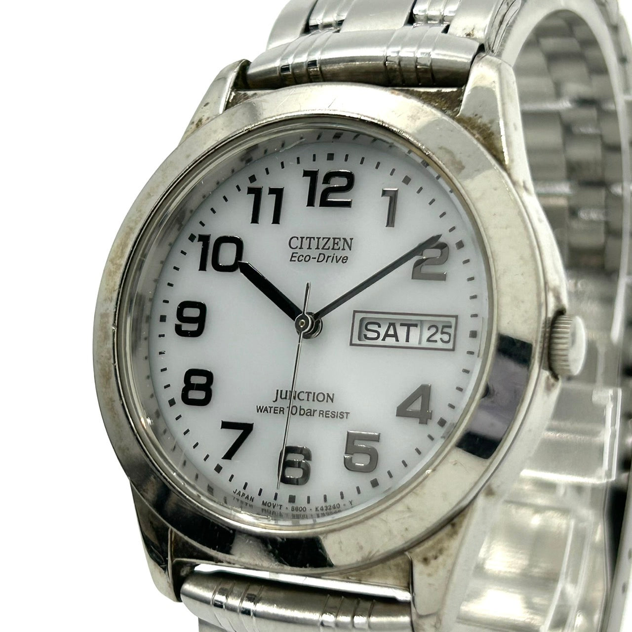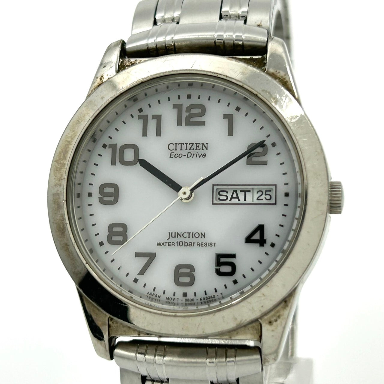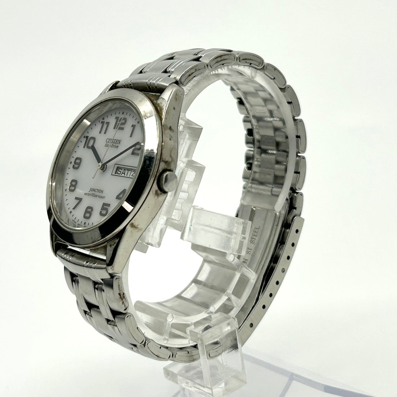 【稼働品】シチズン ジャンクション エコドライブ 腕時計 8800-K13561 CK ユニセックス ソーラー デイデイト アナログ 白文字盤 シルバー ステンレス シンプル クラシック カジュアル ビジネス 通勤 通学 ユニセックス クリーニング済 G2