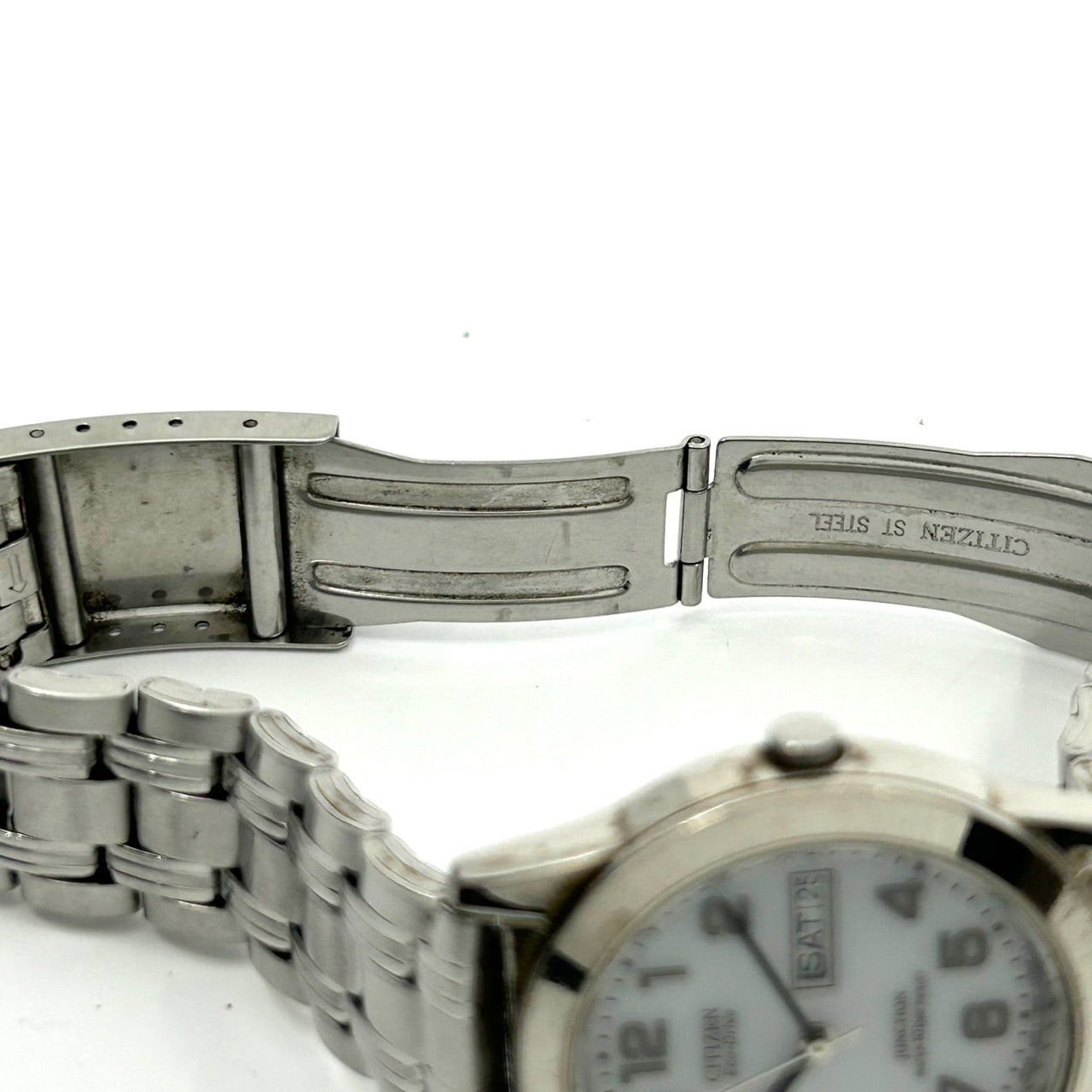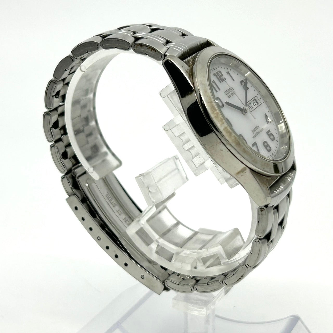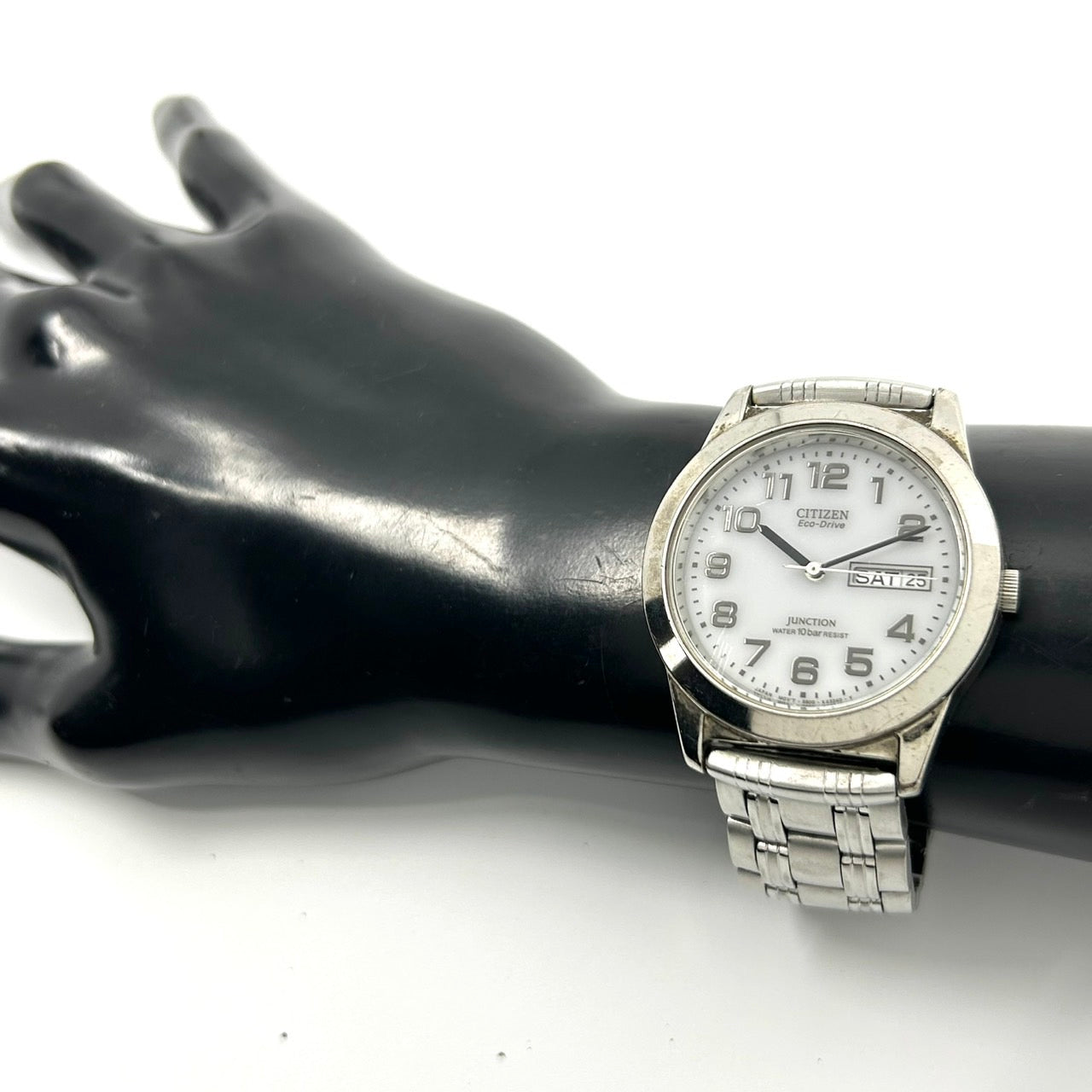 【稼働品】シチズン ジャンクション エコドライブ 腕時計 8800-K13561 CK ユニセックス ソーラー デイデイト アナログ 白文字盤 シルバー ステンレス シンプル クラシック カジュアル ビジネス 通勤 通学 ユニセックス クリーニング済 G2