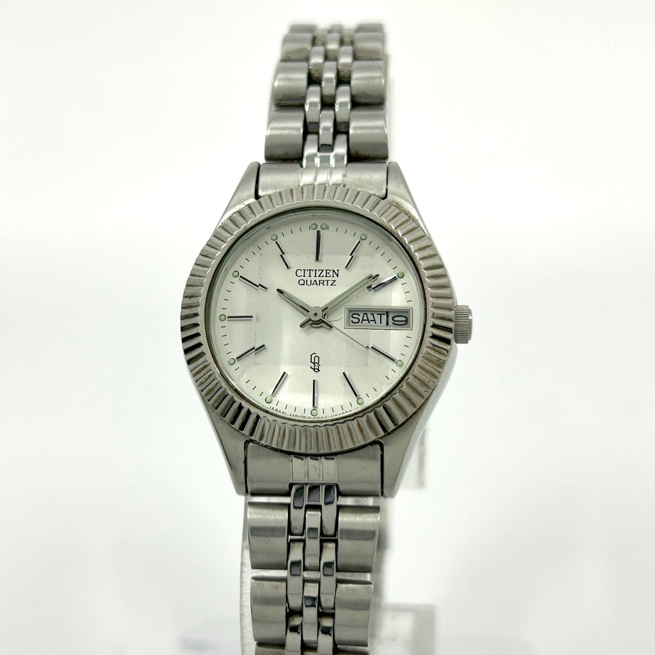 【電池交換済】 citizen シチズン クオーツ 腕時計 カットガラス 6000-K09338 デイデイト メンズ レディース ユニセックス アナログ シルバー ステンレス ラウンド クラシック ビンテージ エレガント ドレスウォッチ ビジネス G5