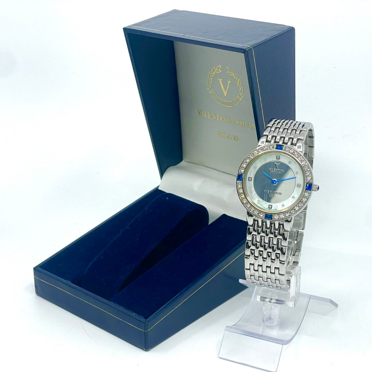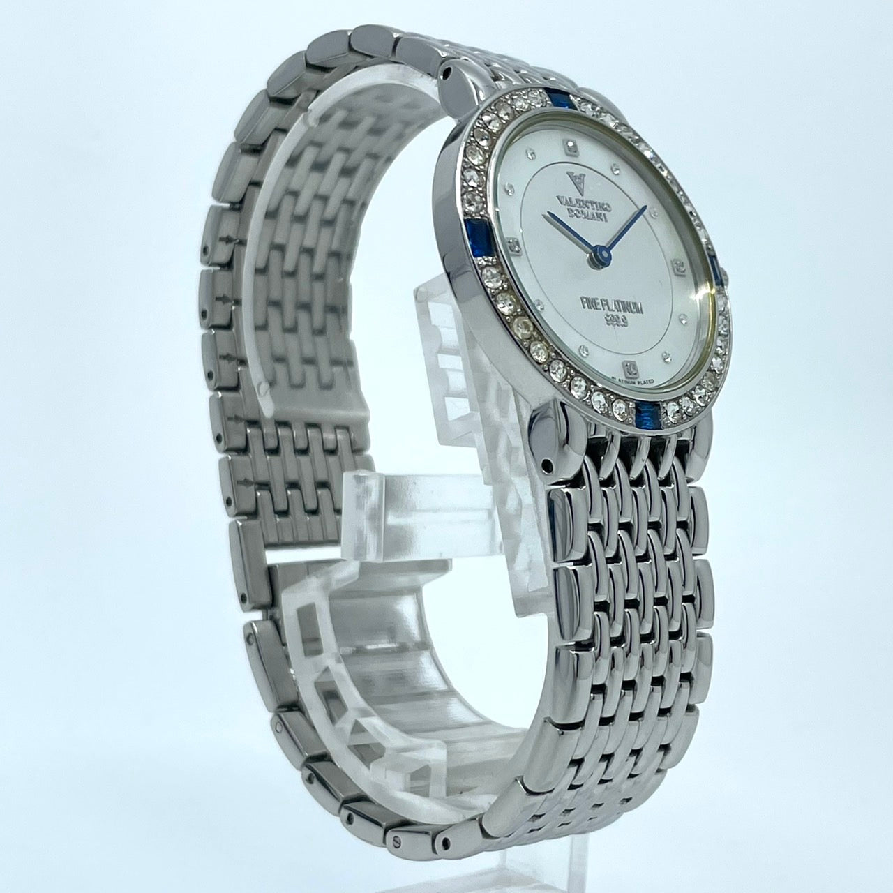 【電池交換済】ヴァレンティノ ドマーニ 腕時計 VD-2038 レディース クオーツ FINE PLATINUM 999.9 プラチナメッキ ラインストーンベゼル サファイア シェル文字盤 ドレスウォッチ エレガント ラグジュアリー クリーニング済み G