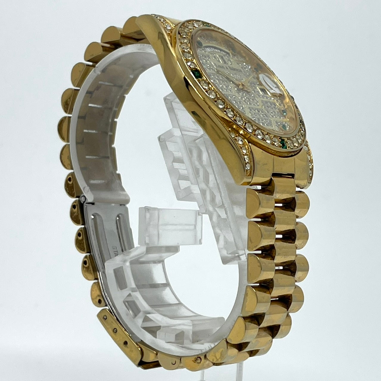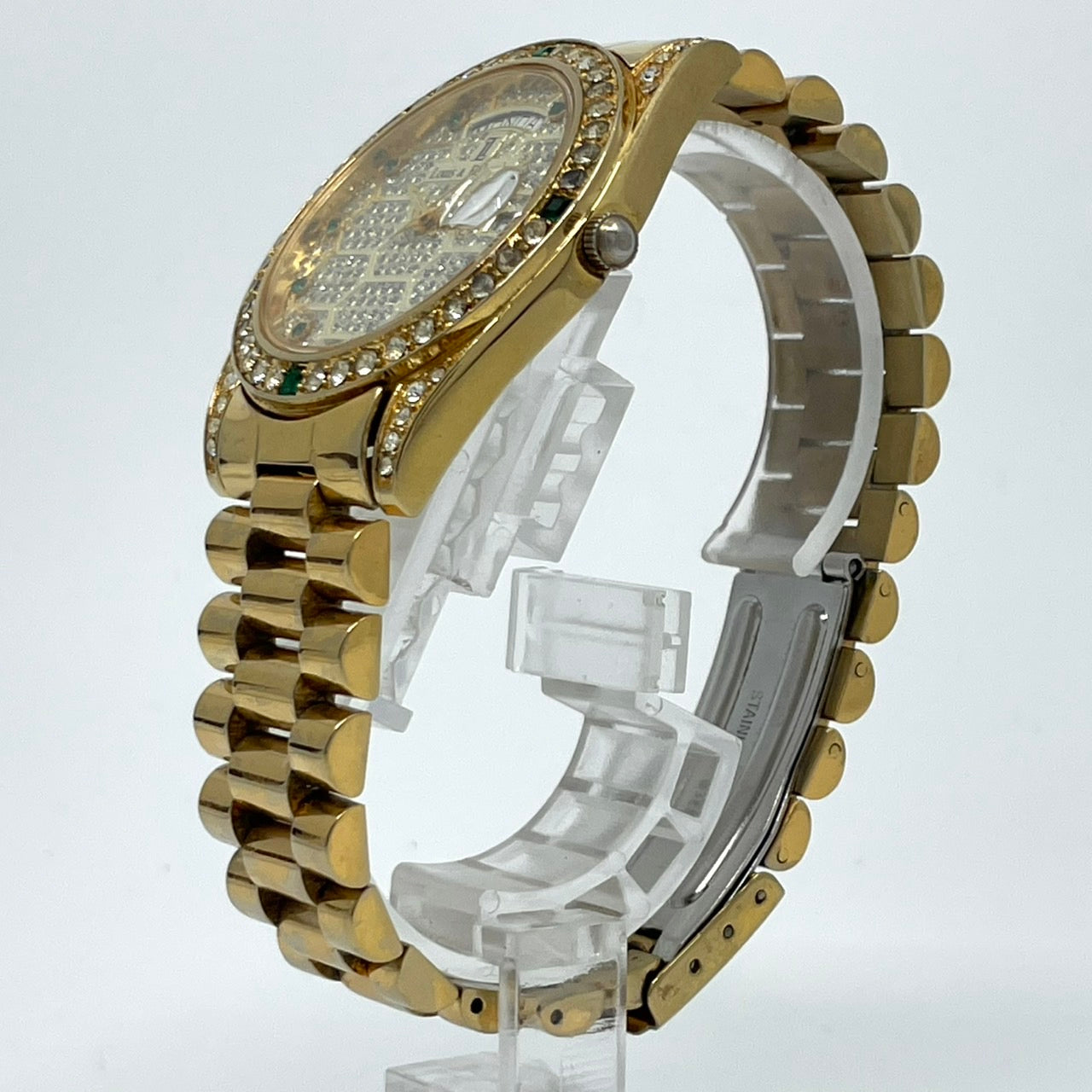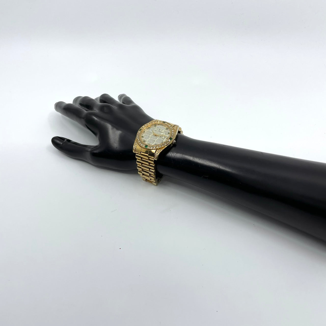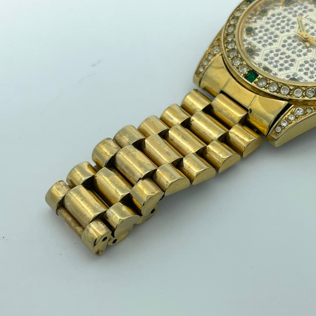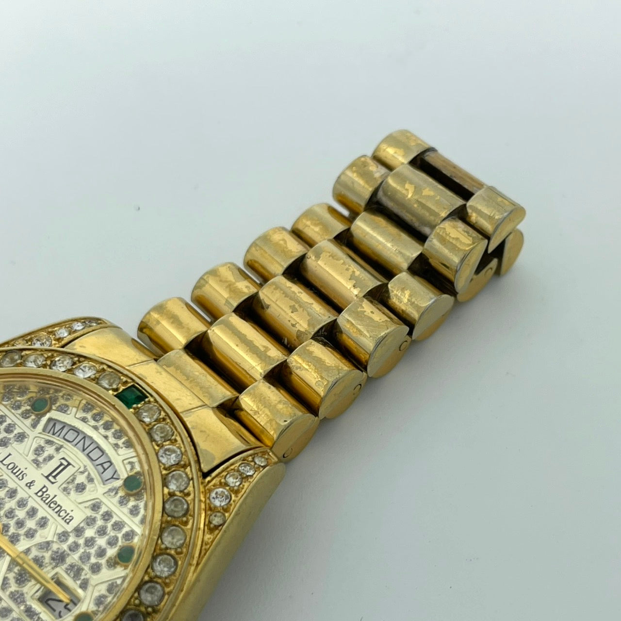 【電池交換済】Louis & Balencia ルイスアンドバレンシア レディース腕時計 クオーツ ゴールド ラインストーン エメラルド ハニカム文字盤 デイデイト カレンダー アナログ ゴージャス エレガント クラシックデザイン クリーニング済 G4