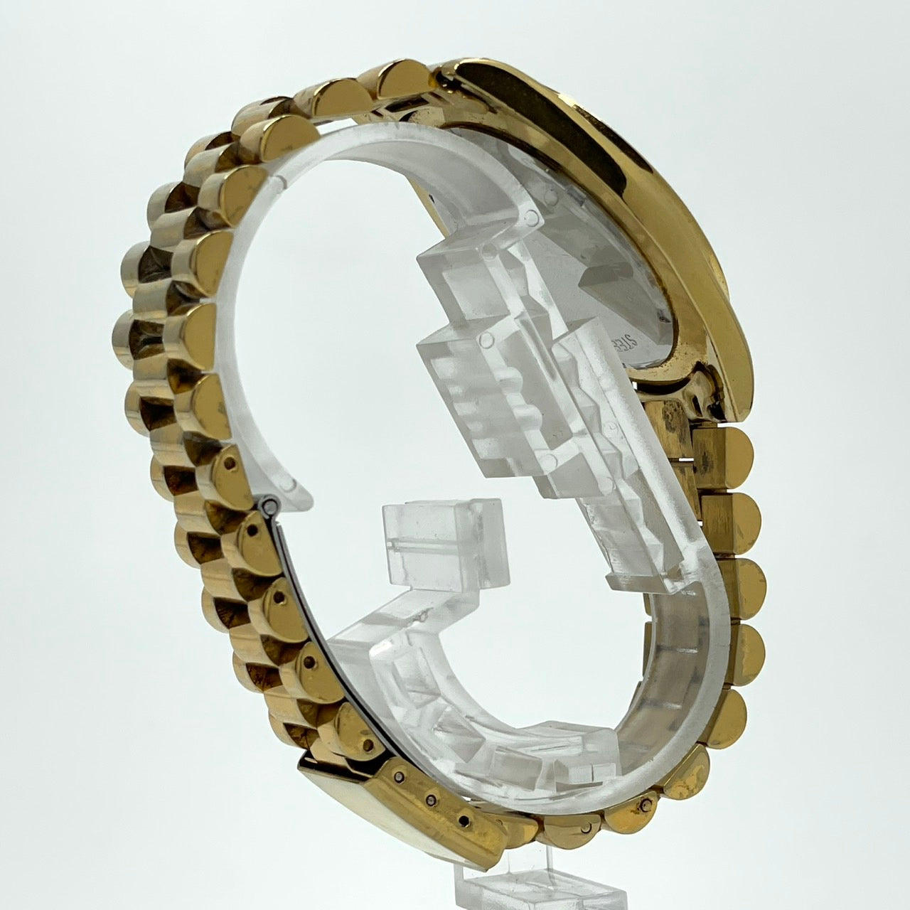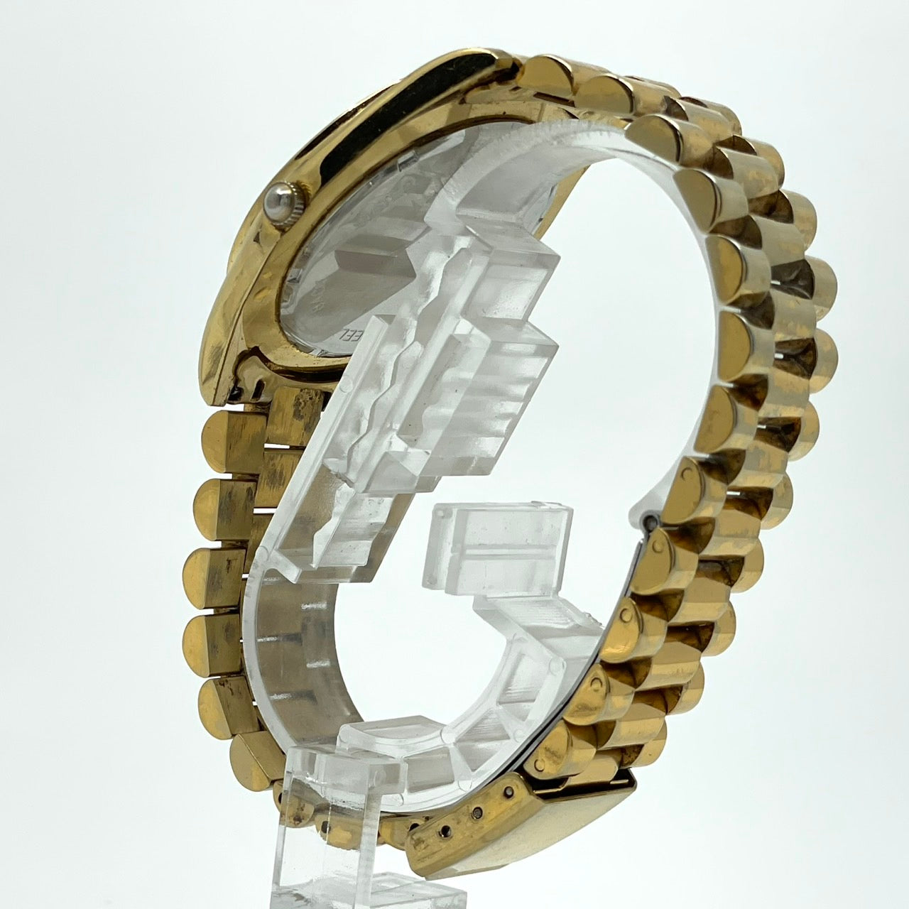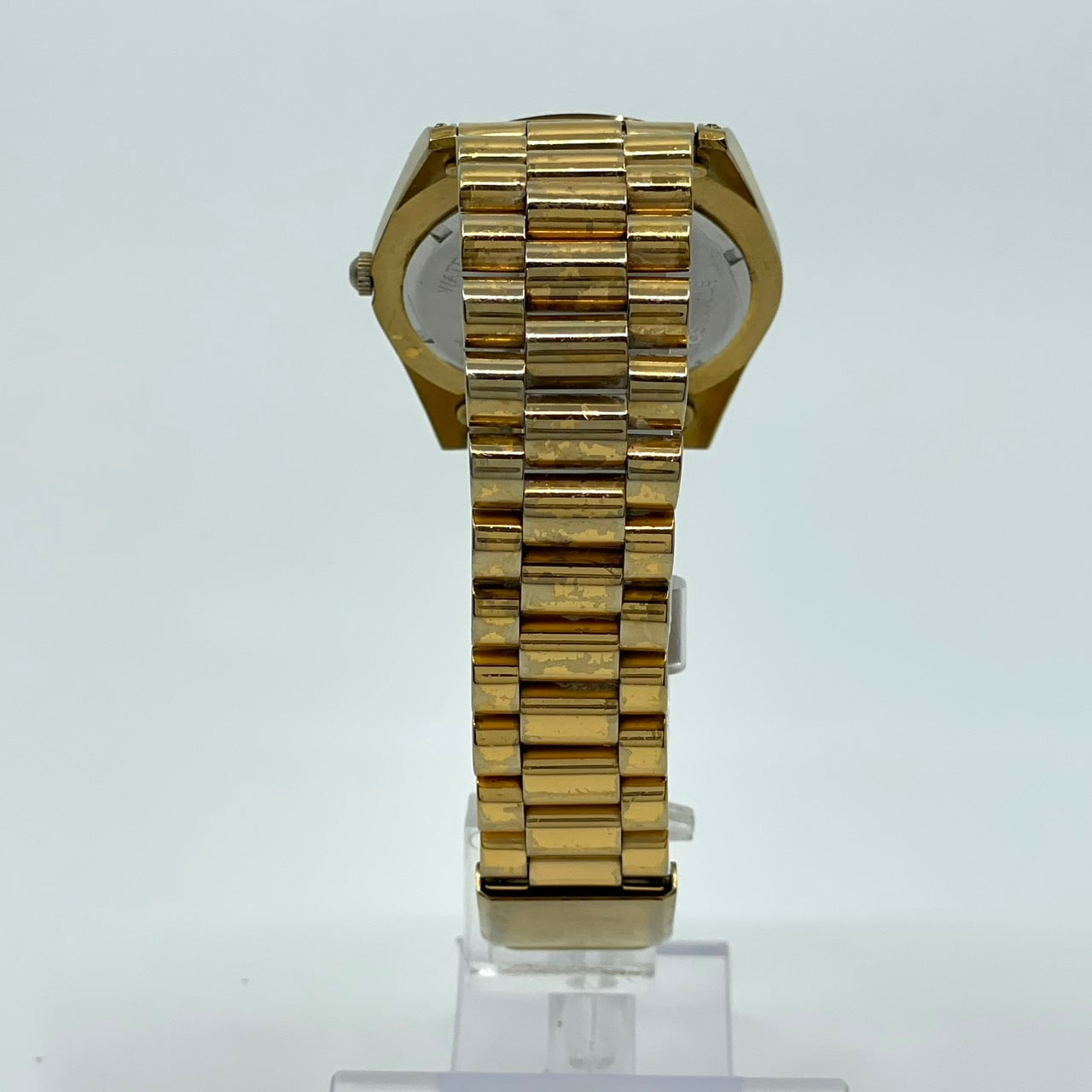 | 商品説明 | 【電池交換済】本商品はLouis & Balencia(ルイスアンドバレンシア)のレディース腕時計です。 ゴールドカラーのボディに、ベゼルと文字盤に散りばめられたラインストーンが輝くゴージャスなデザイン。 アクセントのエメラルドカラーのストーンと、ユニークなハニカム模様の文字盤が目を引くエレガントな一本です。 特徴 ブランド:Louis & Balencia(ルイスアンドバレンシア) ムーブメント:クオーツ(電池式) ディスプレイタイプ:アナログ表示 カレンダータイプ:デイデイト (日付・曜日表示) ケース形状:ラウンド ケースカラー:ゴールド 文字盤カラー:シルバー / ゴールド 素材:ステンレススティール 仕様:ラインストーン装飾 / エメラルドカラーストーン / ハニカム文字盤 状態:電池交換済み / クリーニング済み / 稼働品 デイデイト機能も搭載しており、デザイン性だけでなく実用性も兼ね備えています。 パーティーシーンから普段のコーディネートのアクセントまで、幅広く活躍するドレスウォッチです。 |