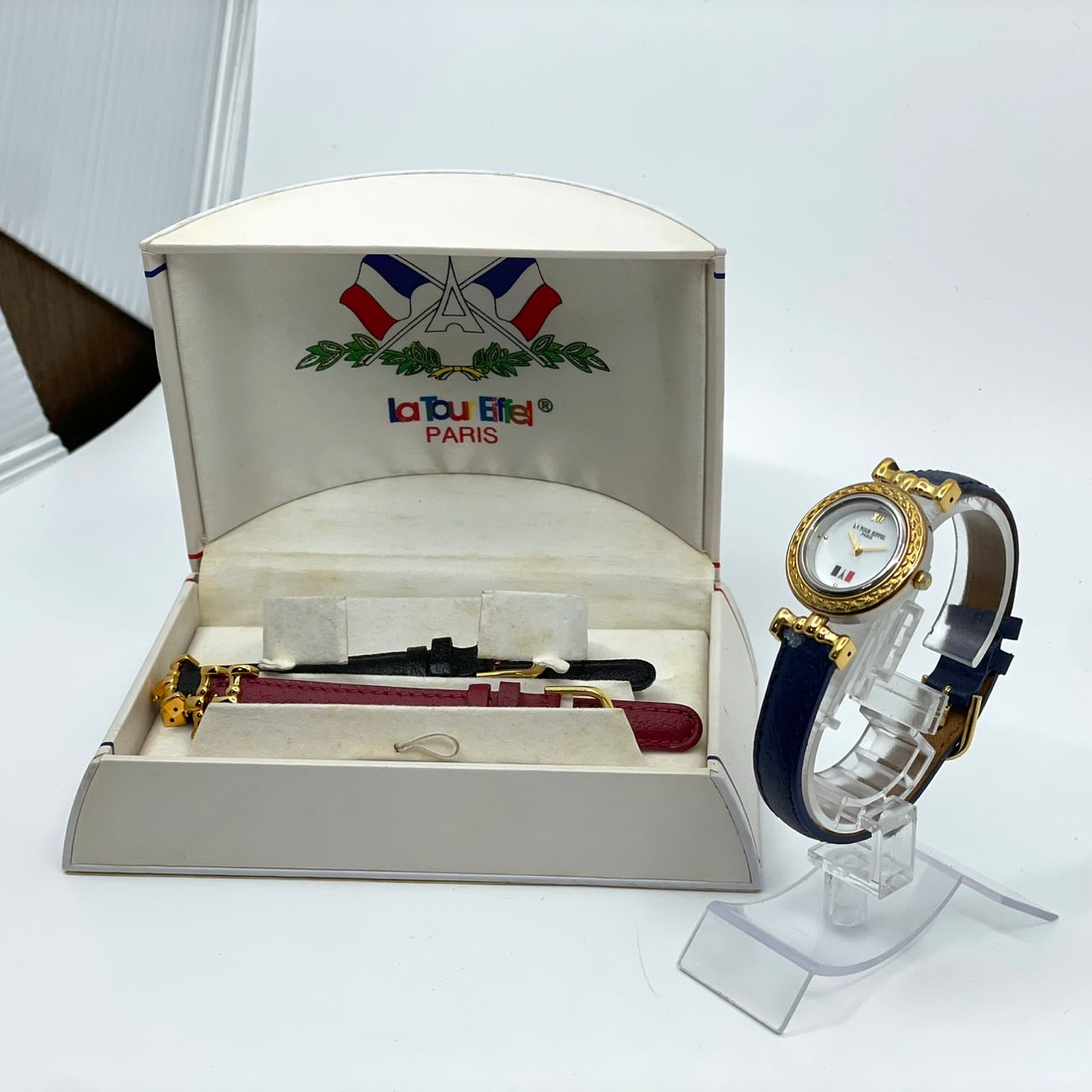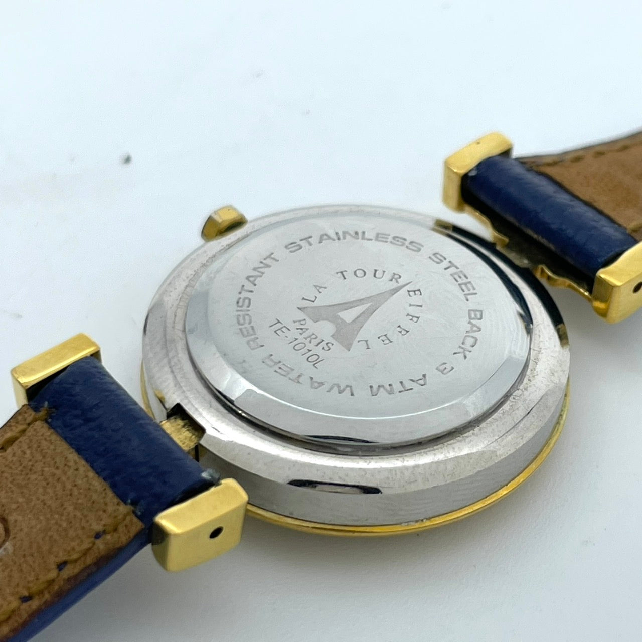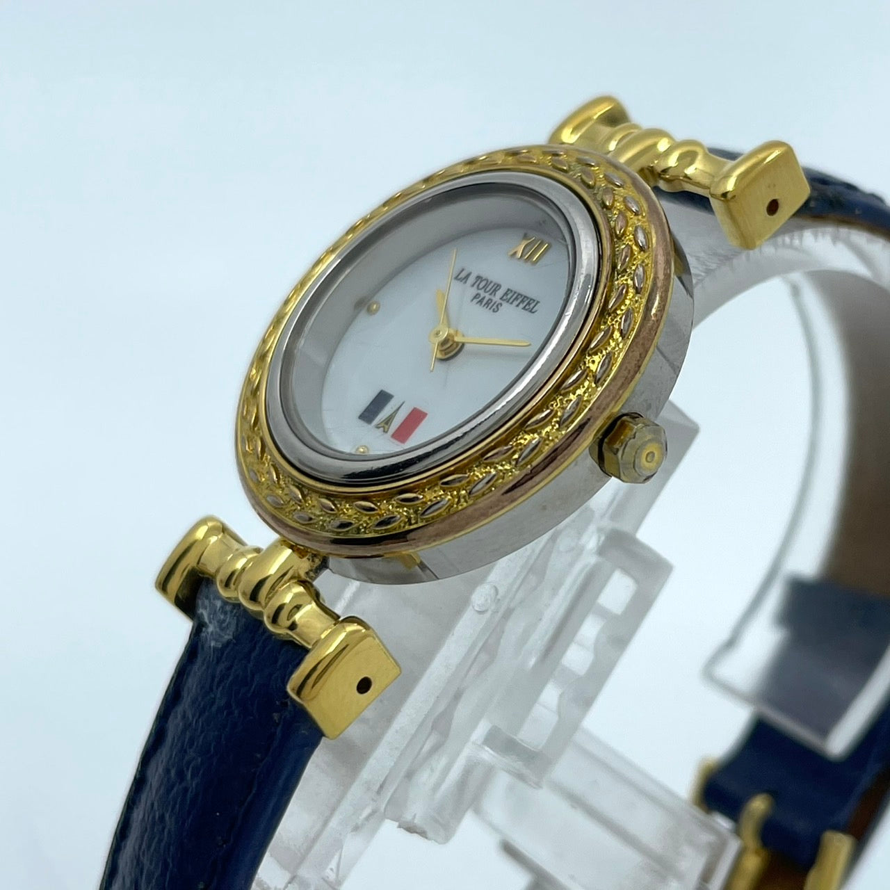 【電池交換済/稼働品】LA TOUR EIFFEL ラ・トゥール・エッフェル レディース 腕時計 ゴールド ブルーレザーベルト トリコロール ラウンド クオーツ アナログ エレガント クラシック ビンテージ ドレスウォッチ パリ フランス クリーニング済 G