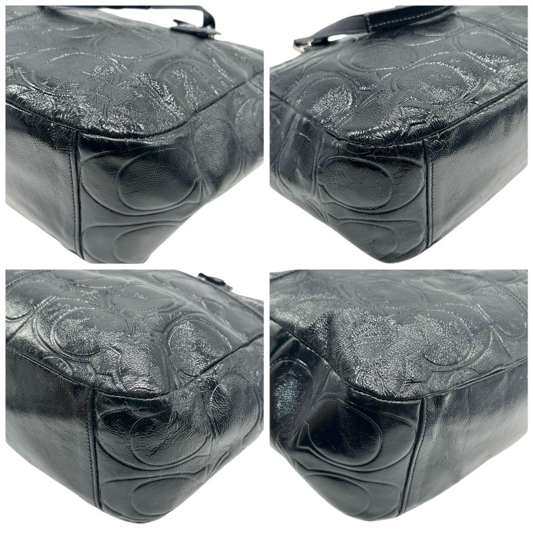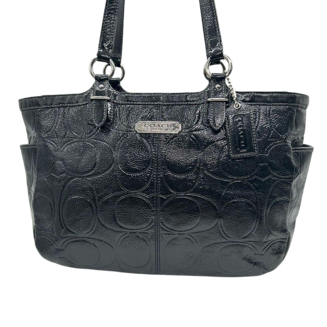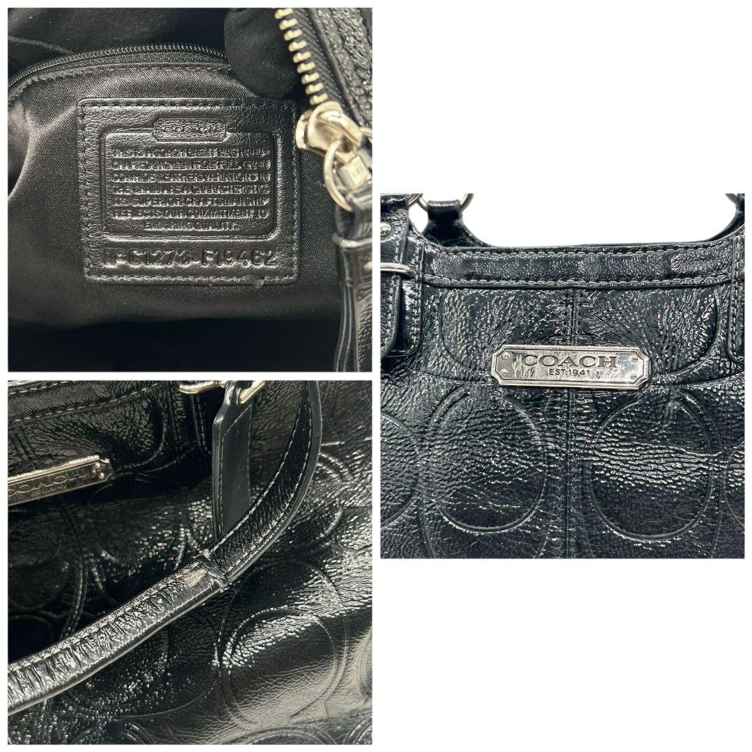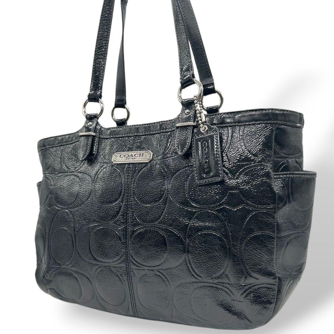 コーチ トートバッグ 黒 シグネチャー ワンショルダー エナメル レザー ハンドバッグ A4収納 肩掛け可 肩かけ可 ロゴプレート ロゴタグ チャーム付き シルバー金具 F19462 ブラック COACH s30