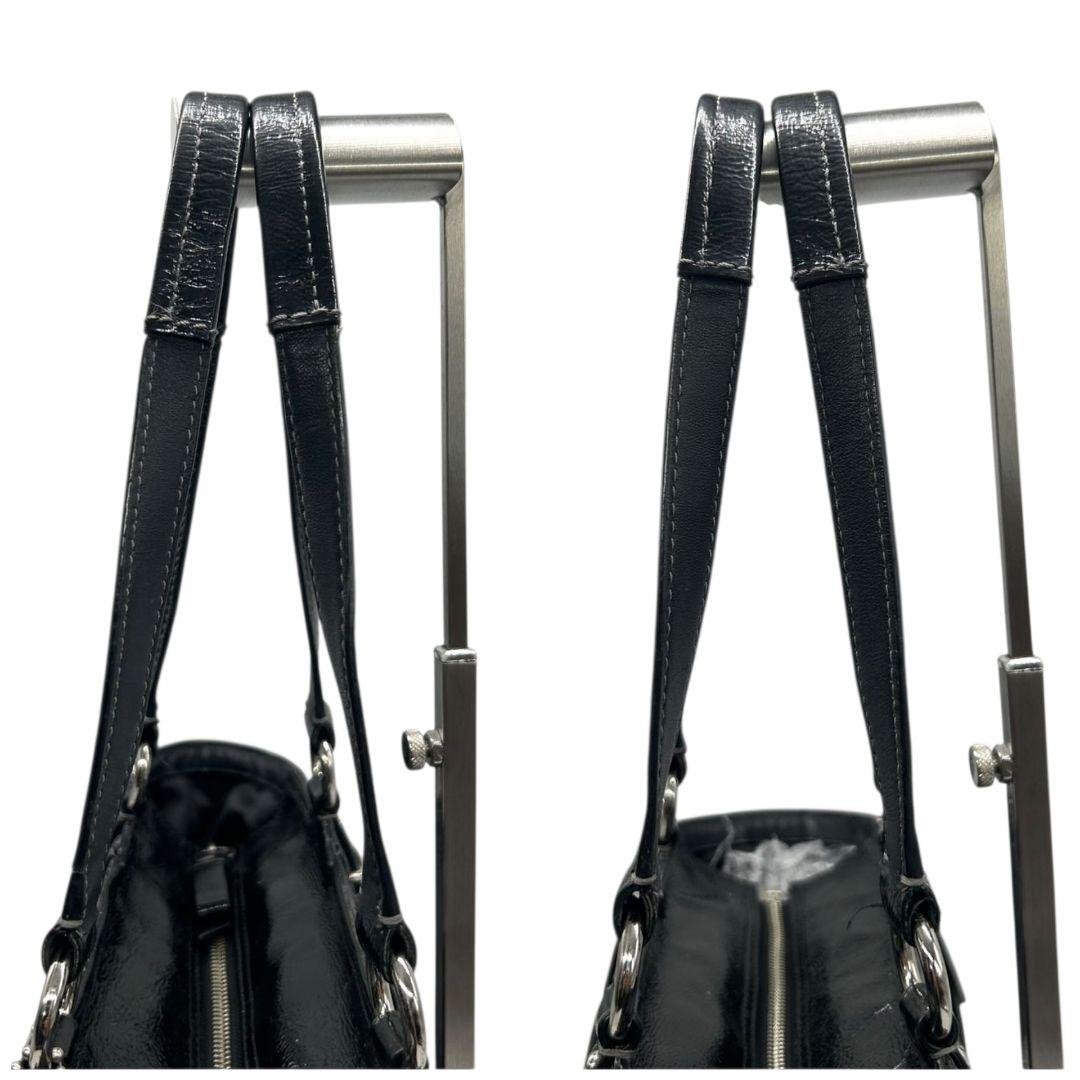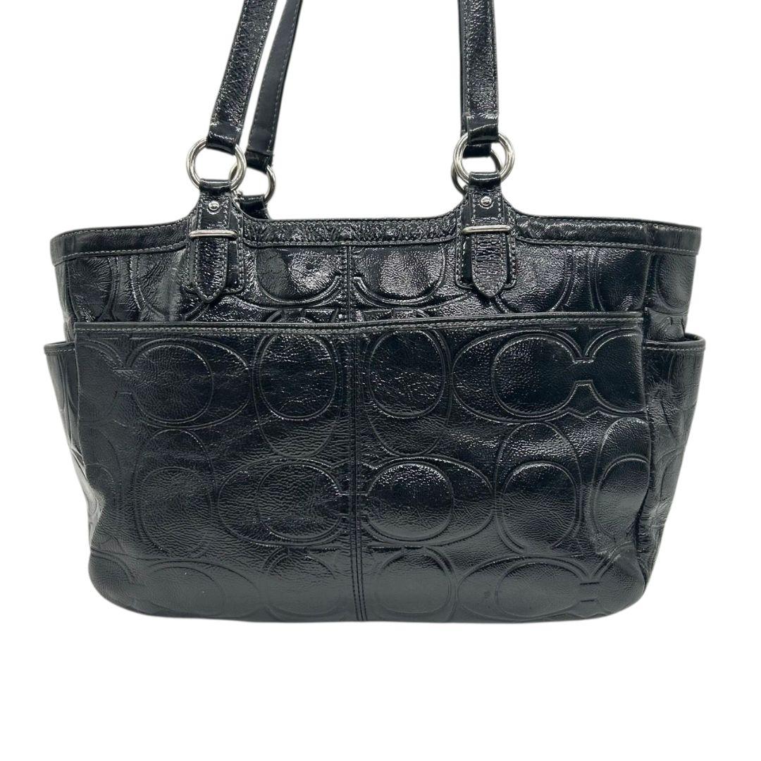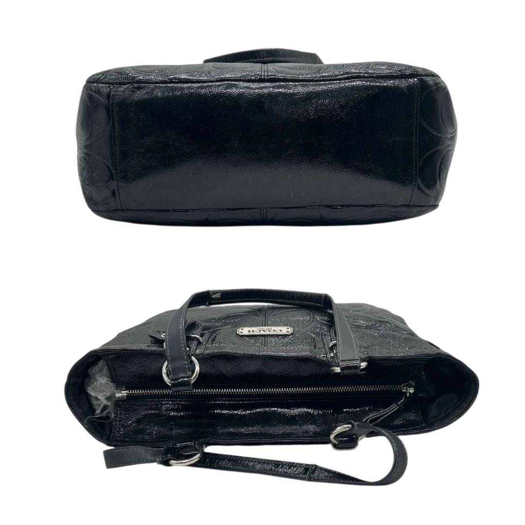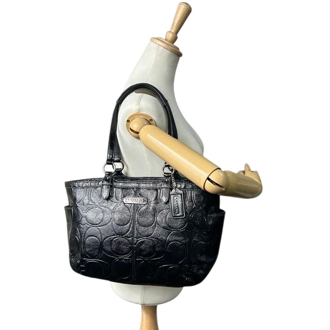 コーチ トートバッグ 黒 シグネチャー ワンショルダー エナメル レザー ハンドバッグ A4収納 肩掛け可 肩かけ可 ロゴプレート ロゴタグ チャーム付き シルバー金具 F19462 ブラック COACH s30