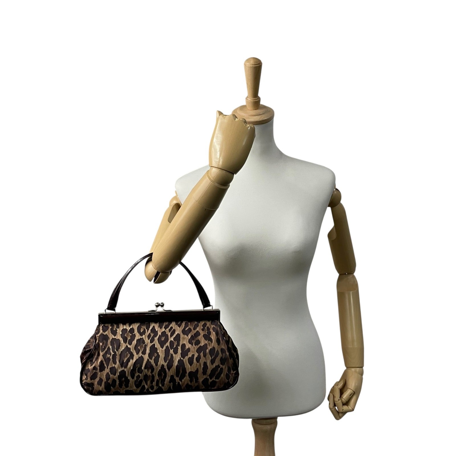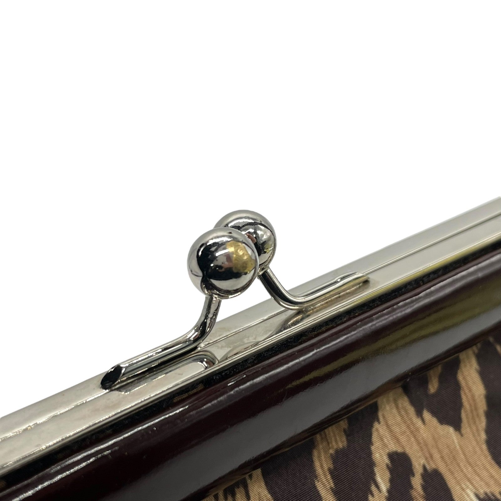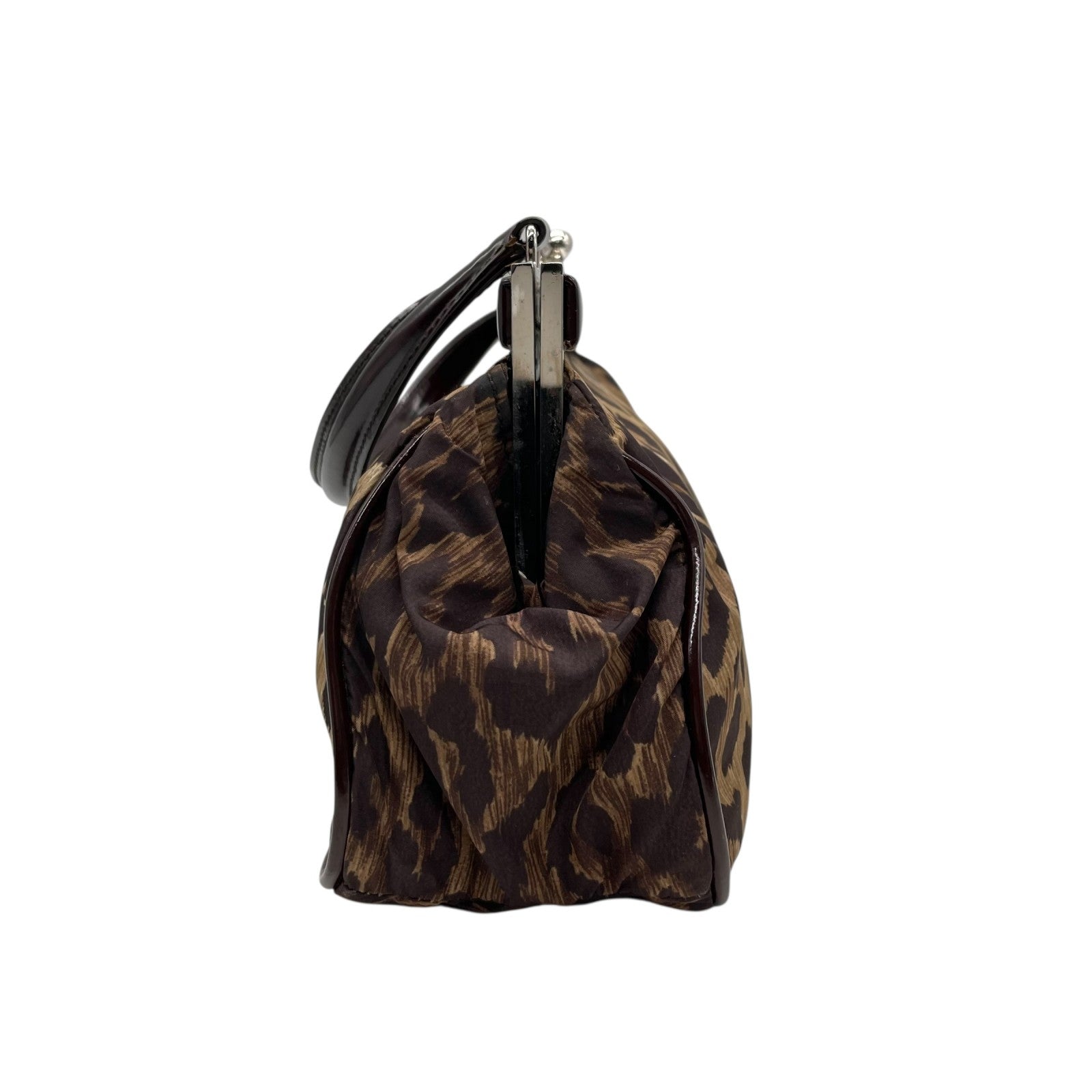 美品 DOLCE&GABBANA ドルチェ&ガッパーナ ハンドバッグ レオパード ヒョウ柄 茶 ブラウン ナイロン パテントレザー シルバー金具 がま口 レディース C3