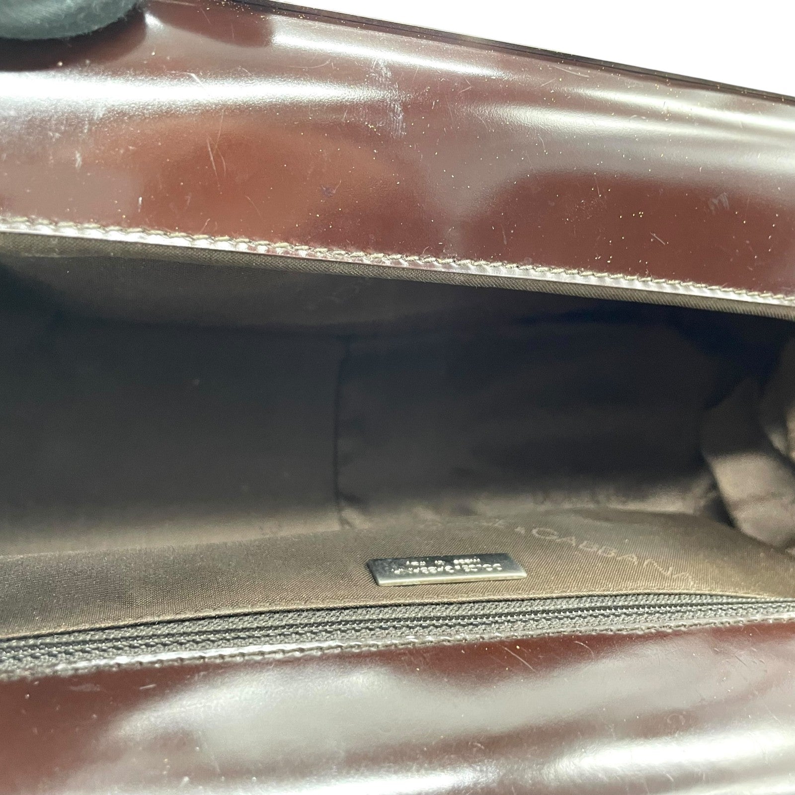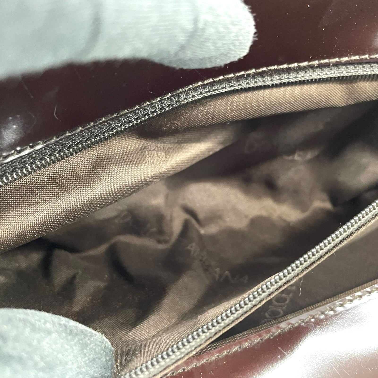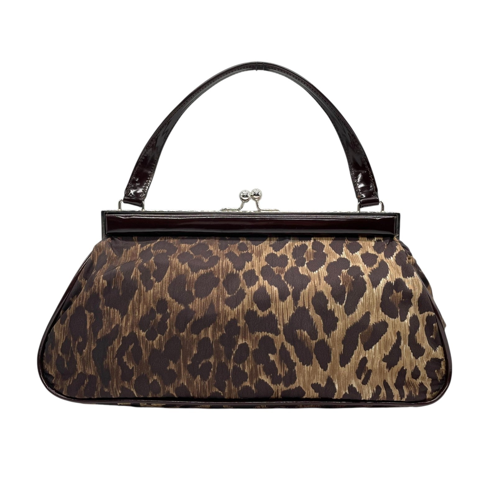 美品 DOLCE&GABBANA ドルチェ&ガッパーナ ハンドバッグ レオパード ヒョウ柄 茶 ブラウン ナイロン パテントレザー シルバー金具 がま口 レディース C3