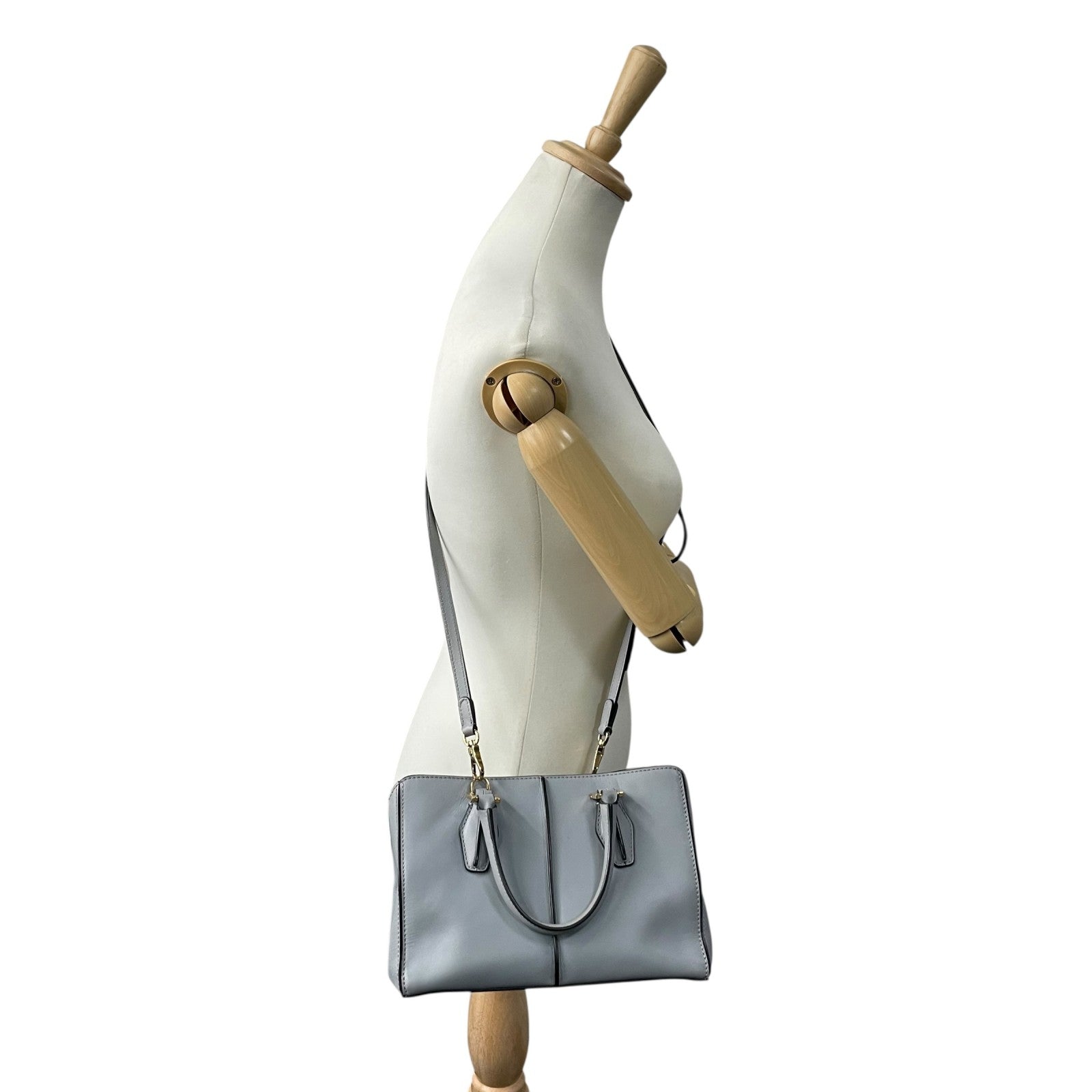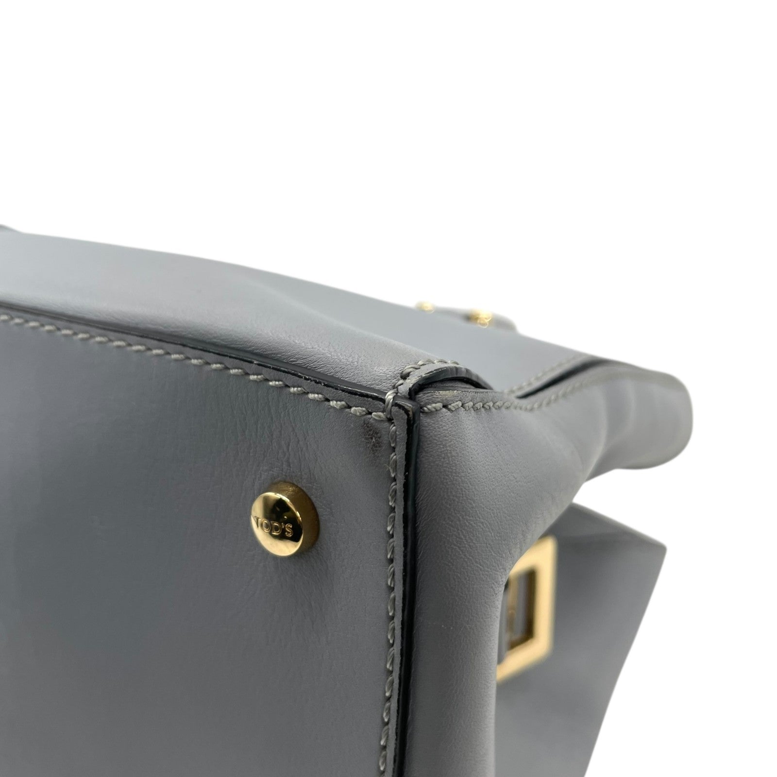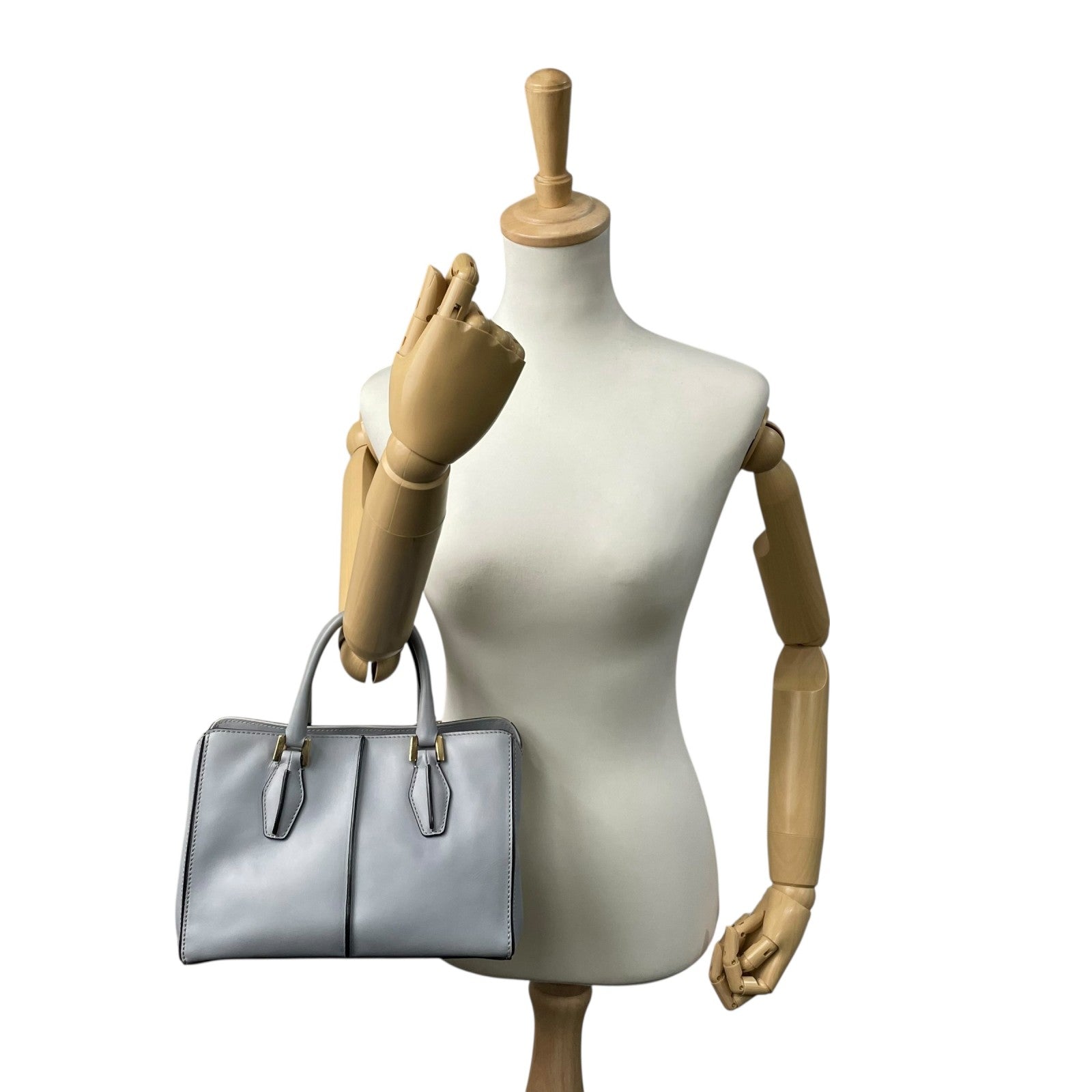 極美品 トッズ TOD'S Dキューブ スモール Dバッグ 2WAY ハンドバッグ ショルダーバッグ ミニボストン 肩掛け 斜め掛け グレーブルー 青 グレー 本革 レザー レディース A