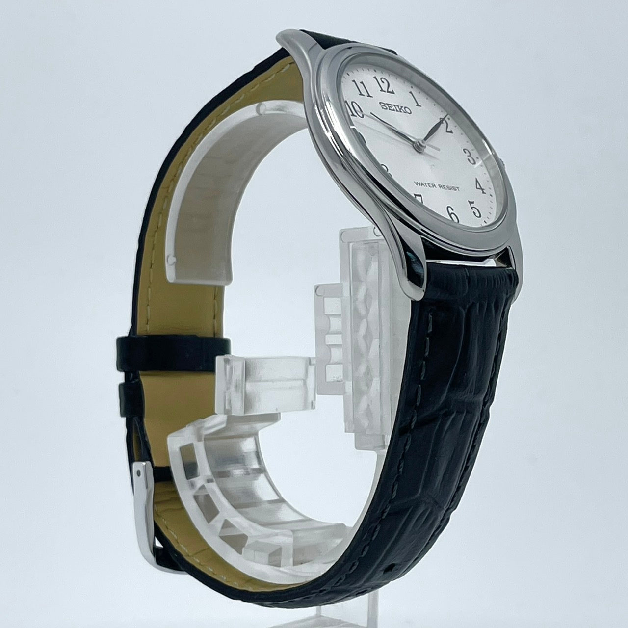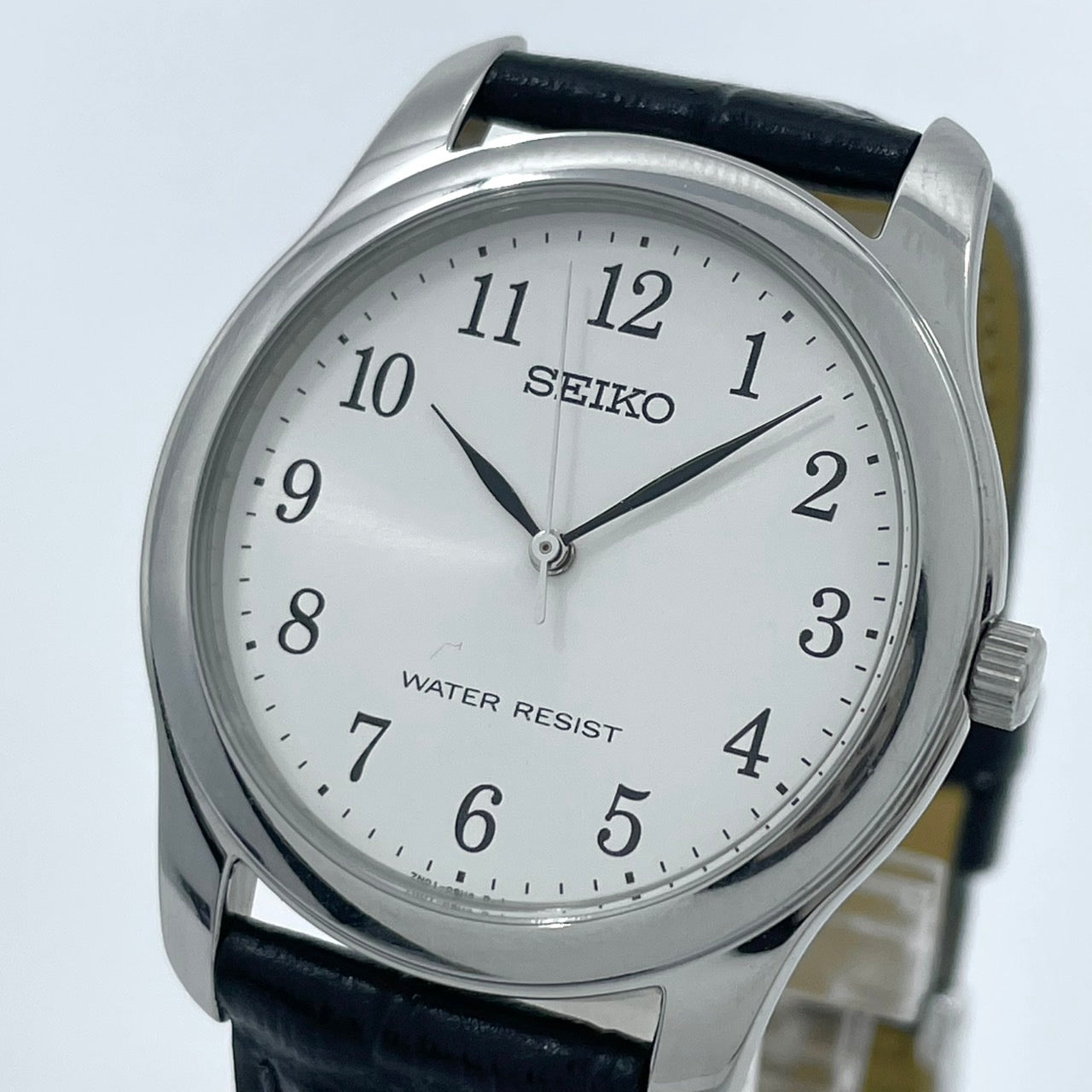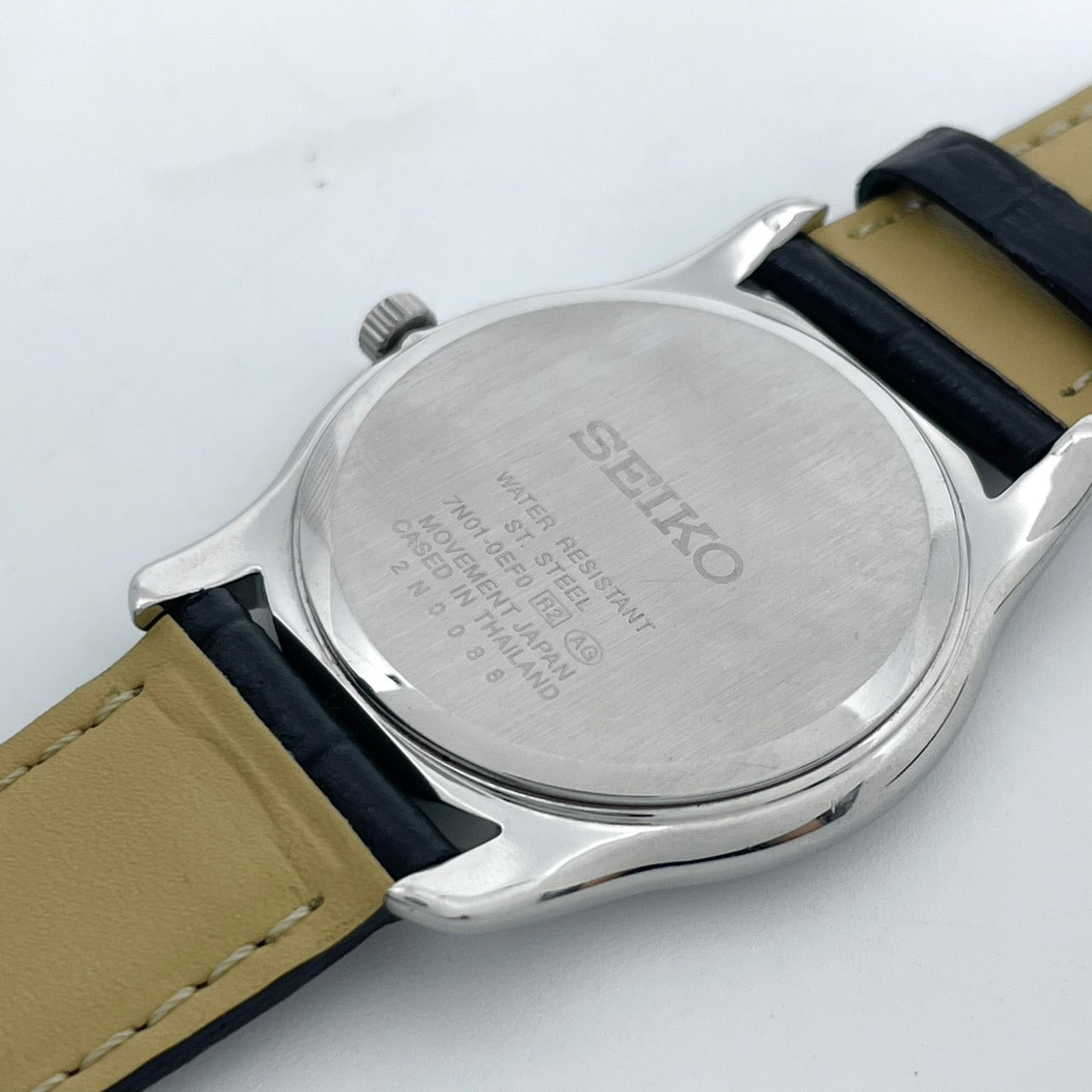 【電池交換済/新品ベルト(社外品)】美品 セイコー 腕時計 7N01-0EF0 メンズ クオーツ アナログ 白文字盤 黒レザー シンプルデザイン スタンダードモデル ビジネス カジュアル 薄型軽量 高視認性 オフィスに最適 クリーニング済 G5