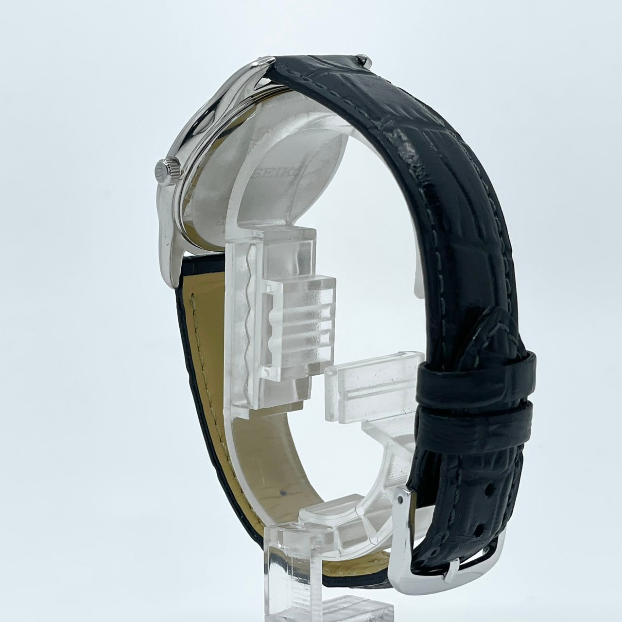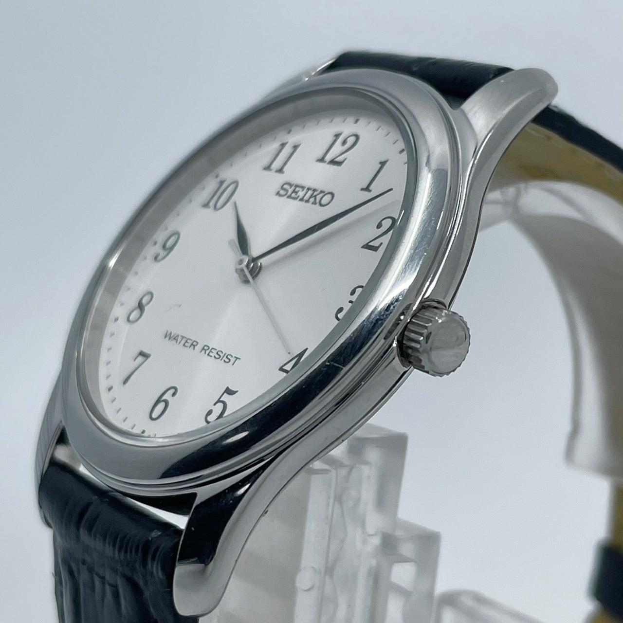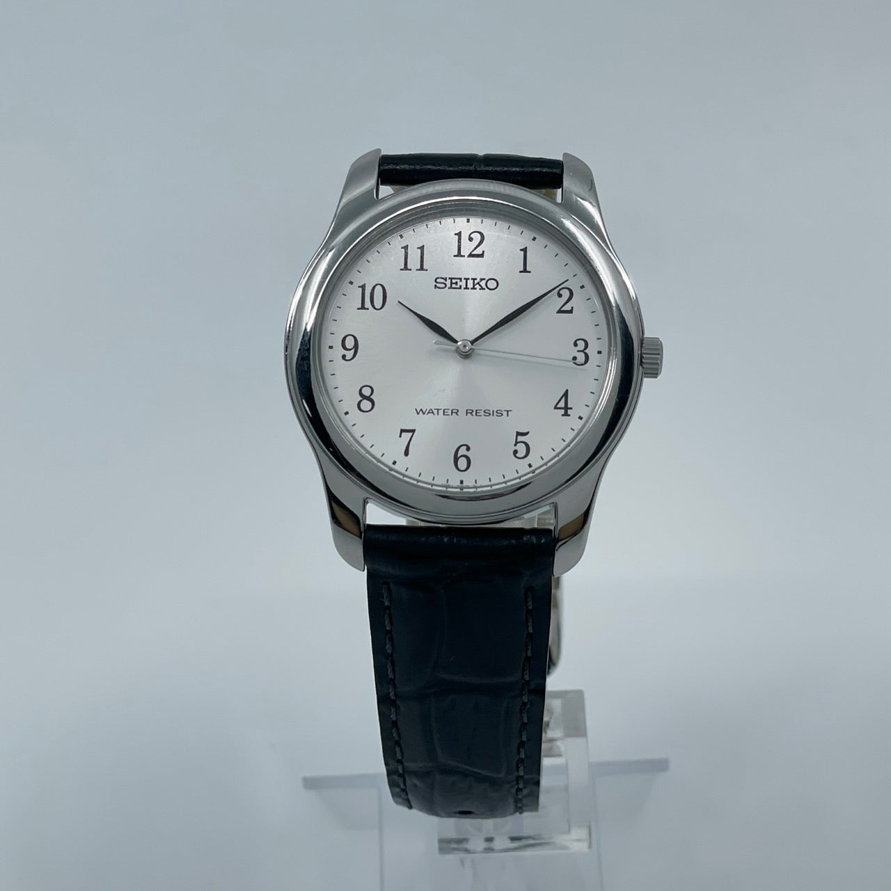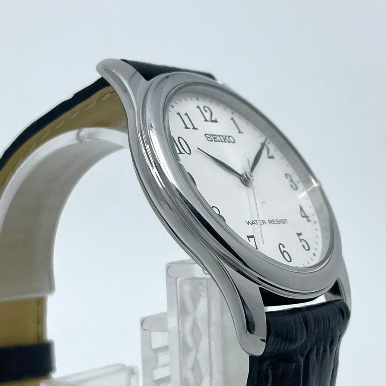 【電池交換済/新品ベルト(社外品)】美品 セイコー 腕時計 7N01-0EF0 メンズ クオーツ アナログ 白文字盤 黒レザー シンプルデザイン スタンダードモデル ビジネス カジュアル 薄型軽量 高視認性 オフィスに最適 クリーニング済 G5