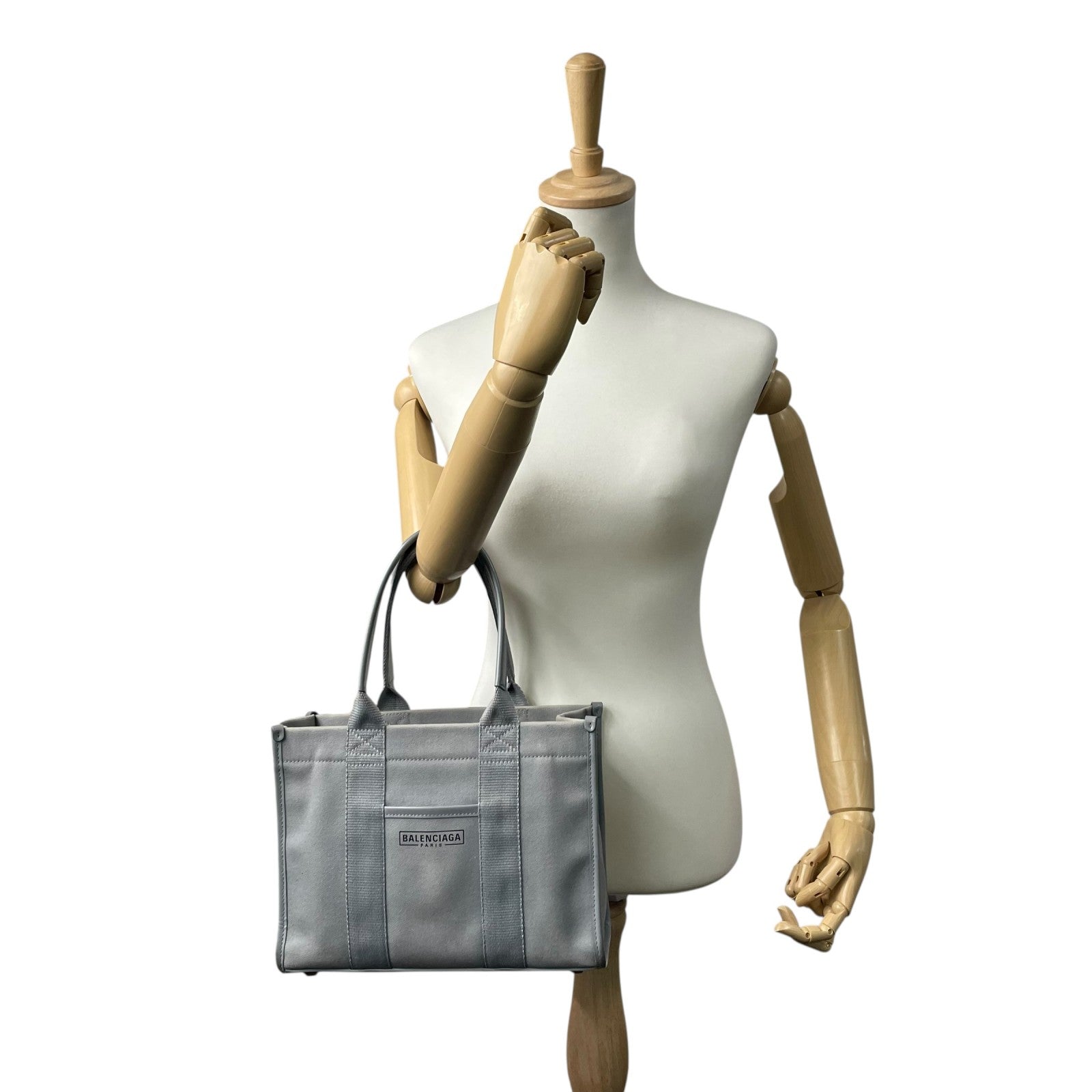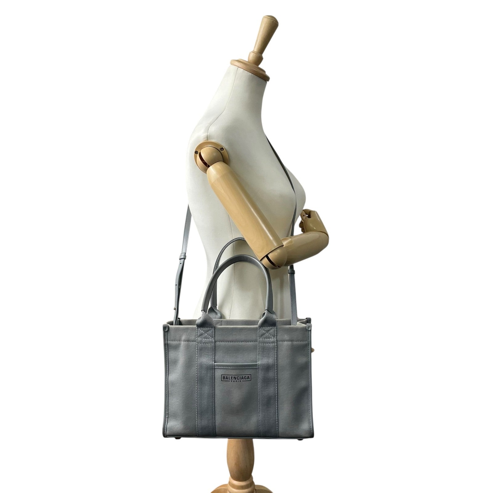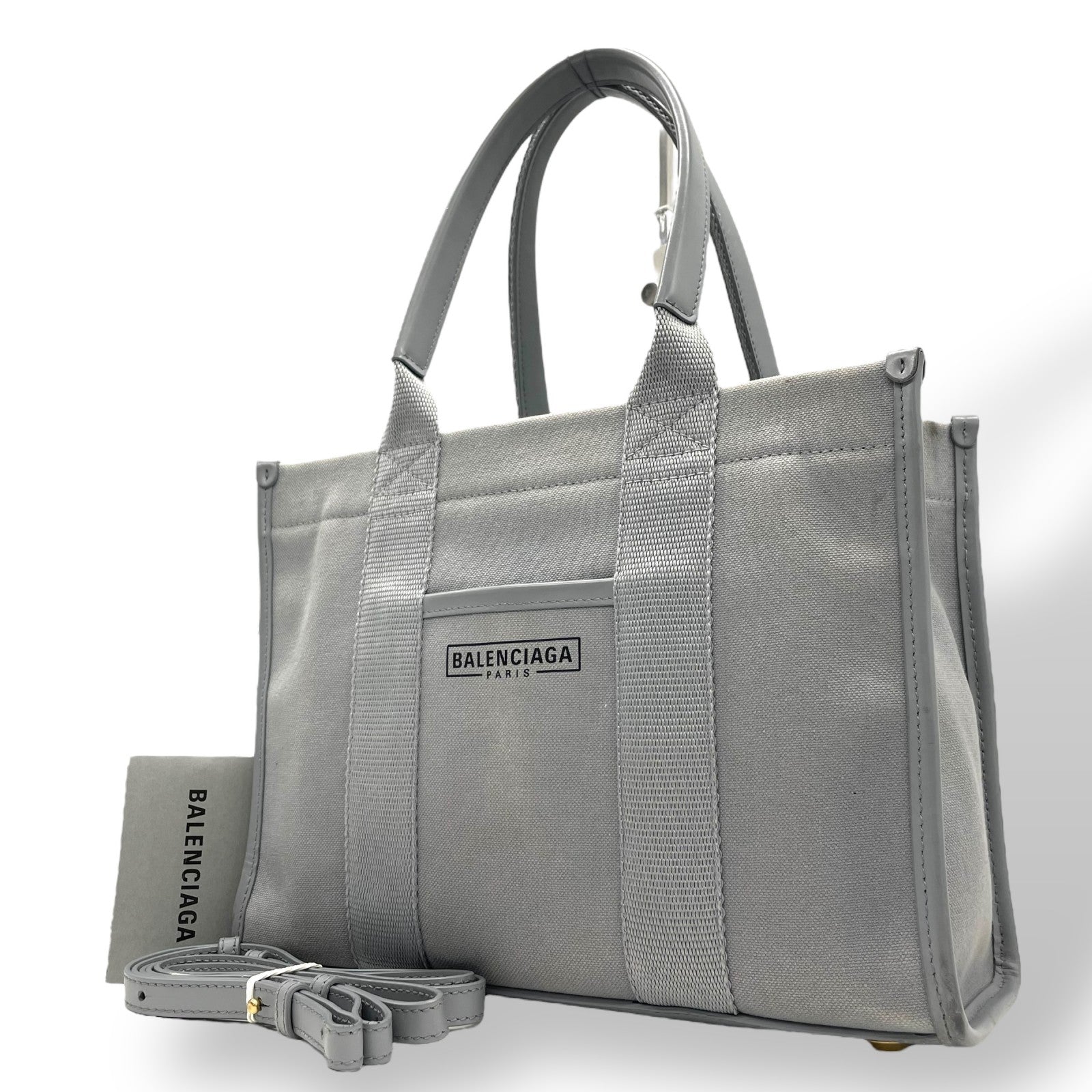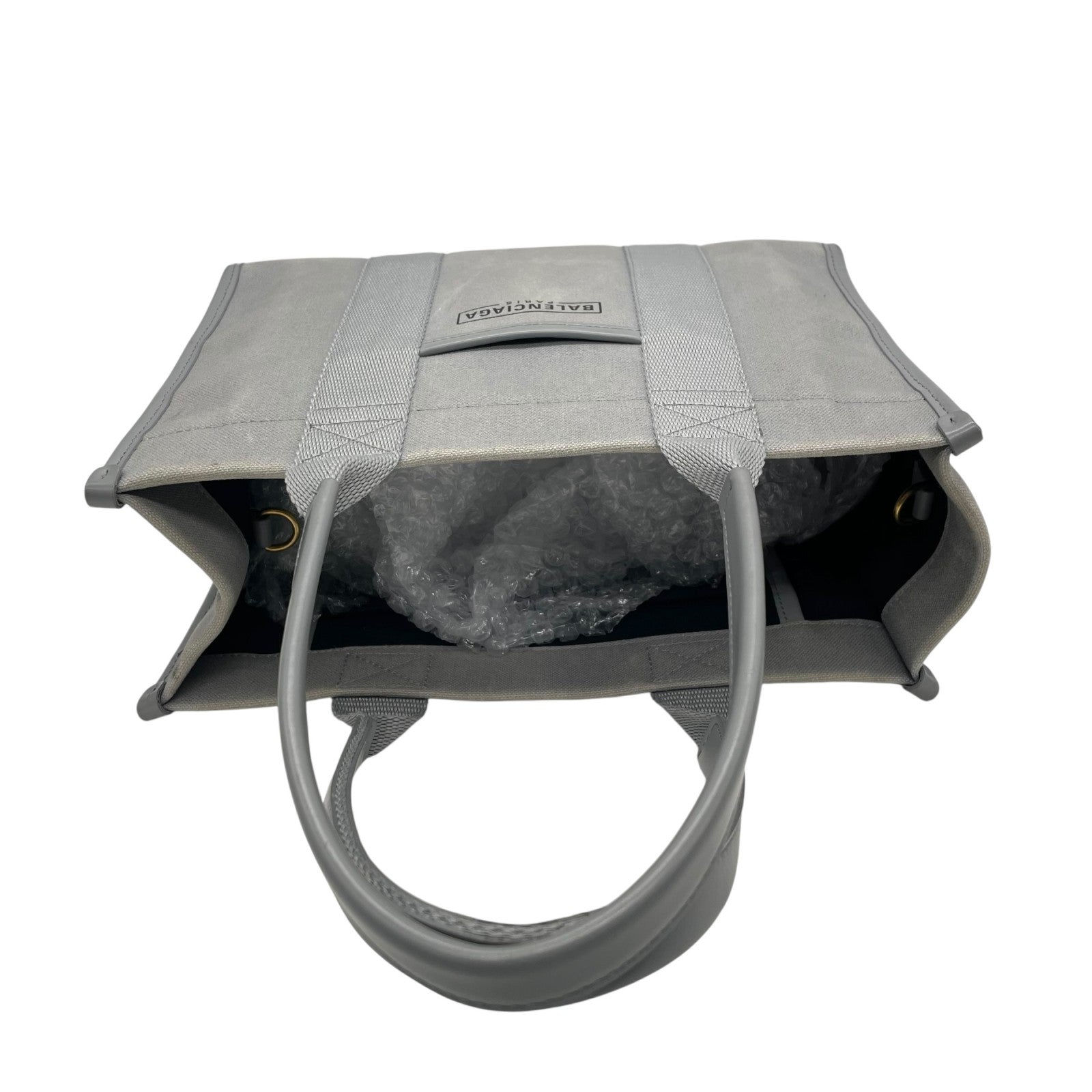BALENCIAGA バレンシアガ ハードウェア スモール トートバッグ 2way ショルダーバッグ グレー キャンバス レザー ゴールド金具 ロゴ 671402 斜め掛け可 レディース B