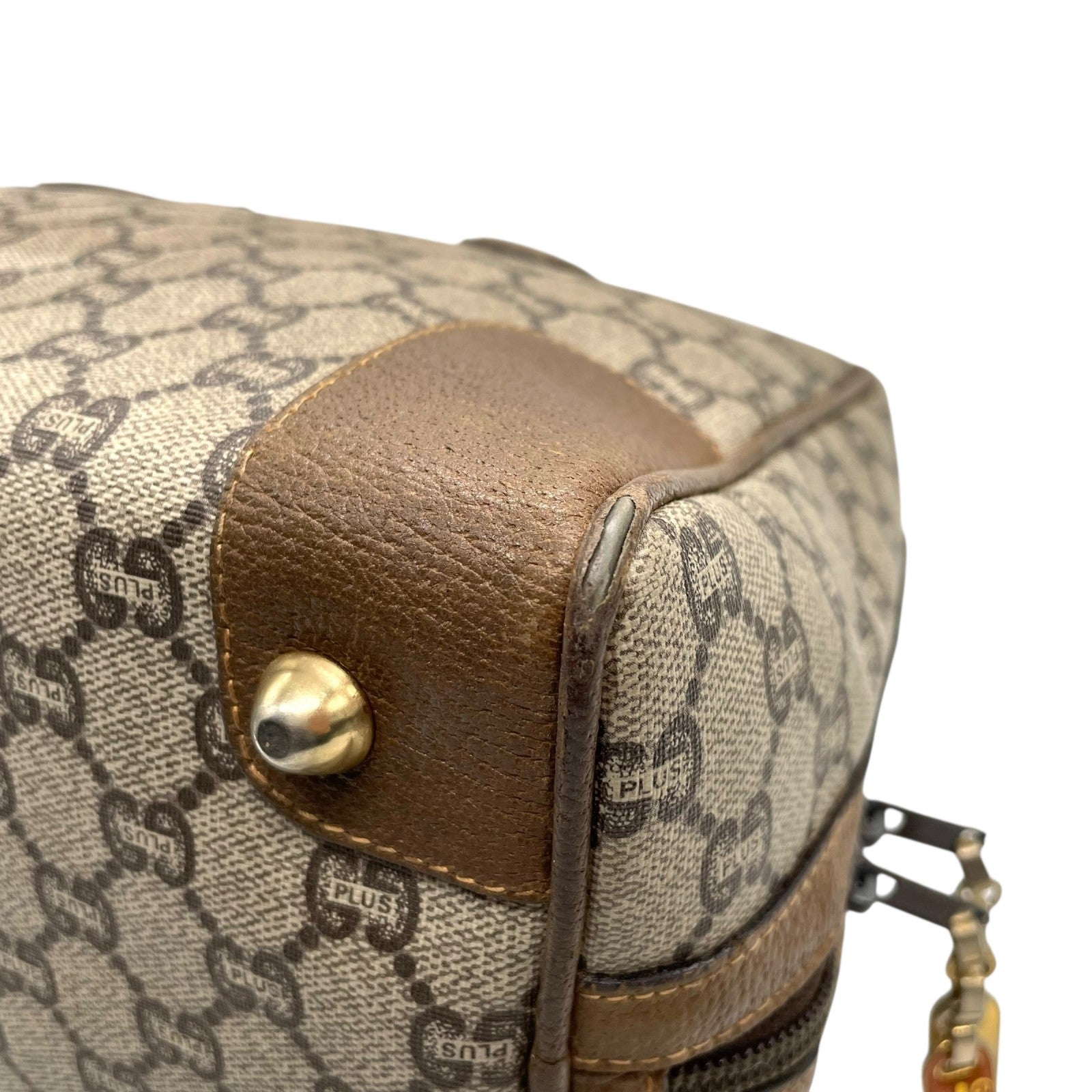 GUCCI グッチ GGプラス グッチプラス ハンドバッグ グレー ベージュ PVC レザー ゴールド金具 オールドグッチ ヴィンテージ レディース A