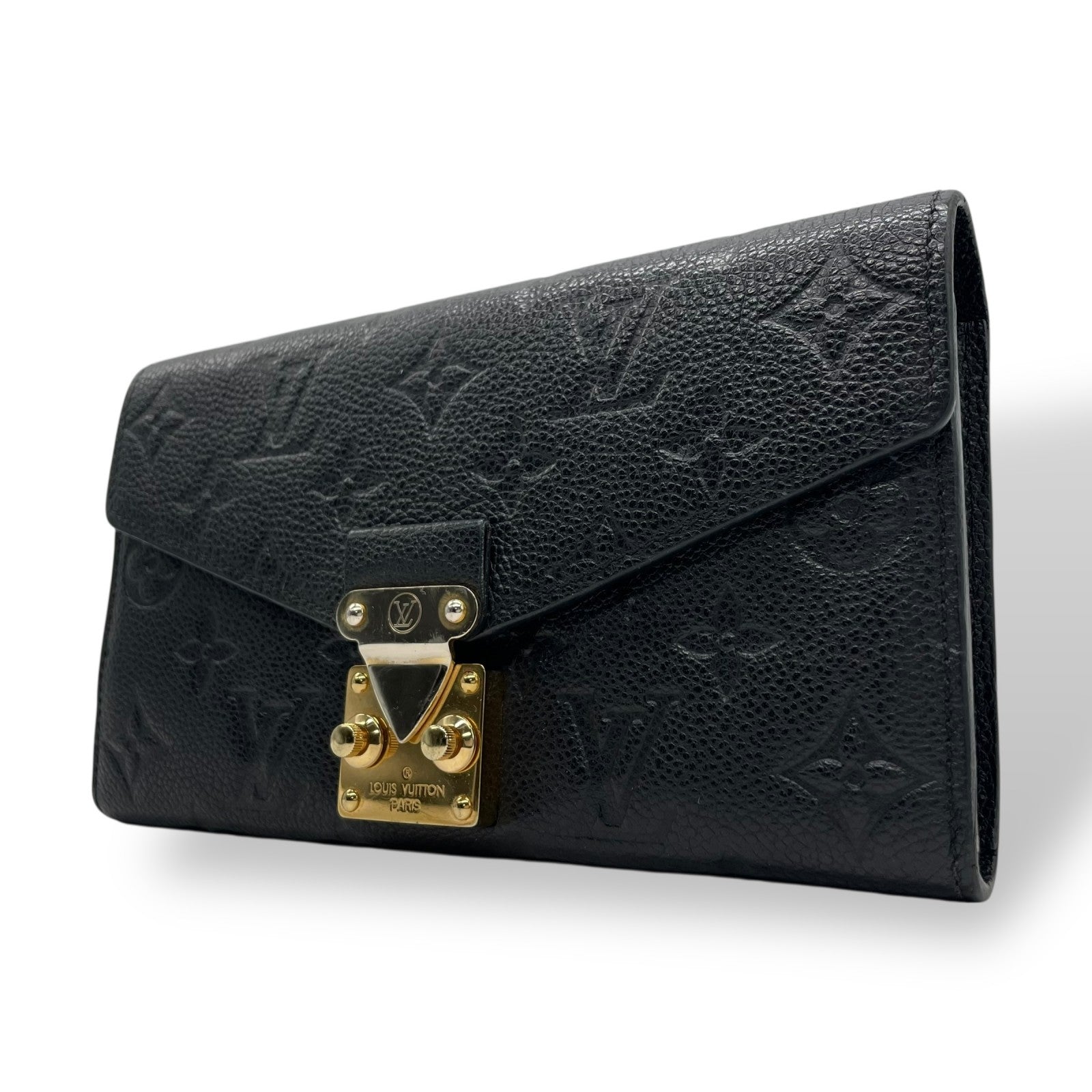 美品 LOUIS VUITTON ルイヴィトン ポルトフォイユ メティス アンプラント レザー ノワール 黒 ブラック ゴールド金具 長財布 モノグラム ロゴ M62458 レディース W2