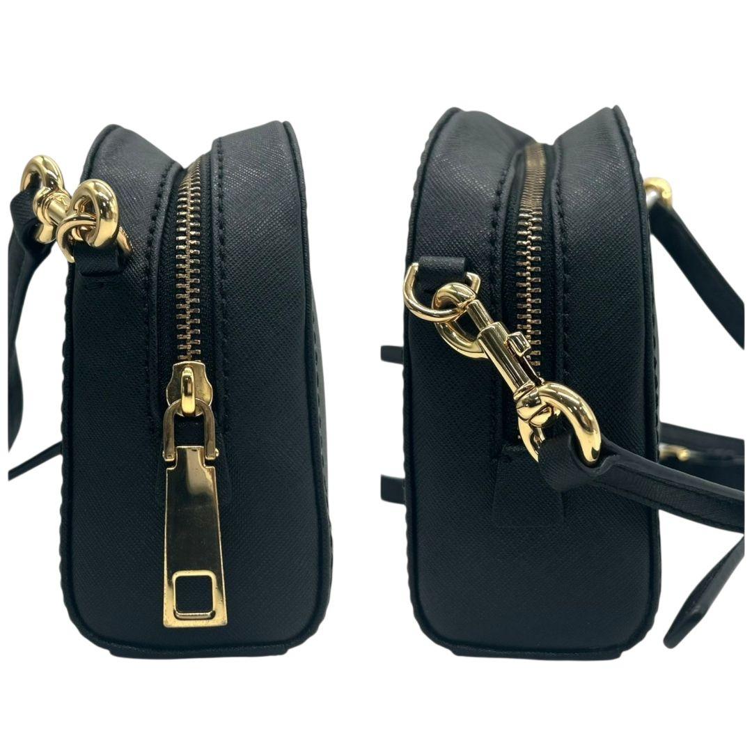 MARC JACOBS マークジェイコブス ショルダーバッグ ブラック 黒 サフィアーノ PVC 斜め掛け可 ゴールド金具 ロゴプレート ブランドロゴ E6 コンパクト 高級感
