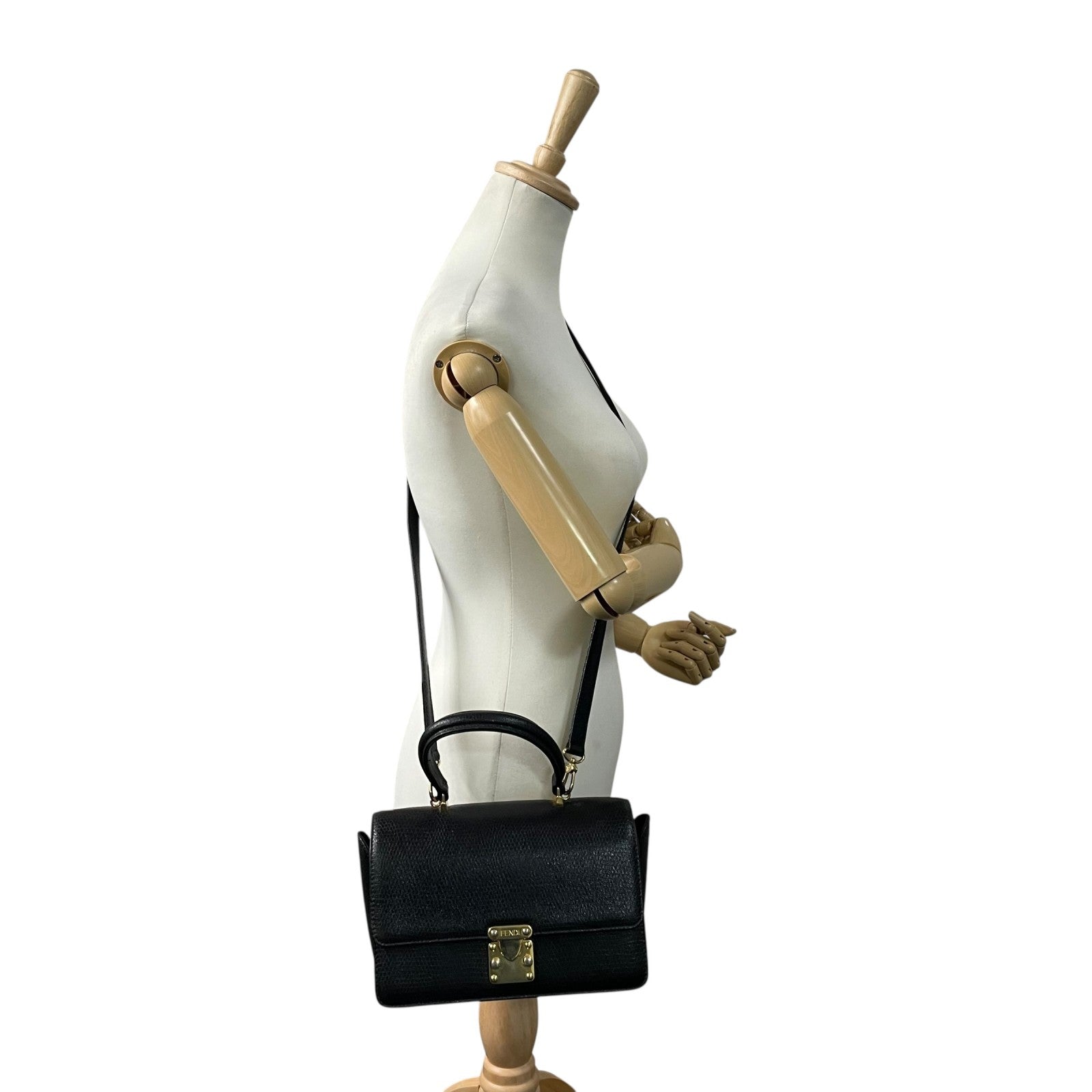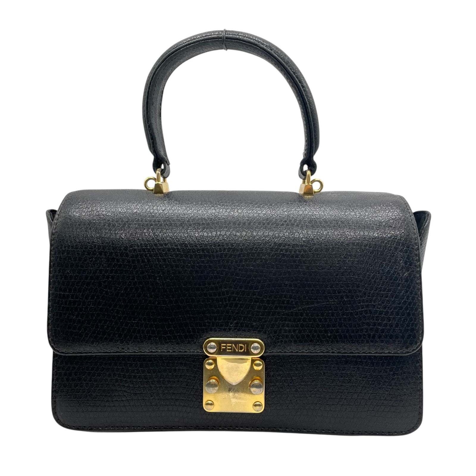 FENDI フェンディ ハンドバッグ 2way ショルダーバッグ 黒 ブラック レザー ゴールド金具 FF ロゴ ヴィンテージ 本革 トップハンドル Fendi Handbag Shoulder Bag Vintage D