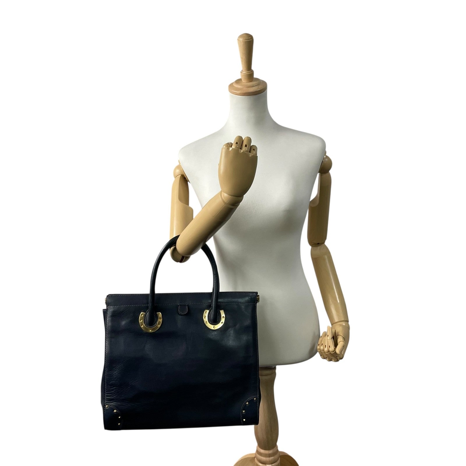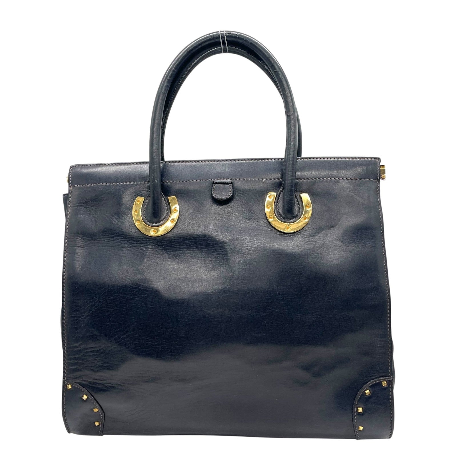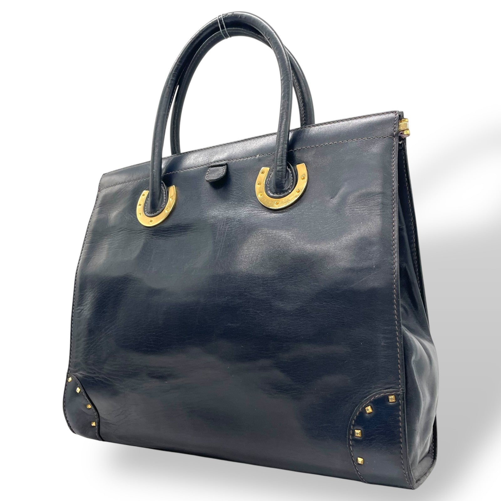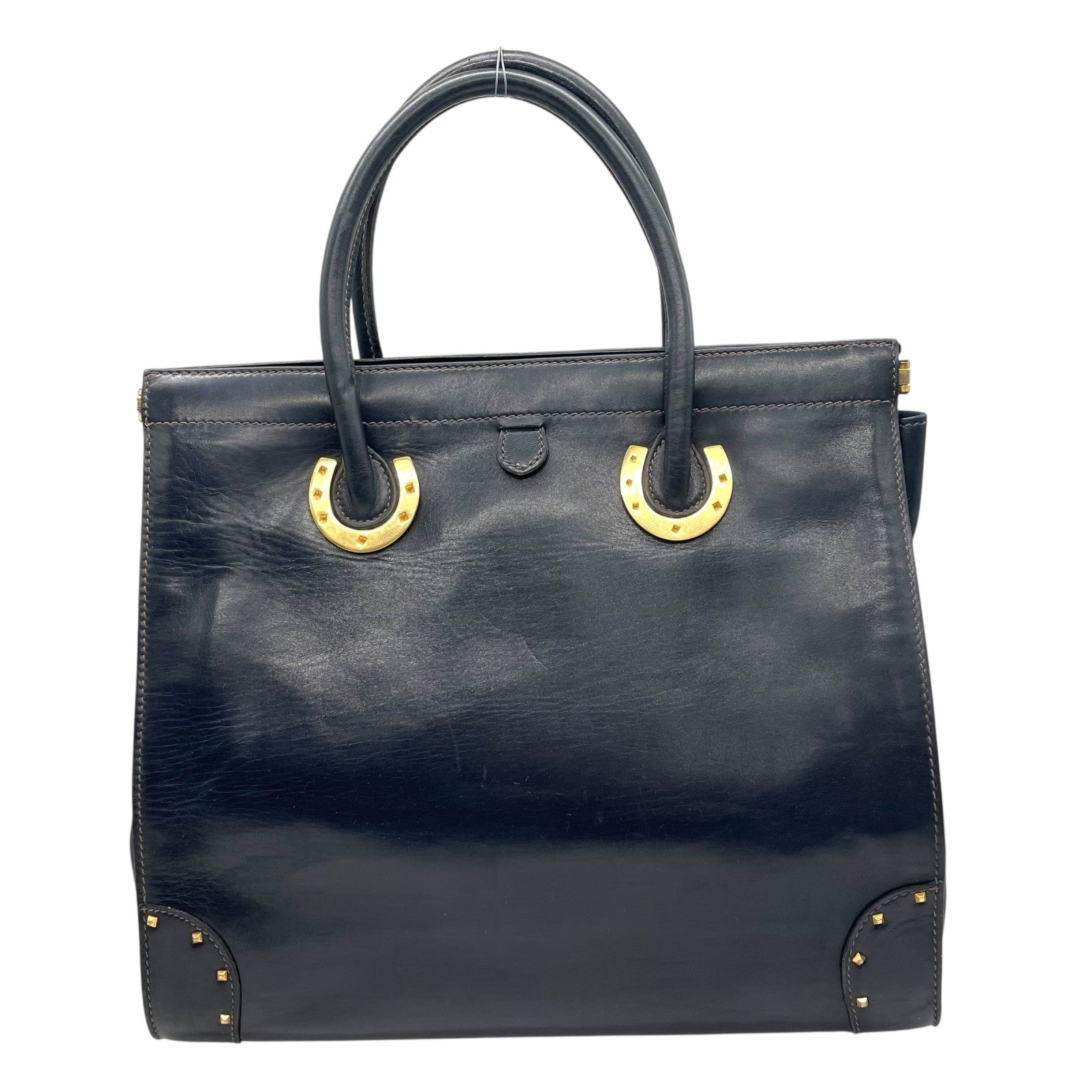 GUCCI グッチ ハンドバッグ トートバッグ ネイビー 紺色 レザー 本革 ゴールド金具 ヴィンテージ オールドグッチ 上品 高級感 通勤 通学 D1