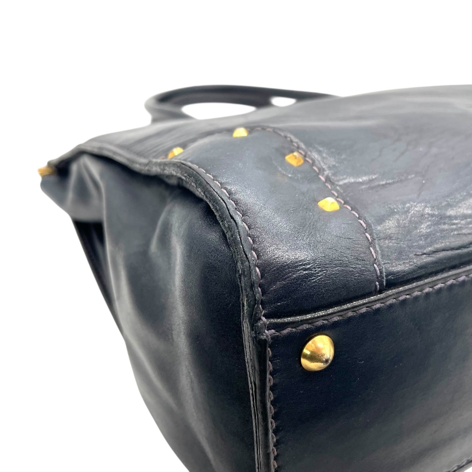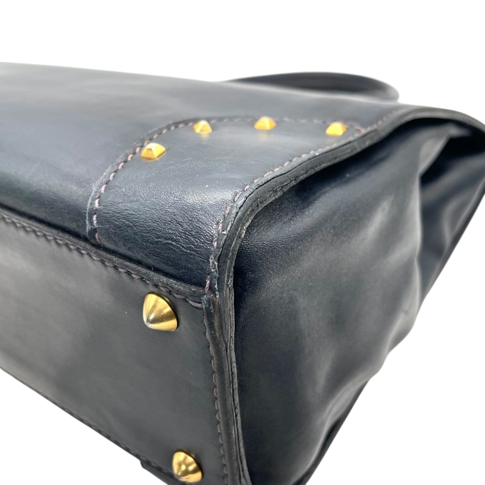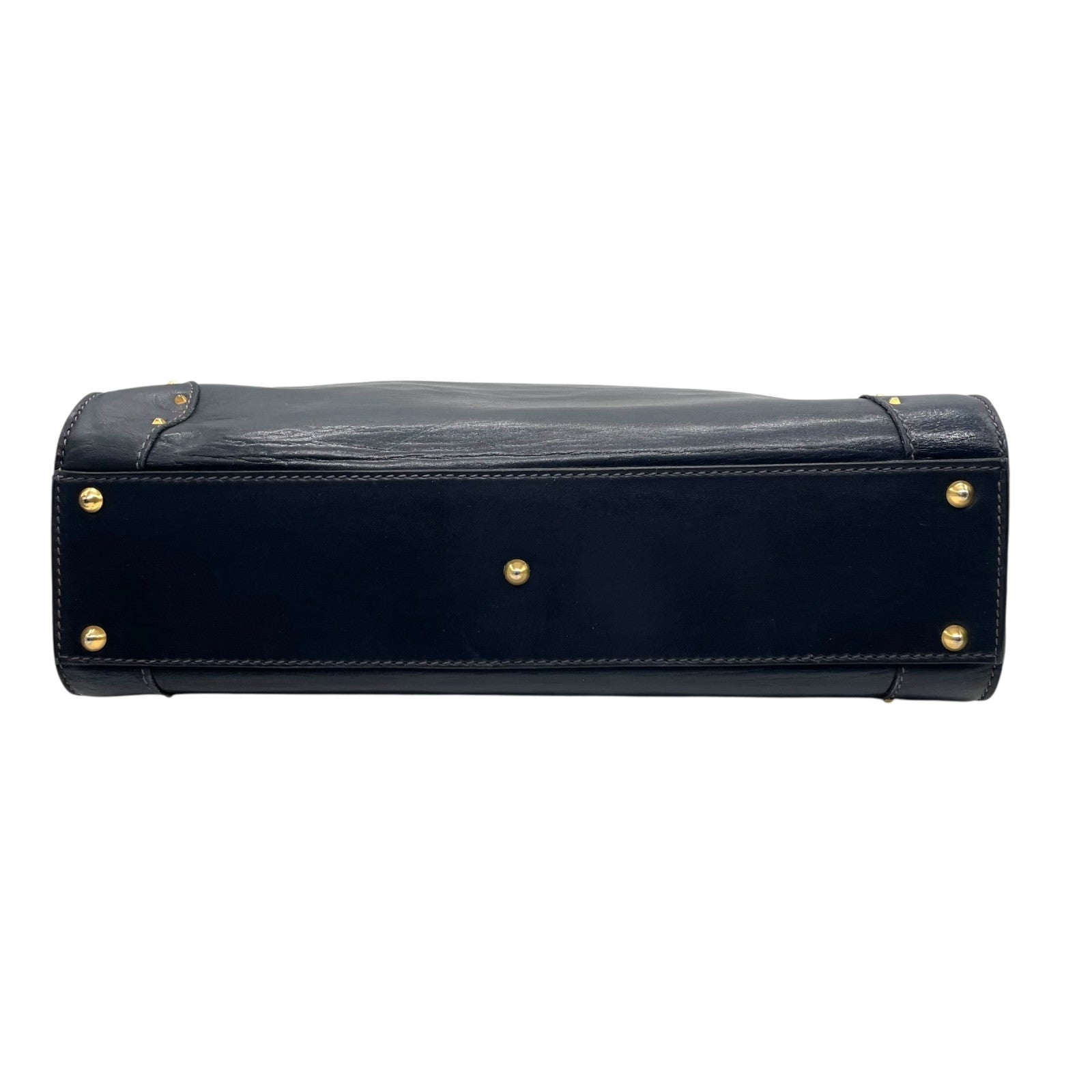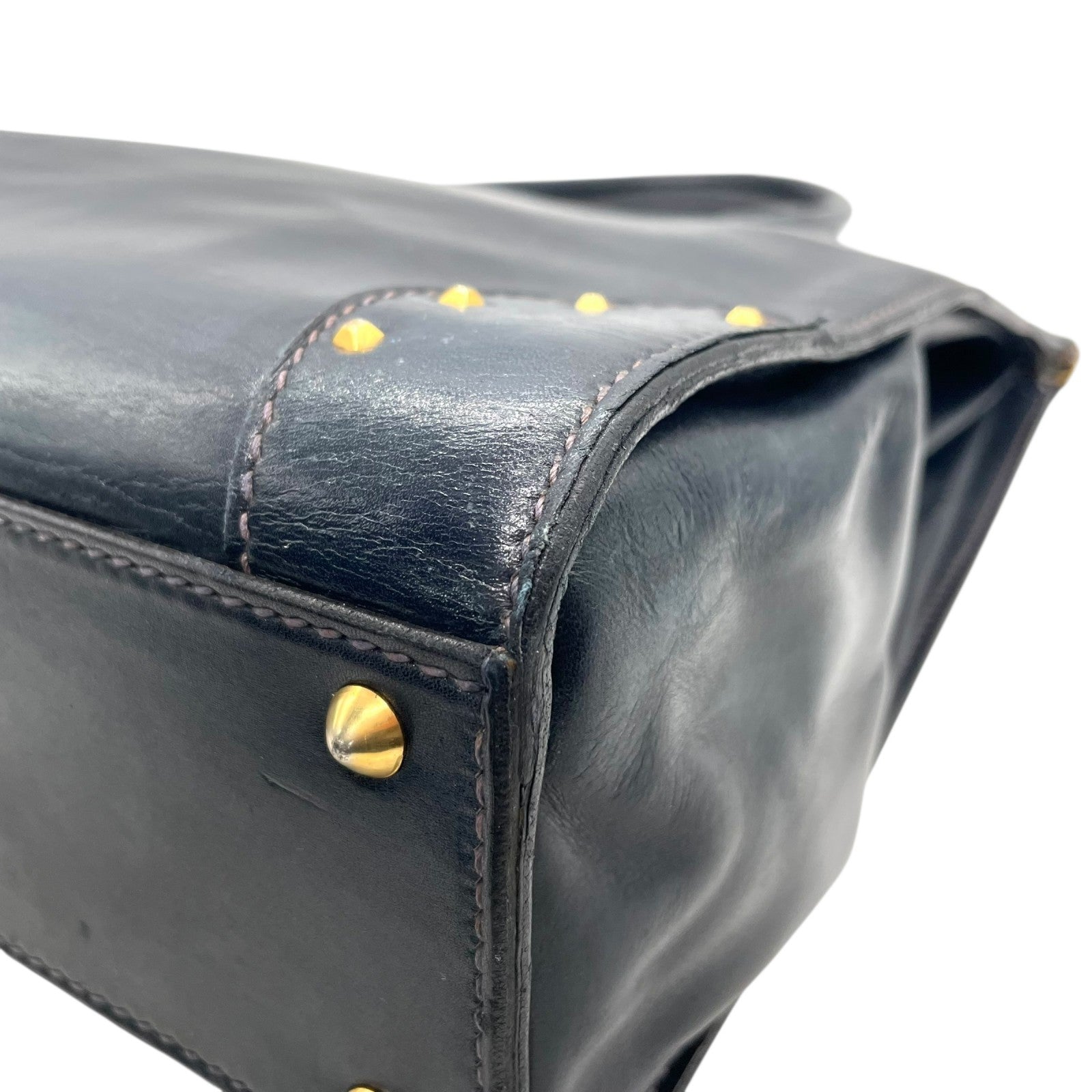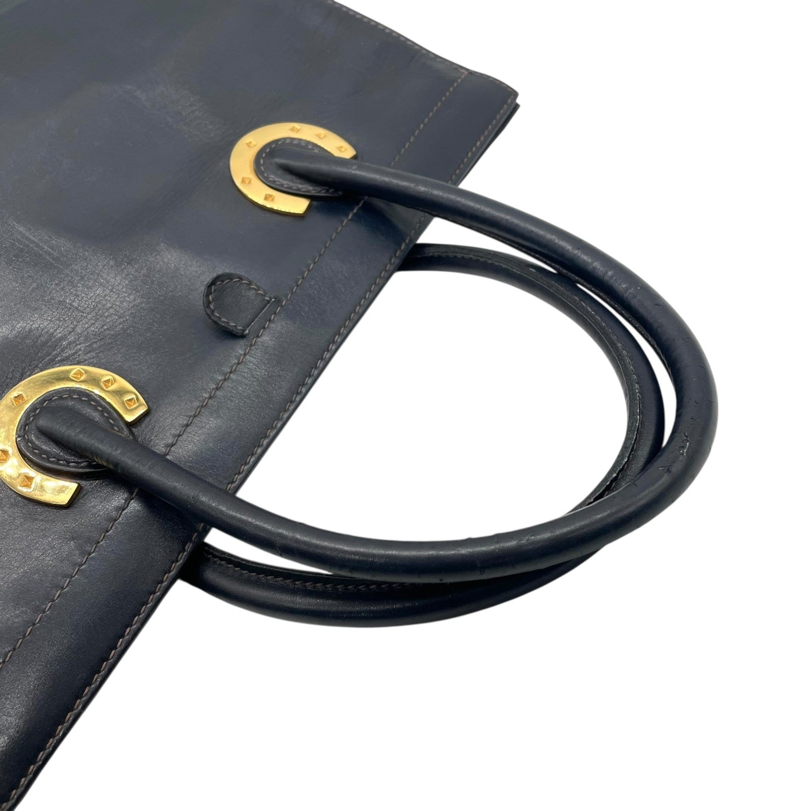 GUCCI グッチ ハンドバッグ トートバッグ ネイビー 紺色 レザー 本革 ゴールド金具 ヴィンテージ オールドグッチ 上品 高級感 通勤 通学 D1