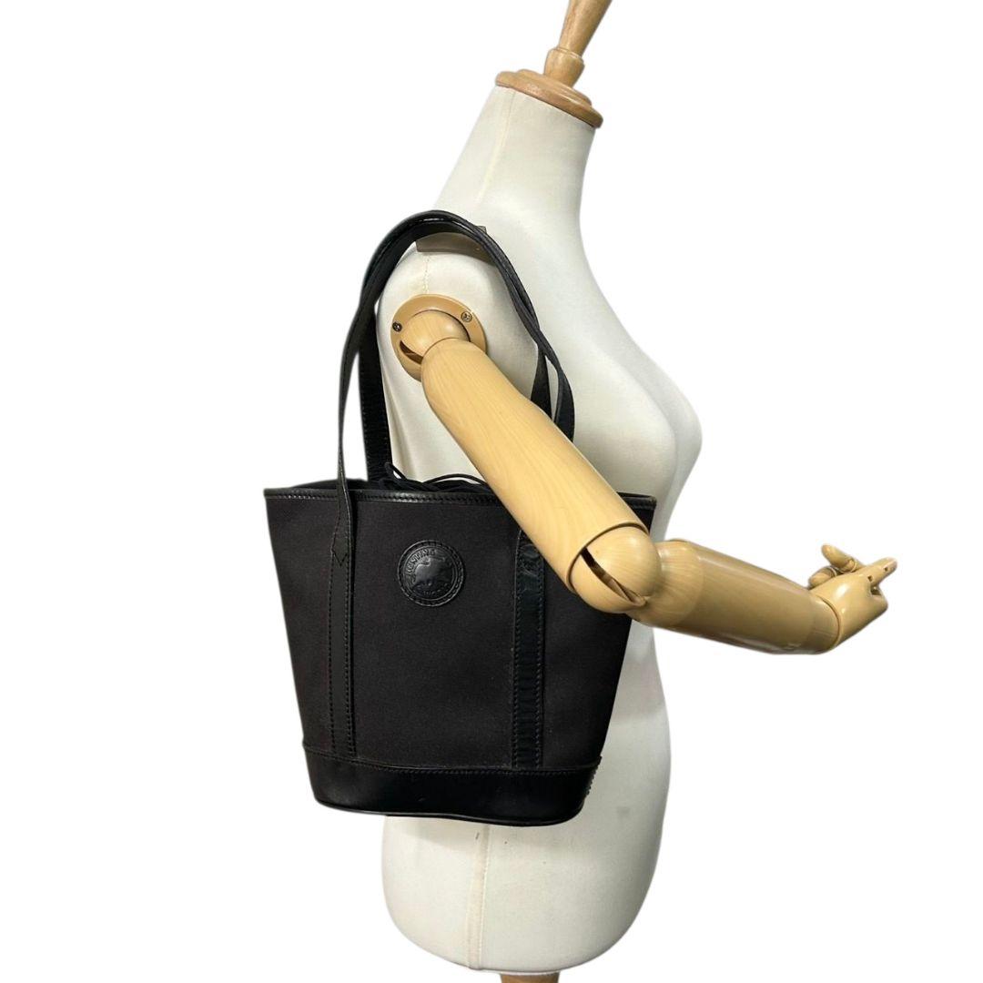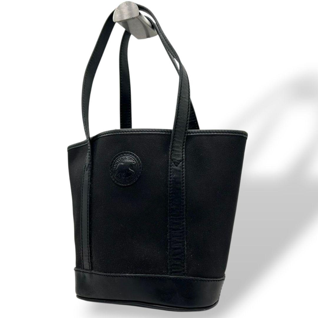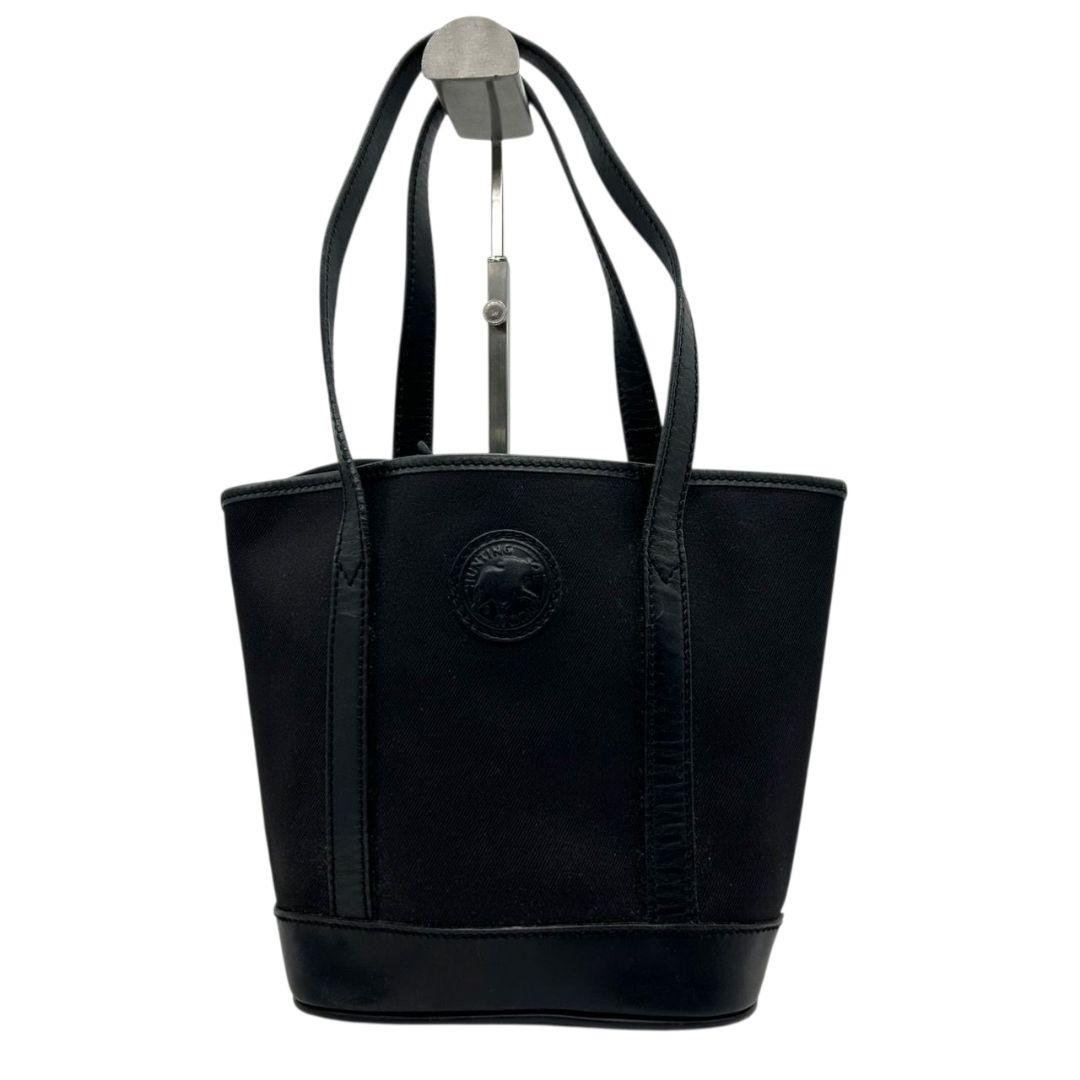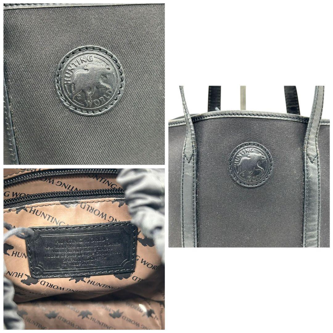 ハンティングワールド HUNTING WORLD トートバッグ ハンドバッグ 黒 ブラック ロゴ ワンショルダー 自立可 肩掛け可 キャンバス レザー ロゴプレート s92 レディース