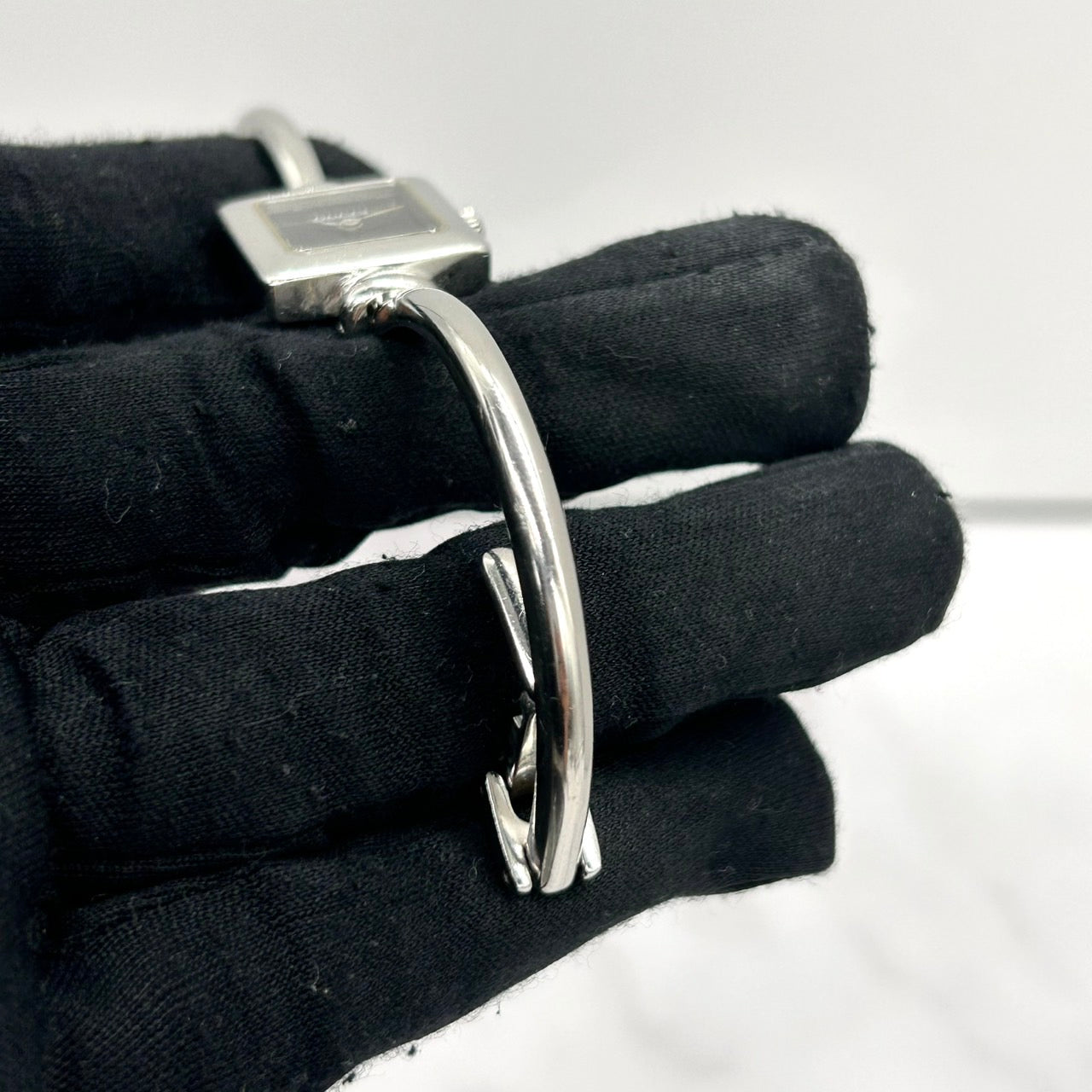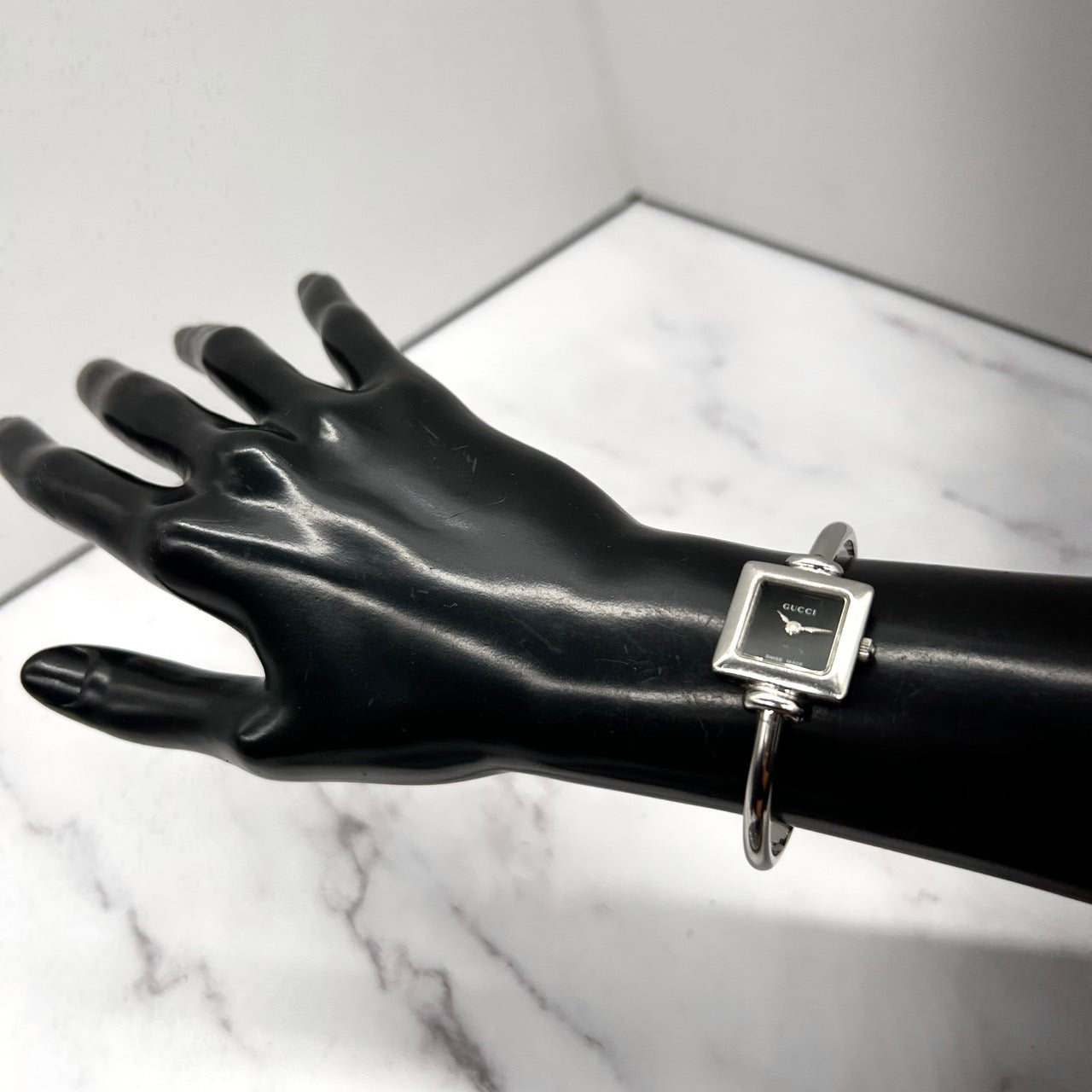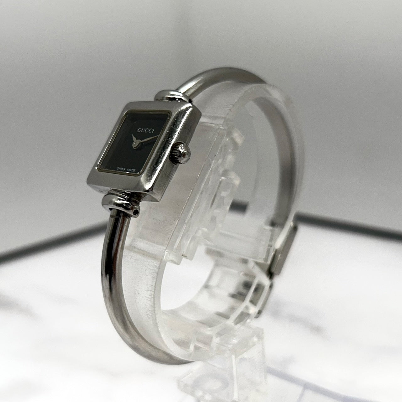 【電池交換済/稼働品】GUCCI グッチ 1900L レディース 腕時計 スクエア ブラック文字盤 シルバー バングルウォッチ ブレスレット アナログ クオーツ エレガント クラシック ドレスウォッチ 人気モデル 定番 スイス製 クリーニング済 G6