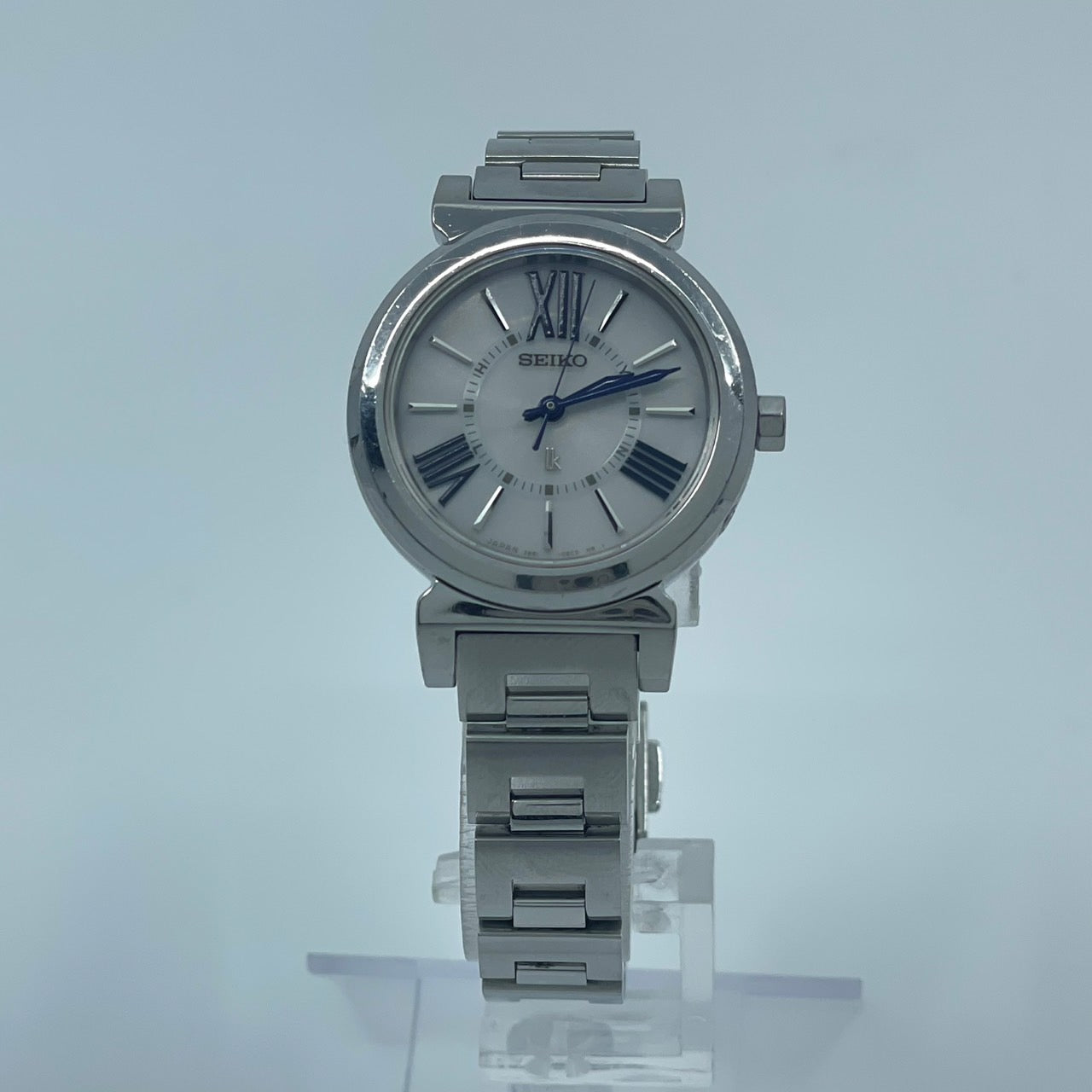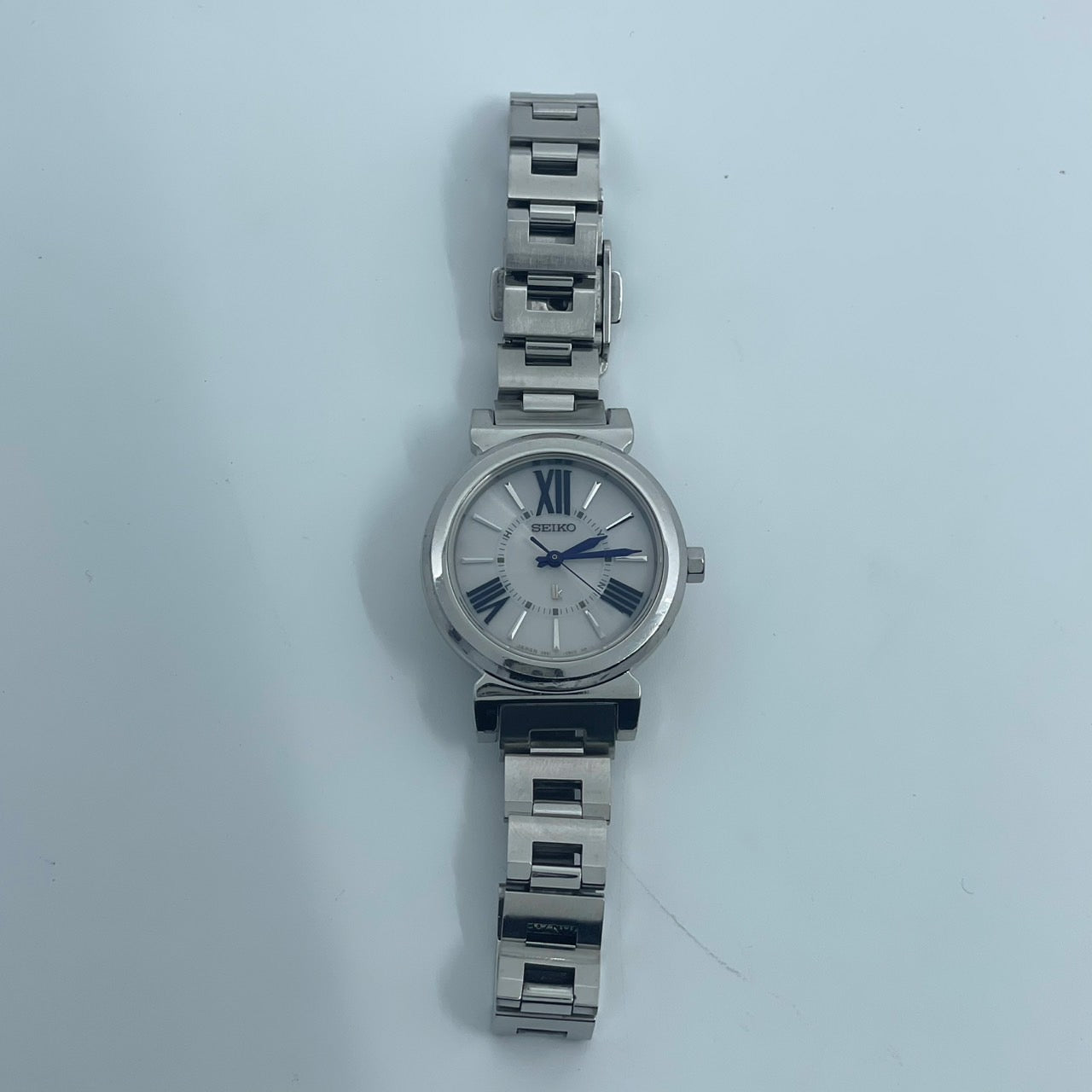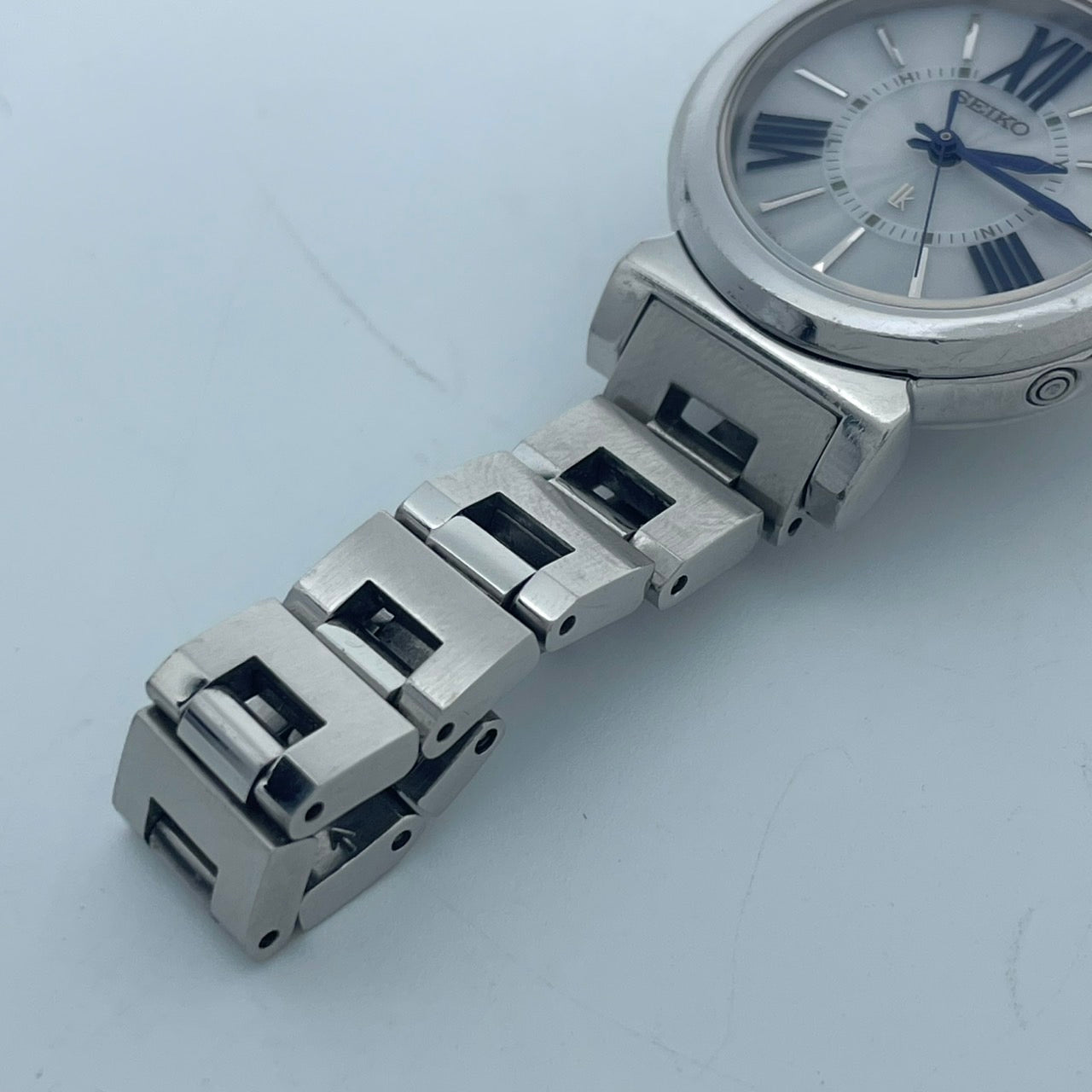 【稼働品】セイコー ルキア 人気モデル 腕時計 3B51-0AJ0 電波ソーラー レディース アナログ シルバー 白文字盤 ローマ数字 ブルー針 クール エレガント ビジネス オフィス 高機能 洗練デザイン スタイリッシュ クリーニング済 G5