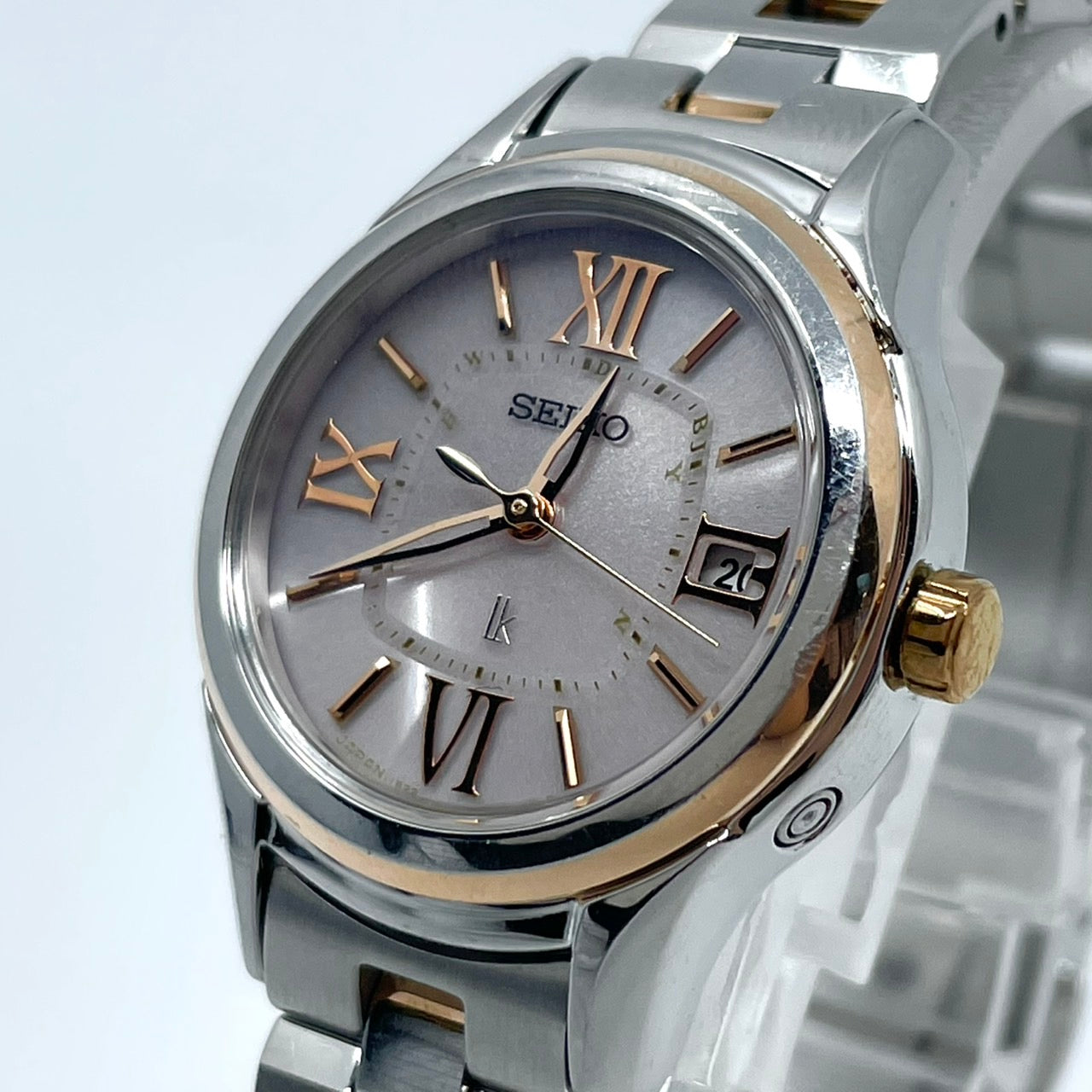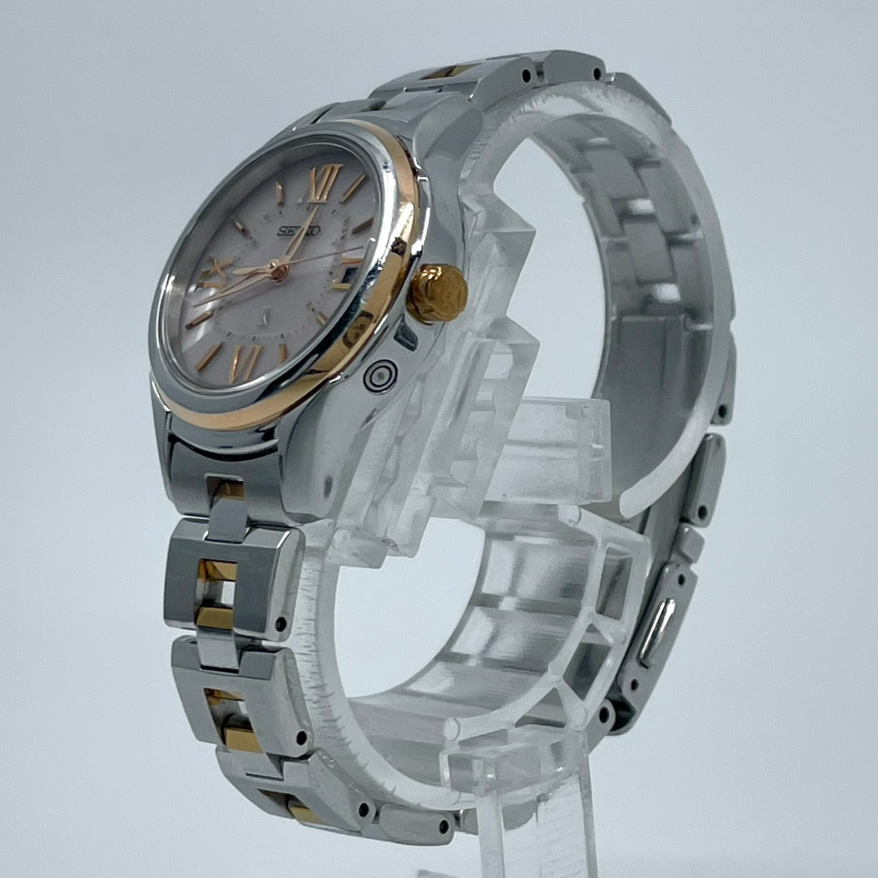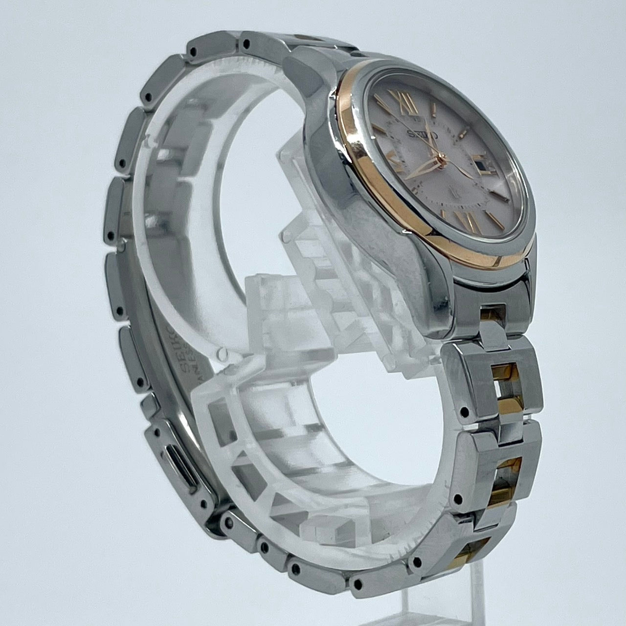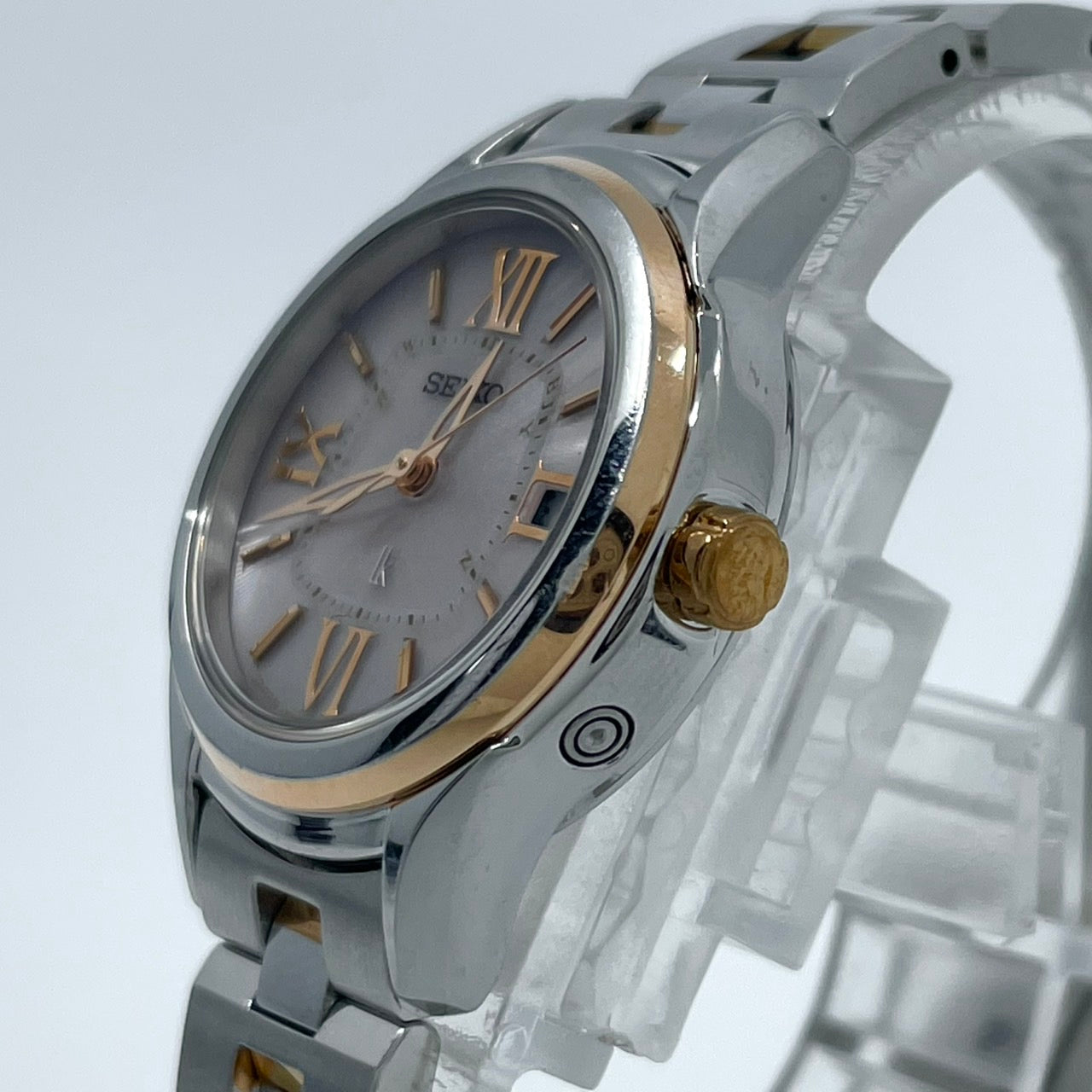 【稼働品/美品】セイコー ルキア 人気モデル 腕時計 1B22-0AS0 電波ソーラー レディース デイト ピンクゴールド コンビカラー ローマ数字 上品 エレガント ビジネス オフィス 高機能 洗練デザイン 手元華やか クリーニング済 G5